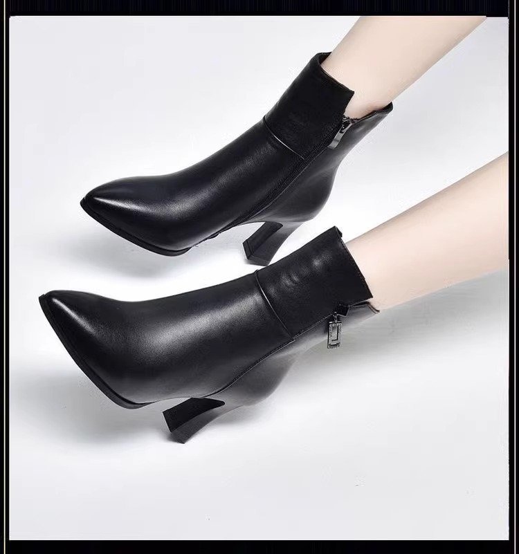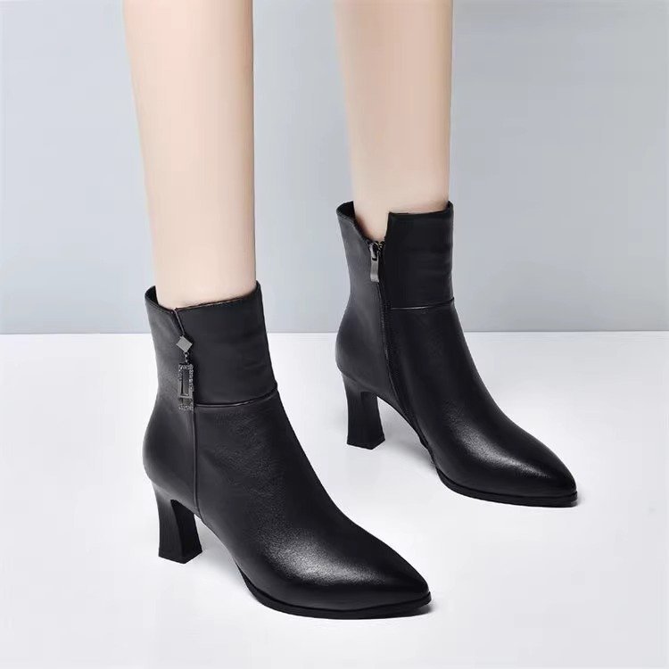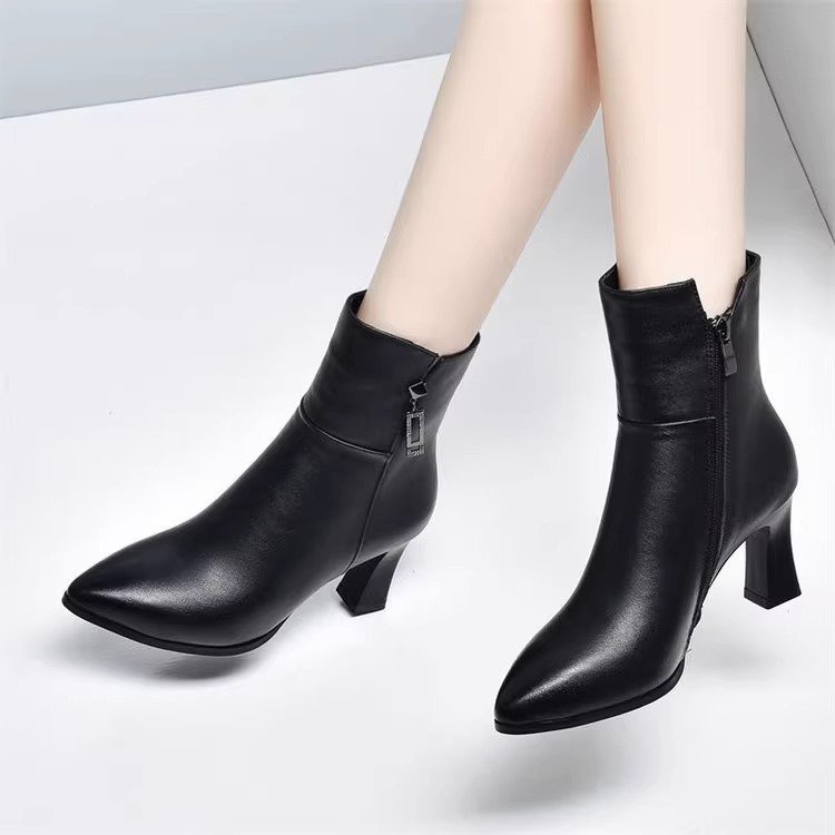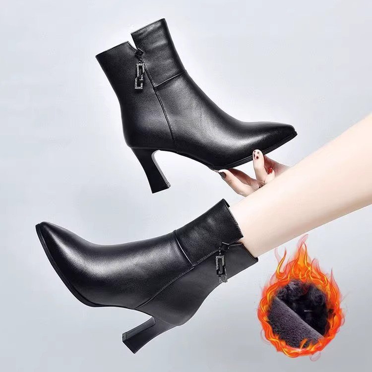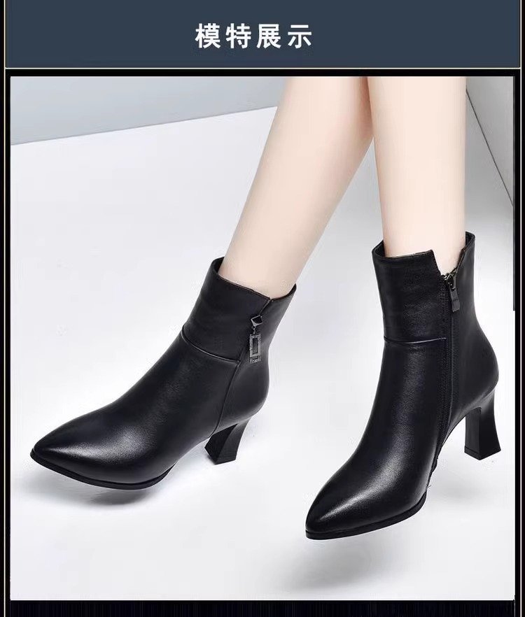 짧은 부츠 여성의 2024 가을과 겨울 기모 새로운 패션 다목적 하이힐 부츠 여성 가죽 신발 마틴 부츠스토어 가기