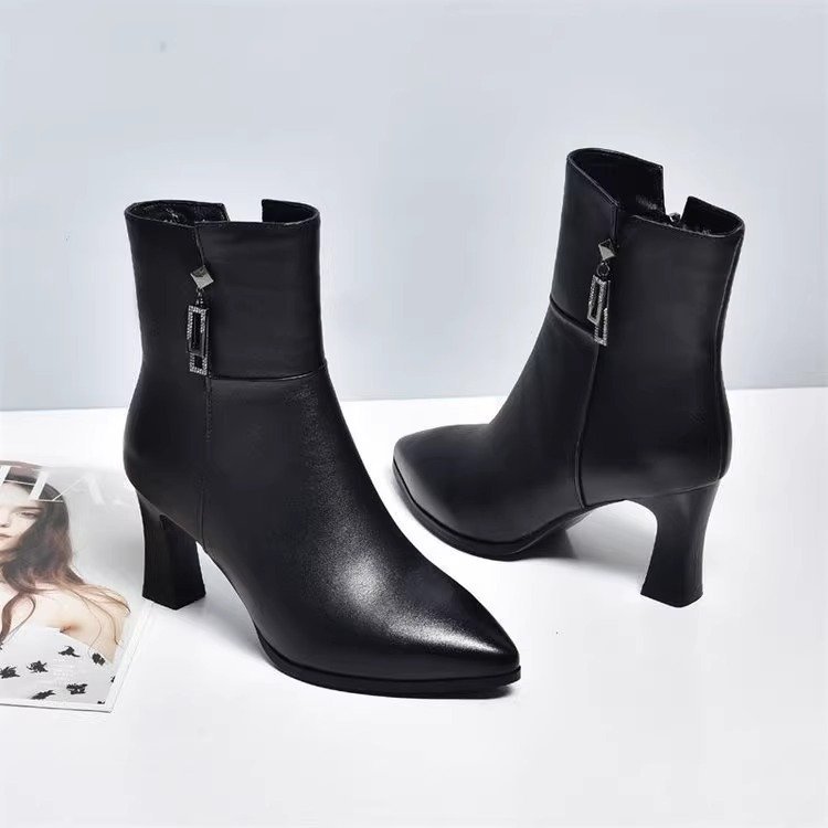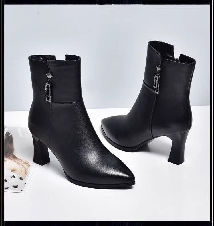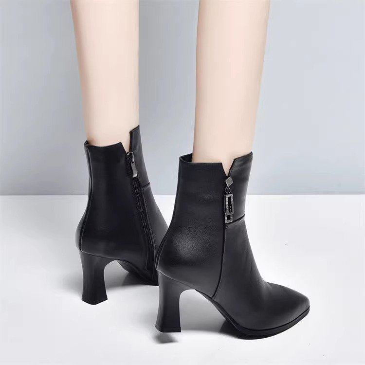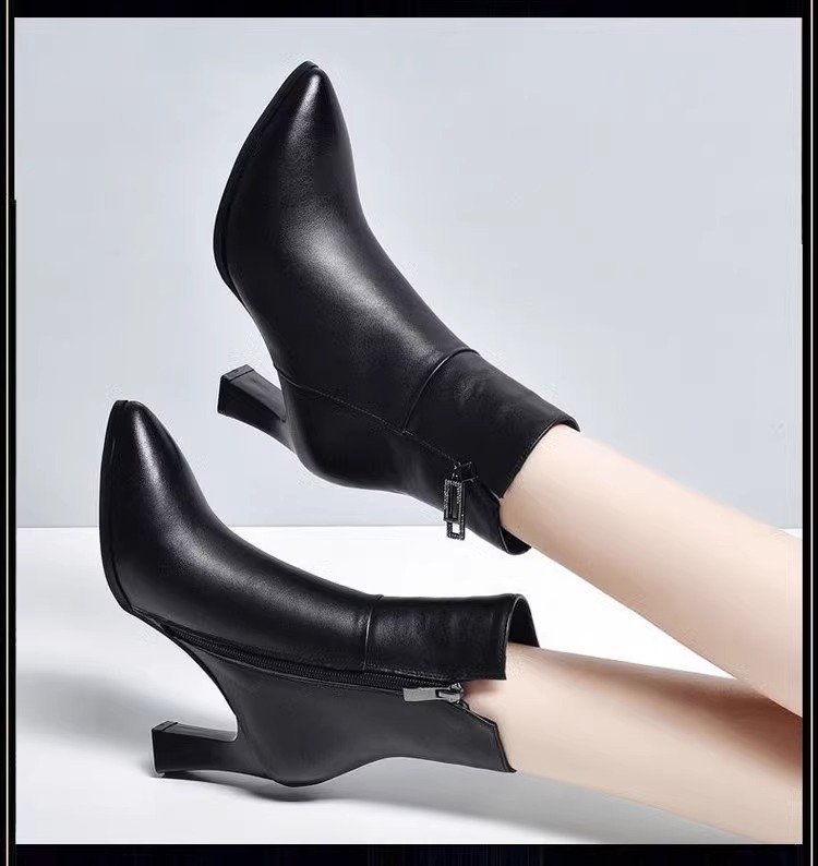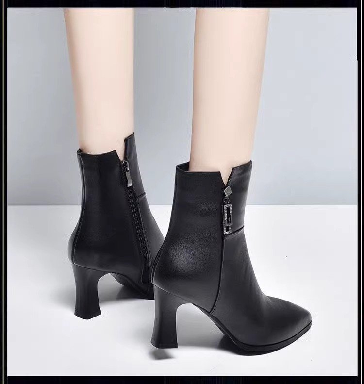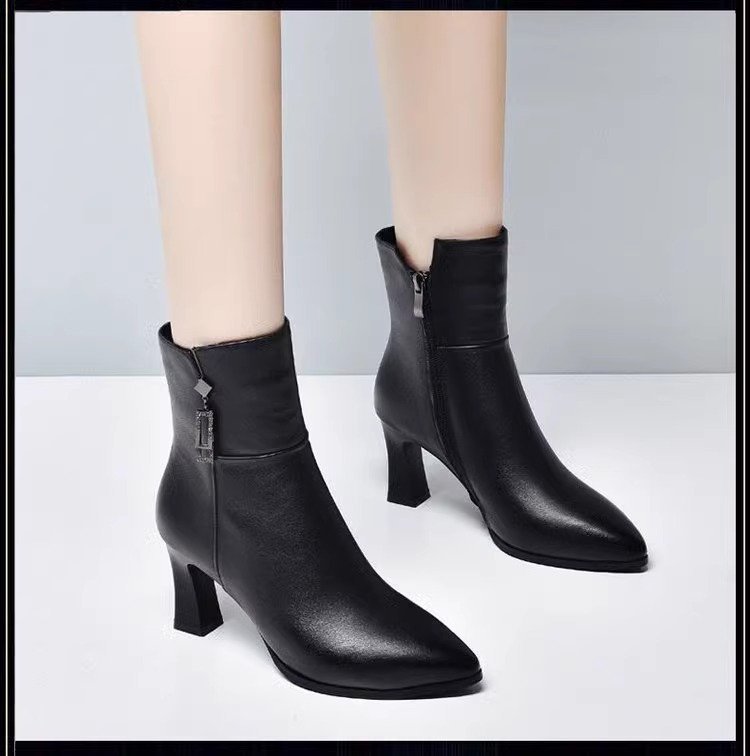 짧은 부츠 여성의 2024 가을과 겨울 기모 새로운 패션 다목적 하이힐 부츠 여성 가죽 신발 마틴 부츠스토어 가기