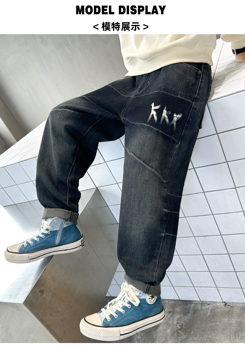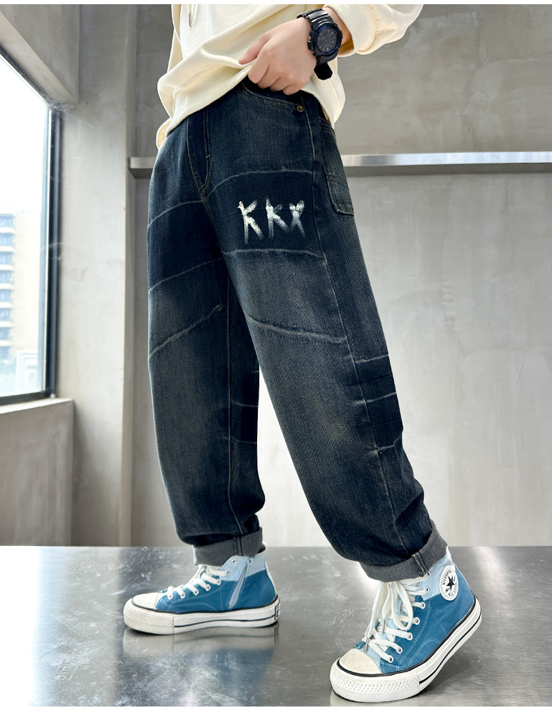소년 청바지 봄 모래 세척 2025 봄 새 데님 바지 큰 어린이 크메르 유행 올 매치 바지스토어 가기