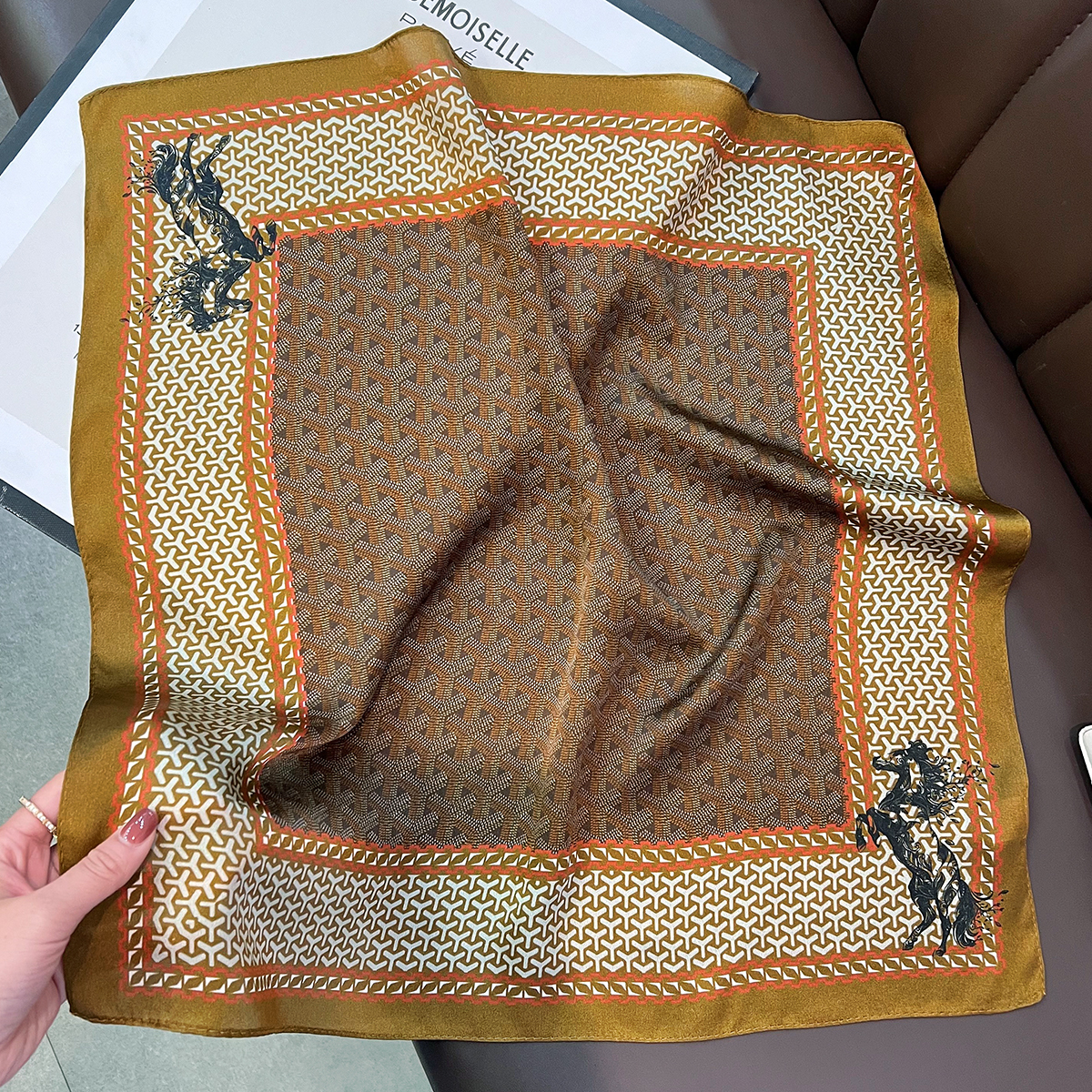 봄과 여름 다크 브라운 편지 말 실크 스카프 빛 럭셔리 한국 스타일 매칭 세트 스카프 유행 우아한 작은 광장 스카프스토어 가기