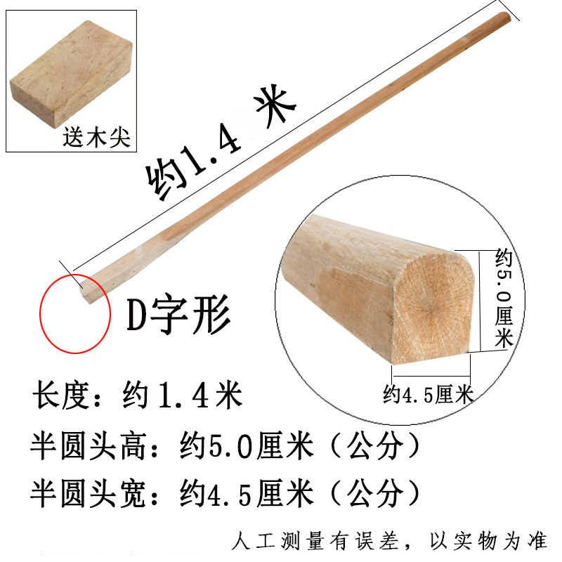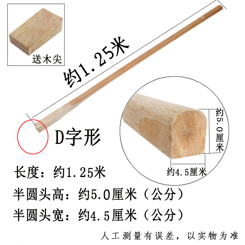구식의 단단한 나무 괭이 손잡이 너도밤 나무 반원형 D 자형 대형 농장 도구 액세서리 2 이빨 퍽 헤드 핸들