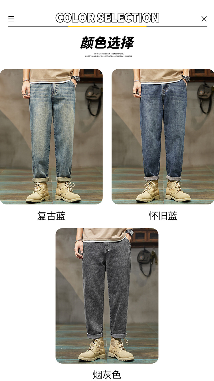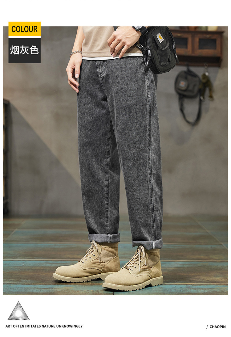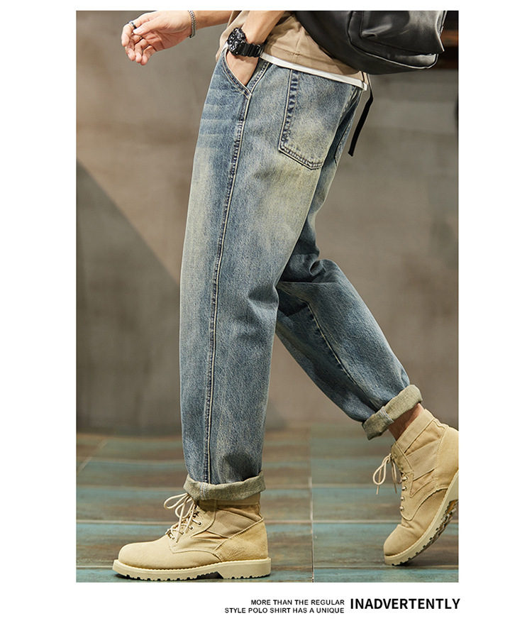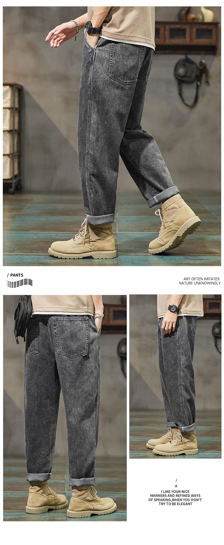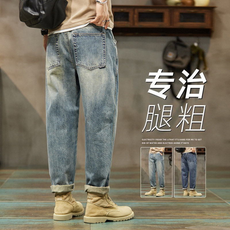 봄과 여름 레트로 청바지 남성 트렌디 브랜드 2024 여름 새로운 느슨한 스트레이트 하렘 캐주얼 남성 자른 바지스토어 가기