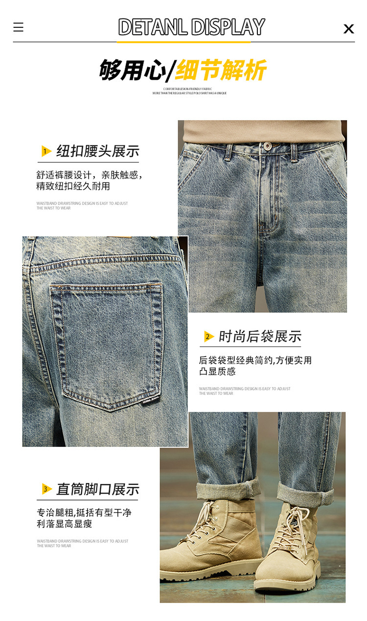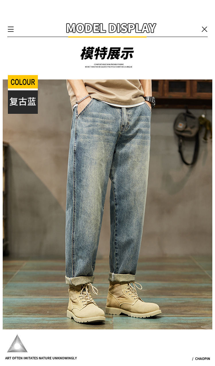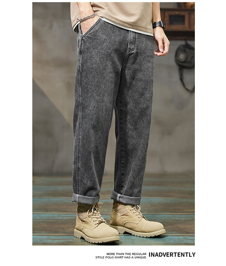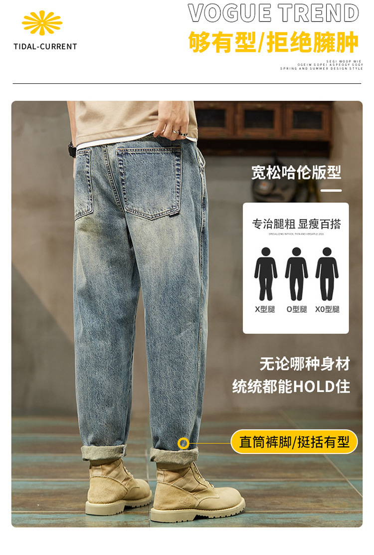 봄과 여름 레트로 청바지 남성 트렌디 브랜드 2024 여름 새로운 느슨한 스트레이트 하렘 캐주얼 남성 자른 바지스토어 가기