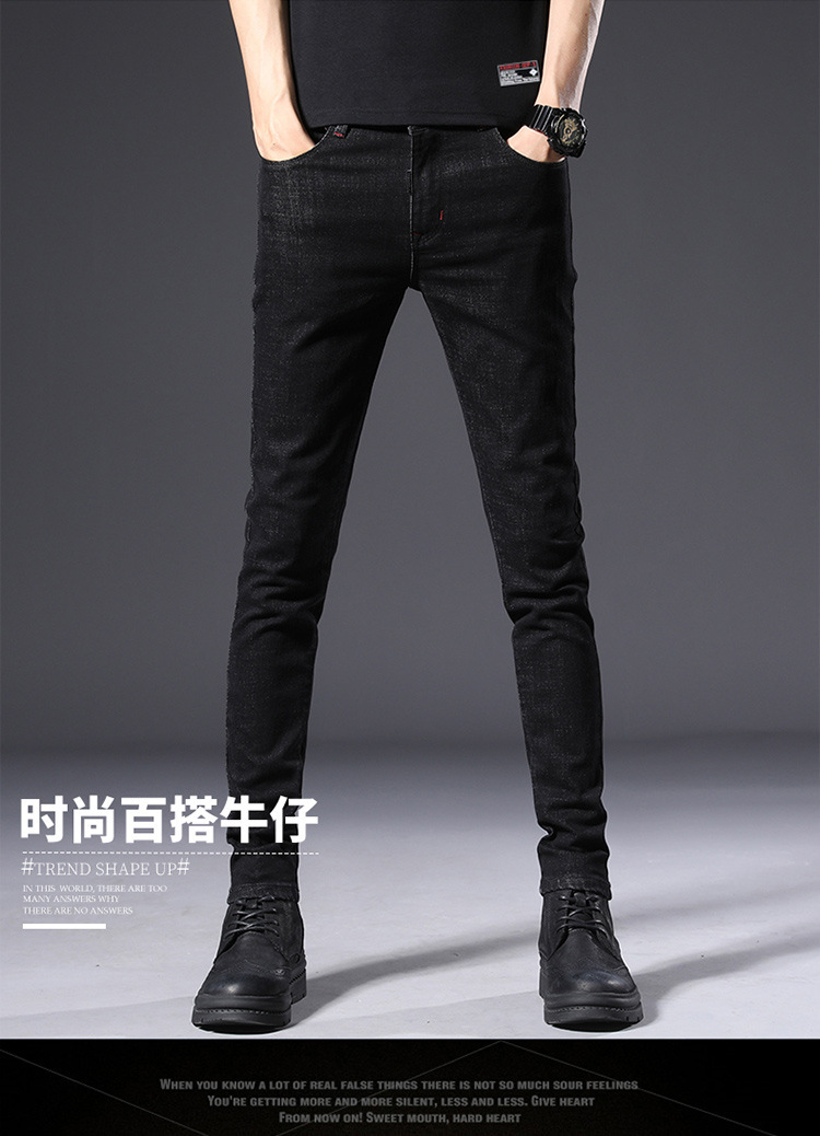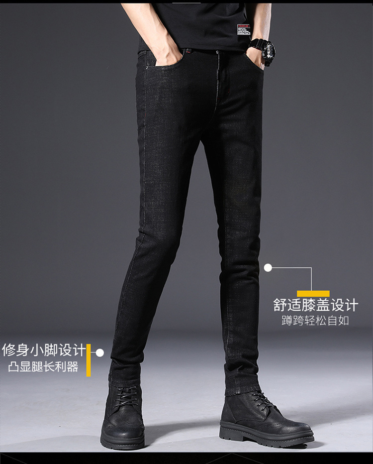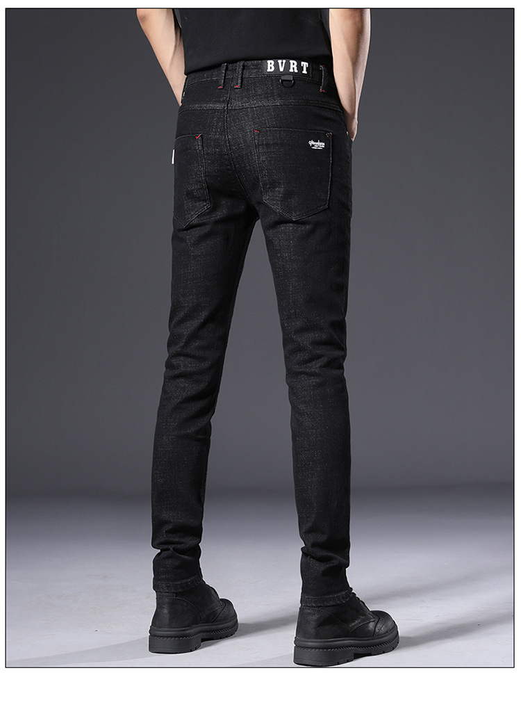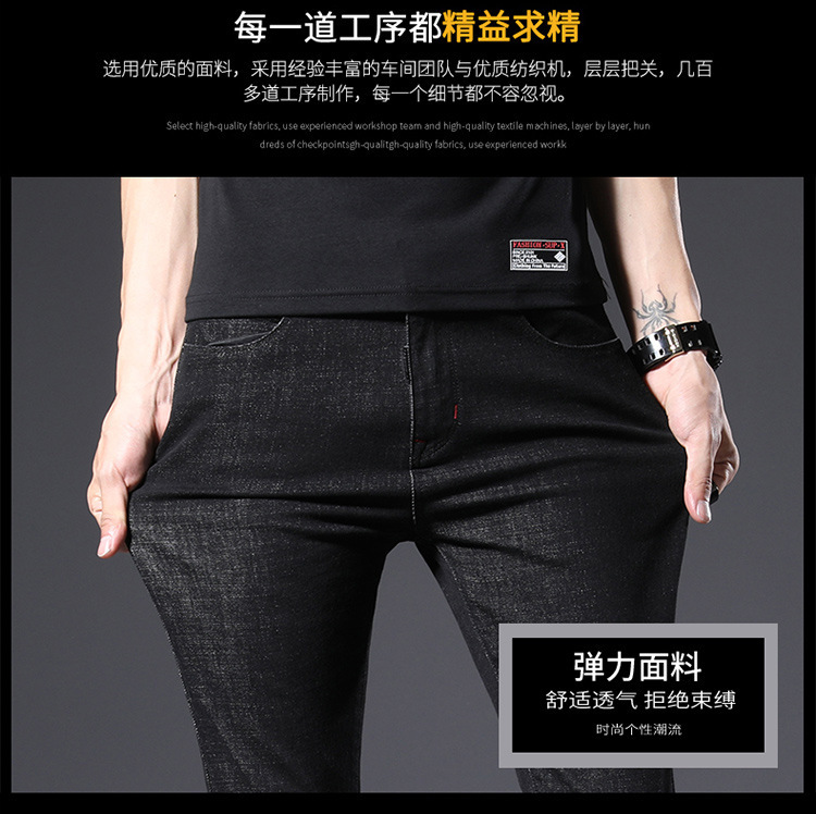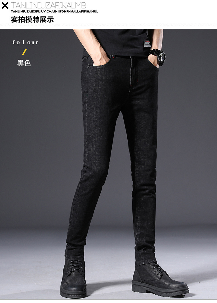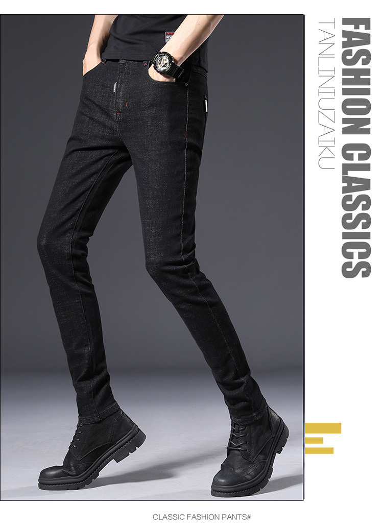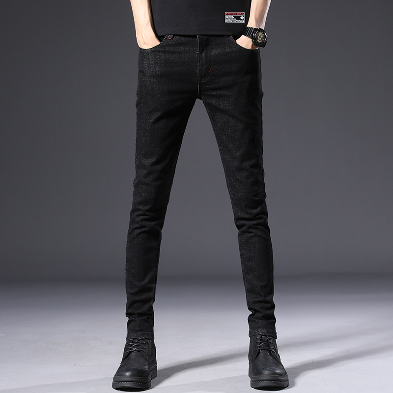 슬림 핏 스키니 진 블랙 남성용 2024 새 봄과 여름 얇은 한국 스트레치 작은 검은 바지 남성용 긴 바지스토어 가기