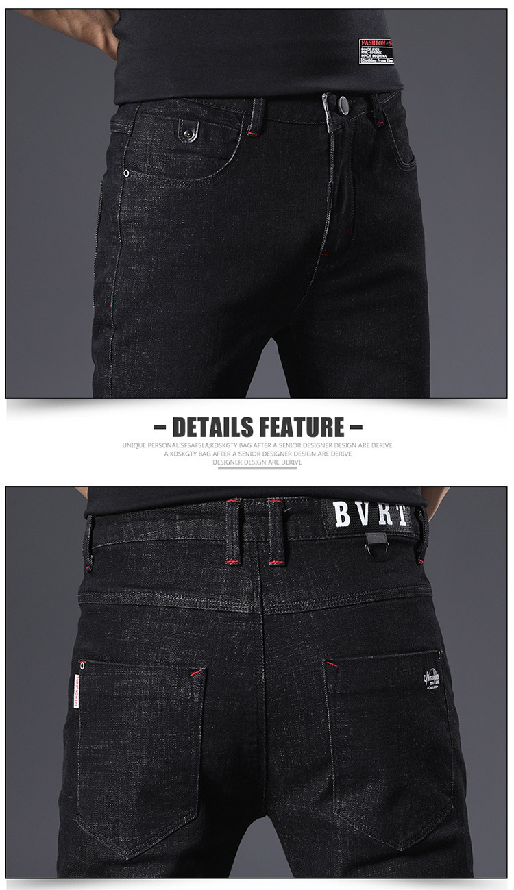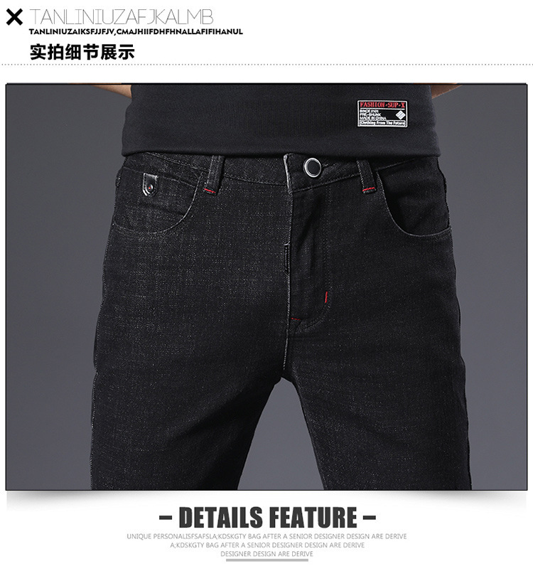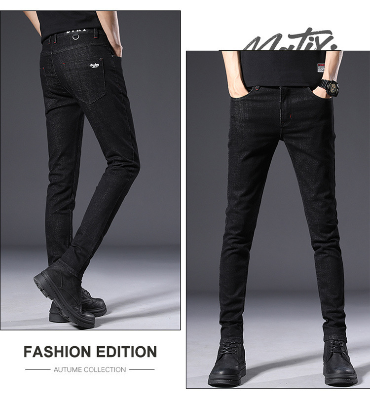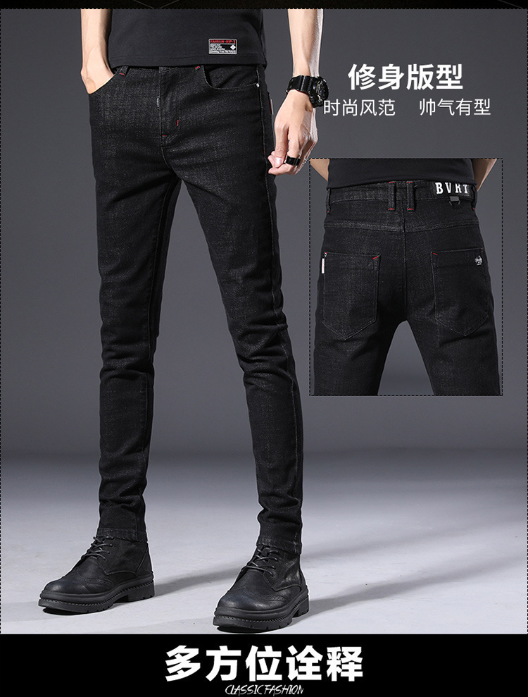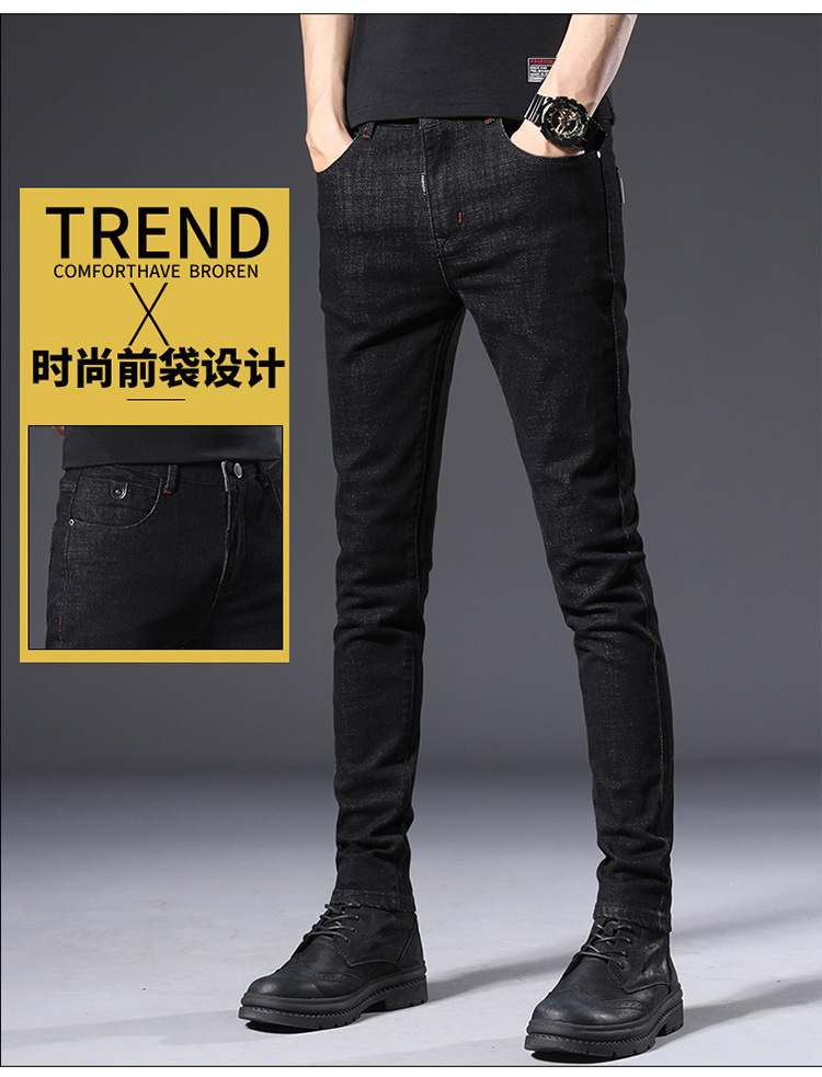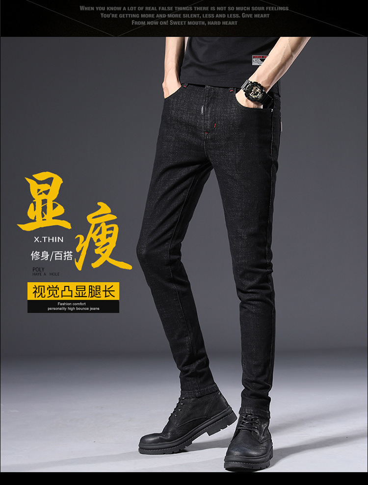 슬림 핏 스키니 진 블랙 남성용 2024 새 봄과 여름 얇은 한국 스트레치 작은 검은 바지 남성용 긴 바지스토어 가기