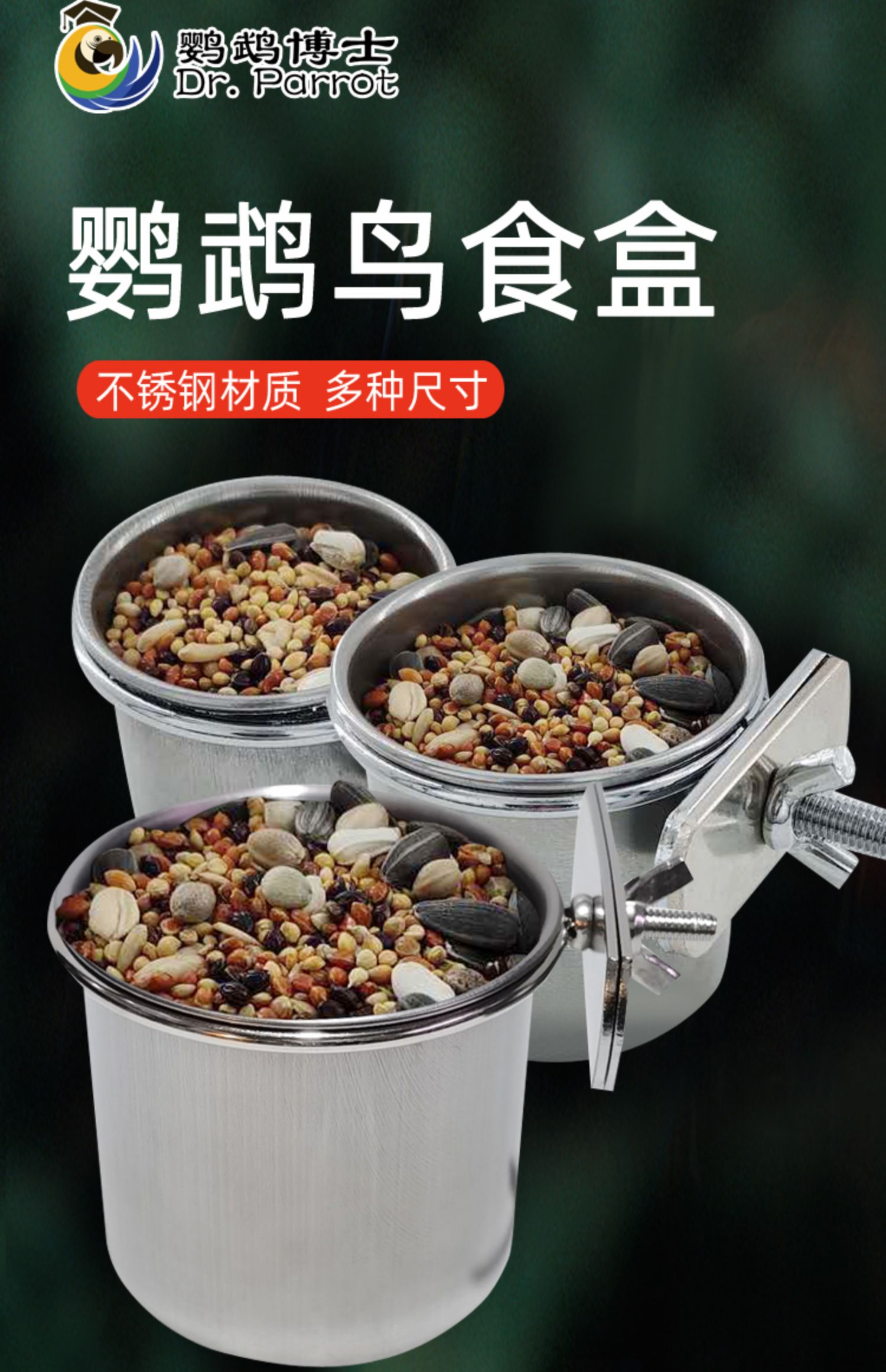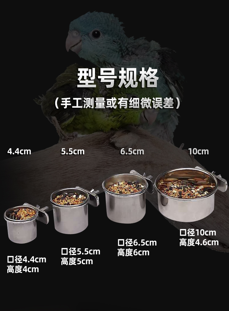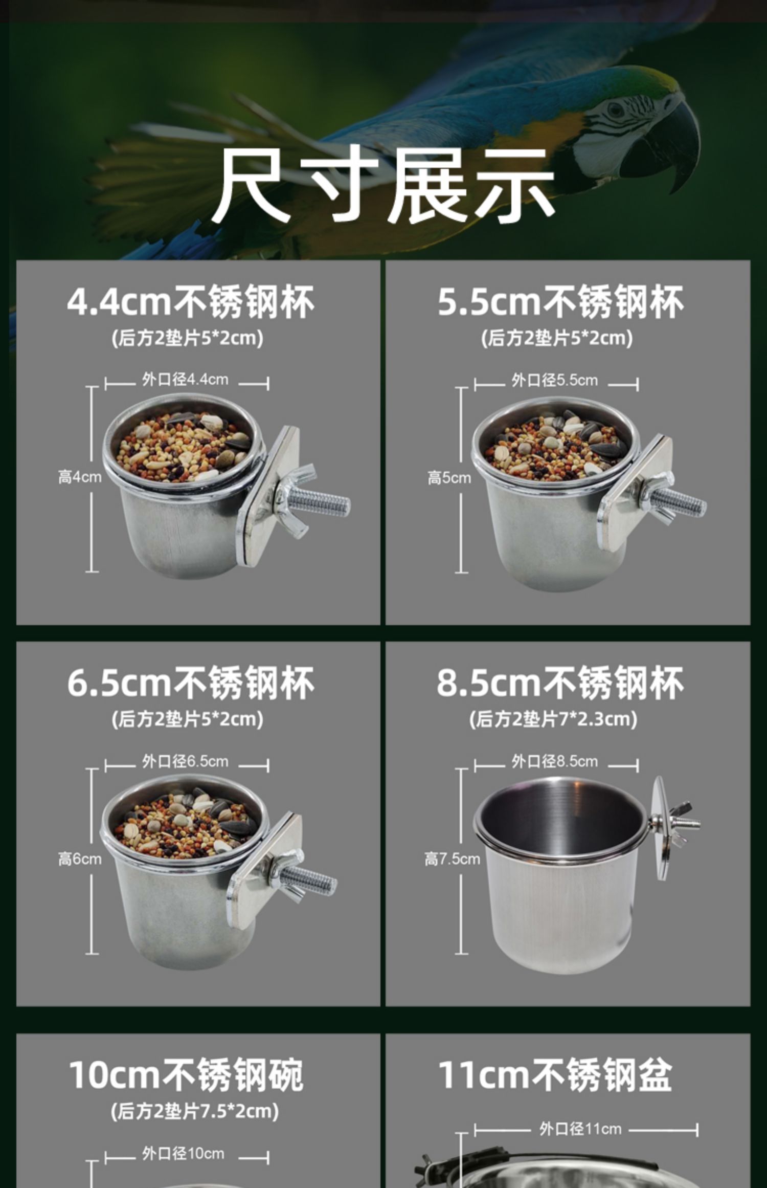 앵무새 스테인리스 새 음식 상자 호랑이 피부 모란 xuanfeng 찌르레기 앵무새 그릇 음식 컵 음식 트로프 피더 술꾼스토어 가기