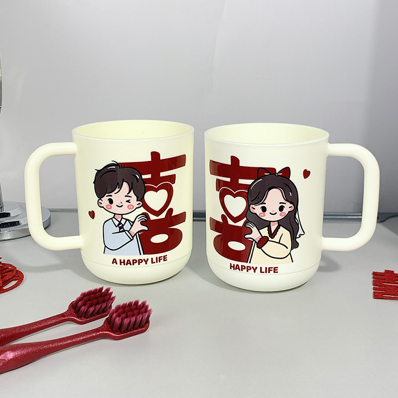 웨딩 웨딩 웨딩 웨딩 에스코트 펀치 프리 욕실 양치질 컵 가족 칫솔 컵 쌍에 대한 행복한 단어 양치질 컵