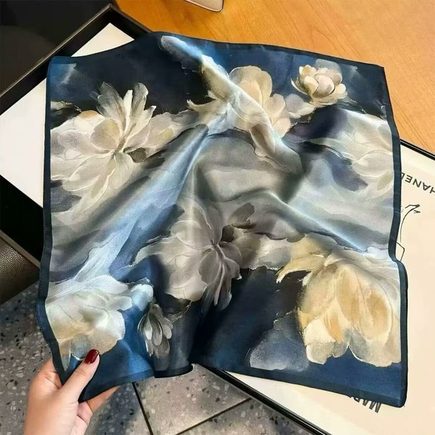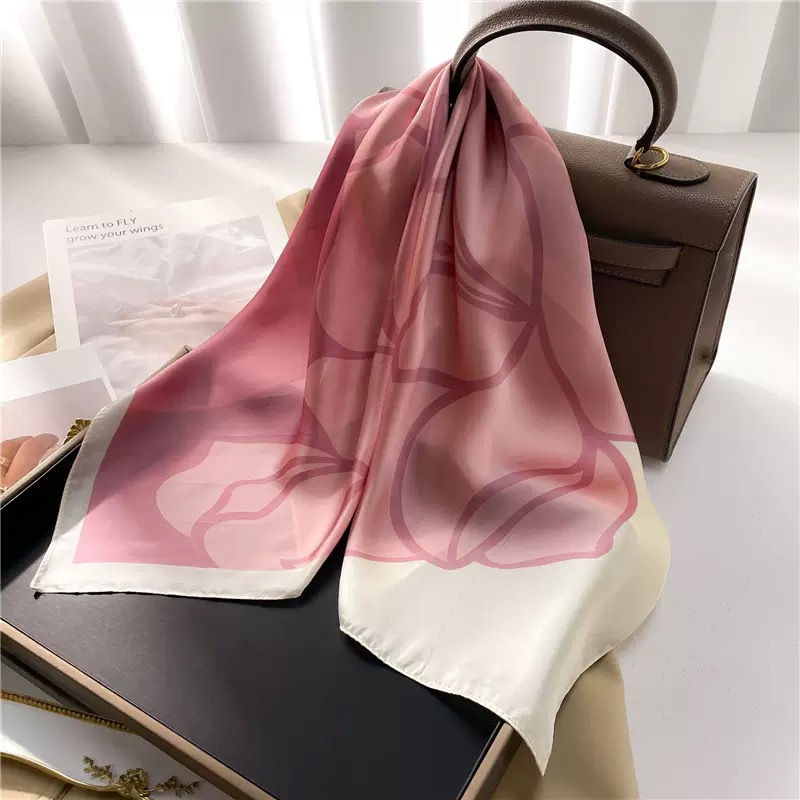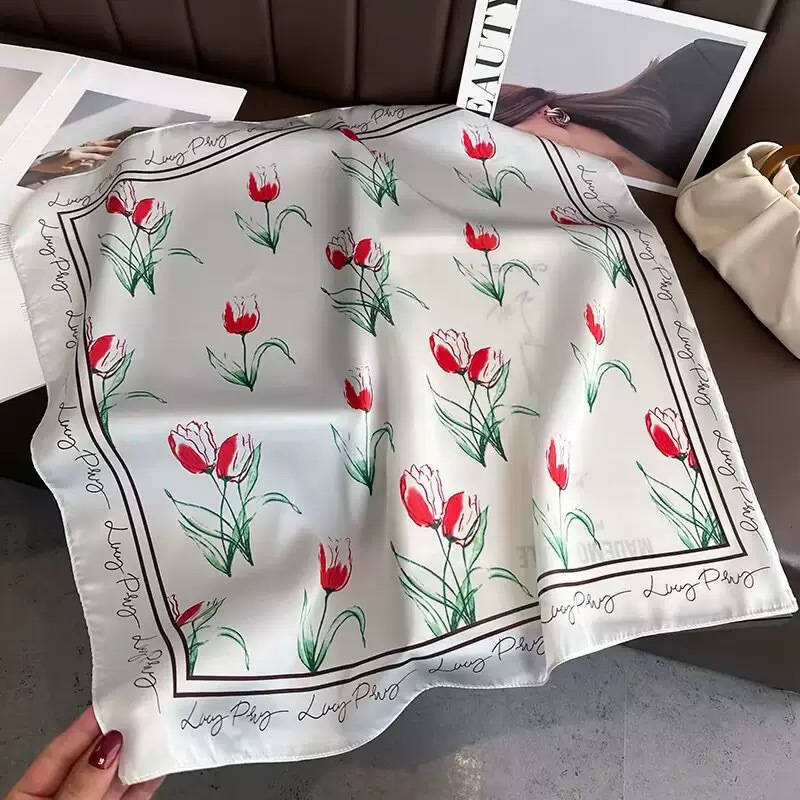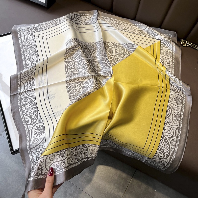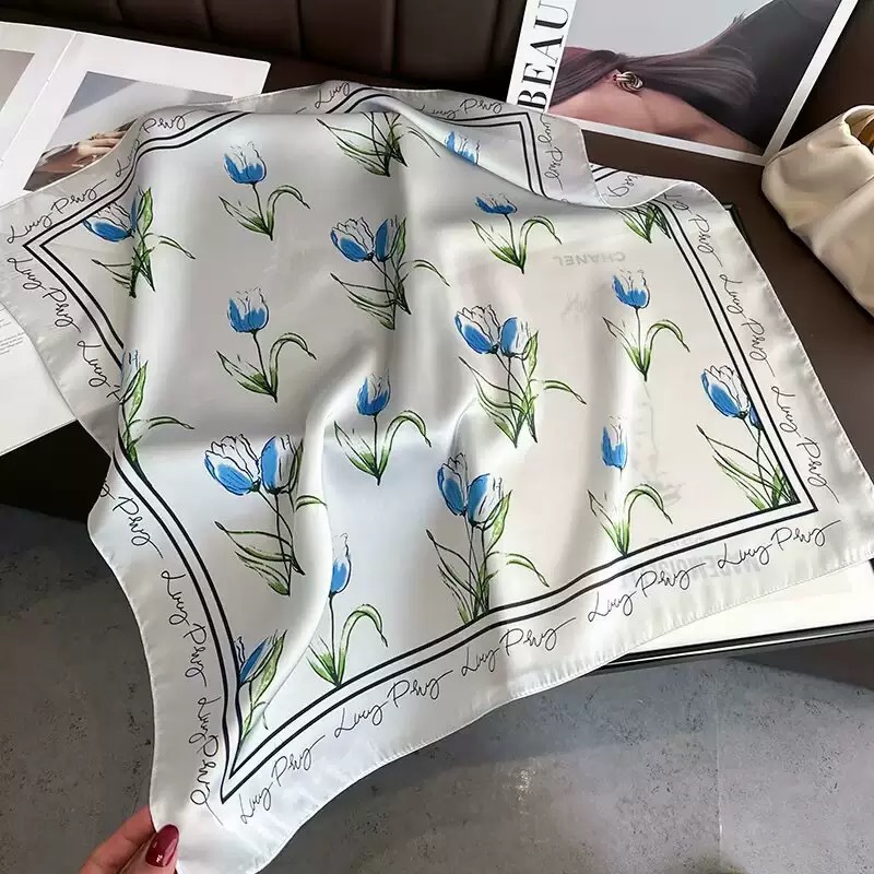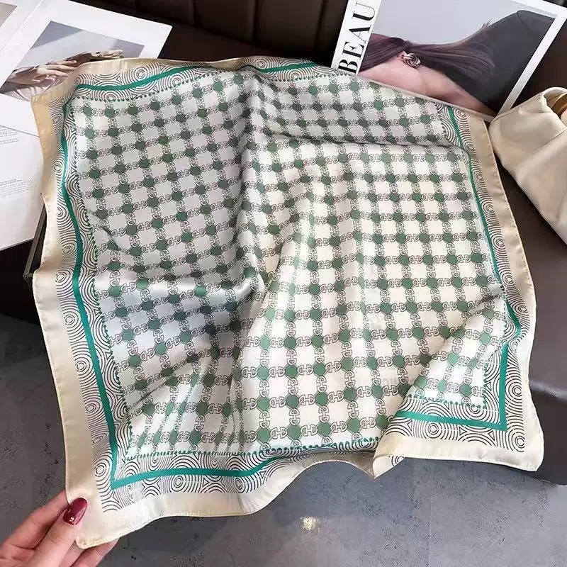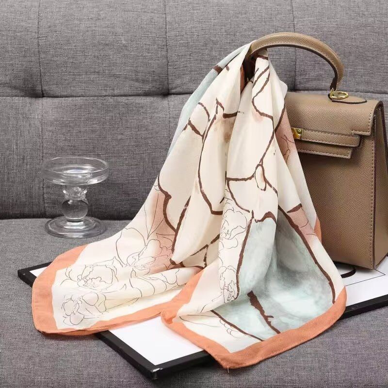 다용도로 매치 가능한 70cm 스카프, 실크 느낌의 스카프, 가벼운 럭셔리와 고급스러운 느낌, 한국 스타일 분위기, 브러버리 스타일 스카프