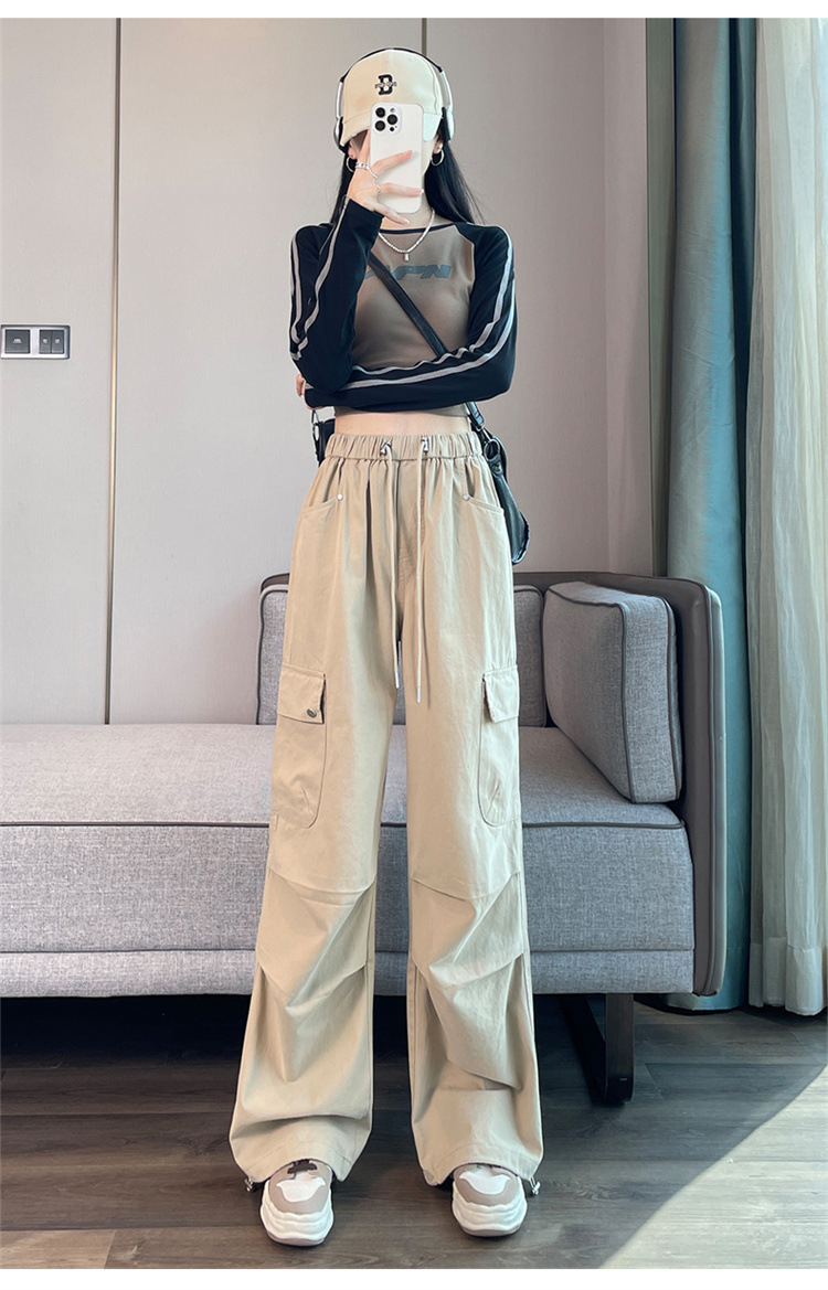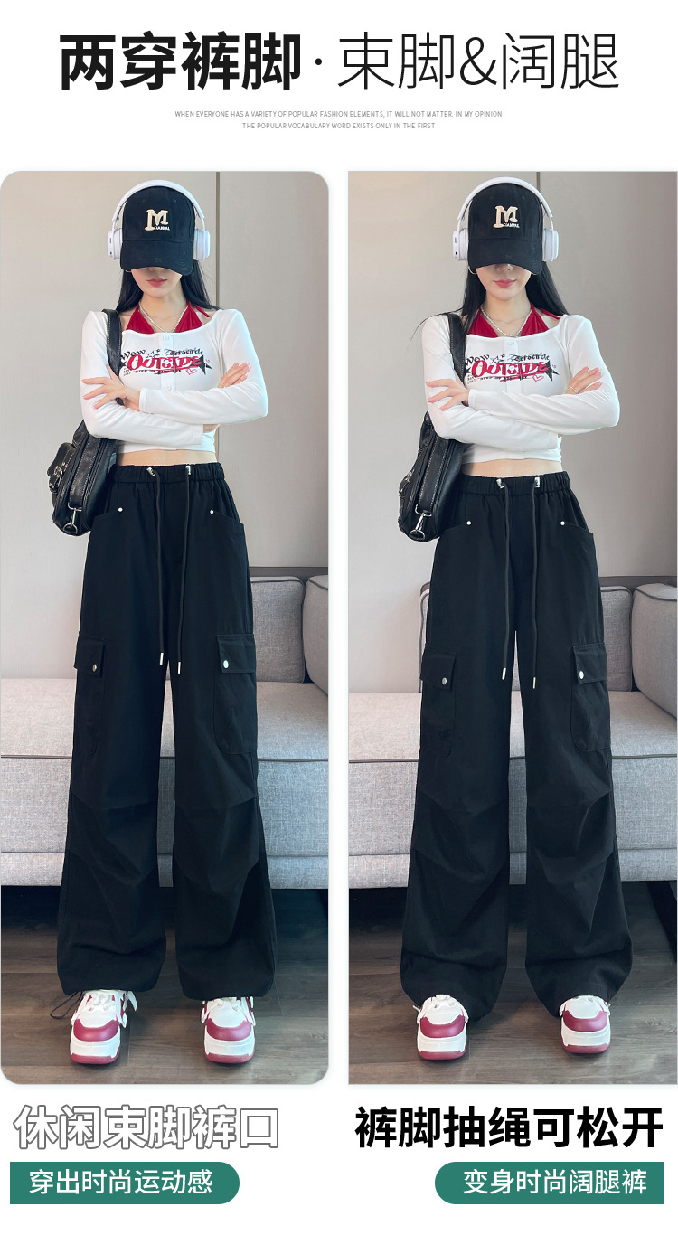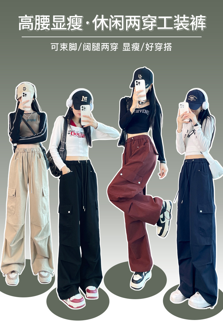 2025 봄 새로운 미국 스타일 등반 바지 여성용 루즈 스트리트 크레인 바지 캐주얼 와이드 레그 힙 스포츠 바지스토어 가기