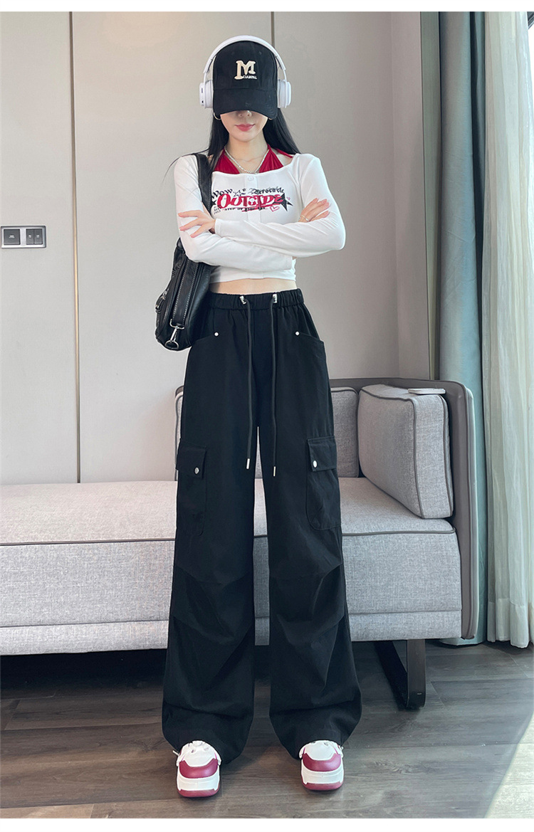 2025 봄 새로운 미국 스타일 등반 바지 여성용 루즈 스트리트 크레인 바지 캐주얼 와이드 레그 힙 스포츠 바지