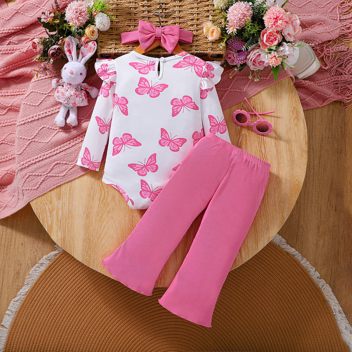 대외 무역 신생아 여름 긴팔 3피스 세트, 터번 바지 정장 도매