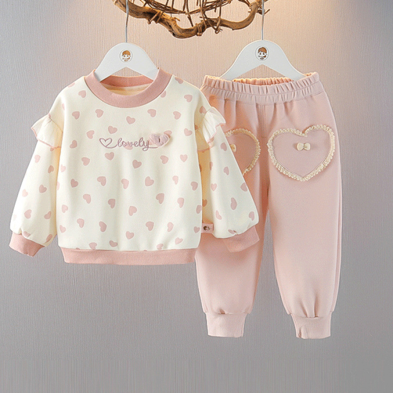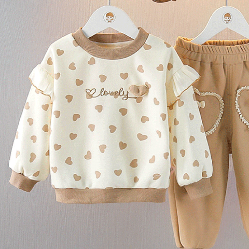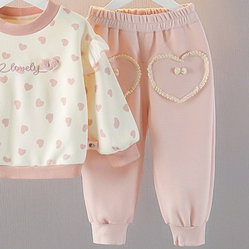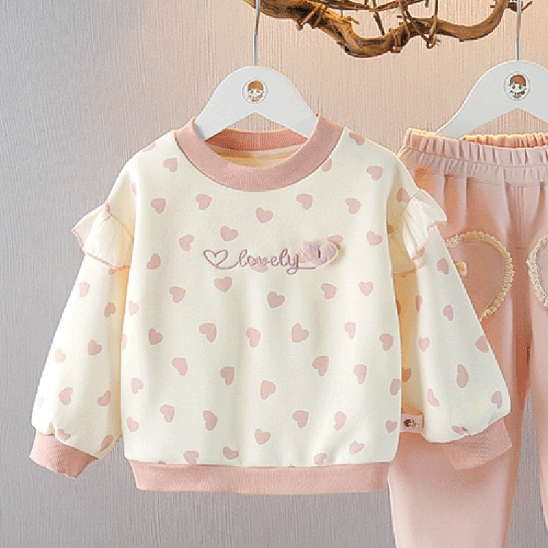 서양식 소녀 세트 2025 가을 새 아기 소녀 스포츠 세트 1 년 된 봄과 가을 어린이 스웨트 셔츠 2 피스 세트