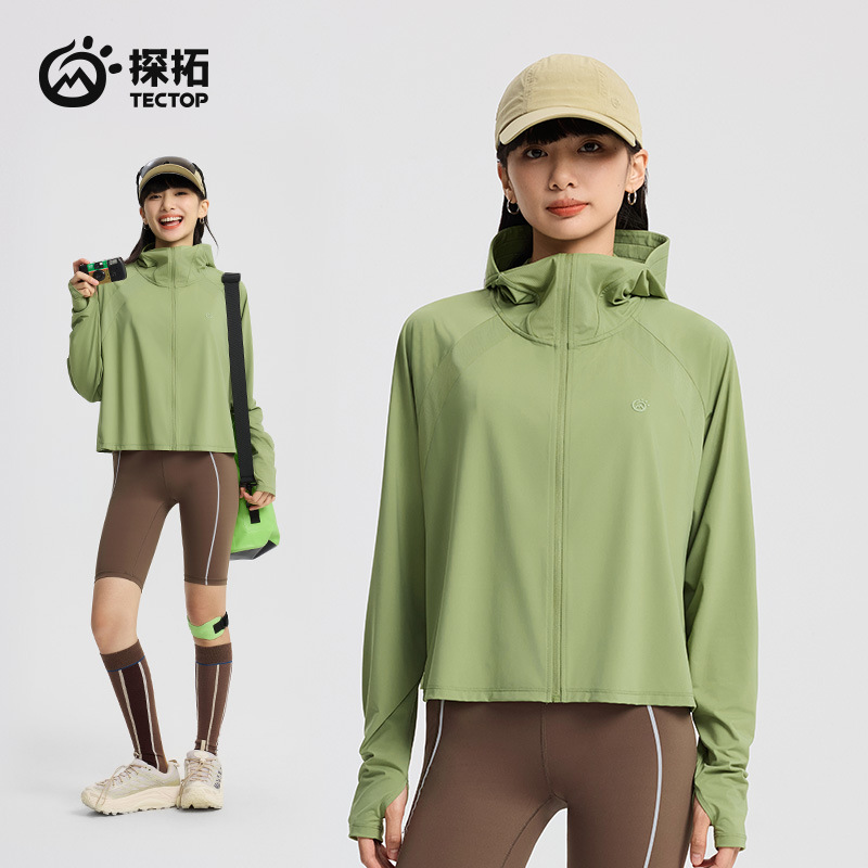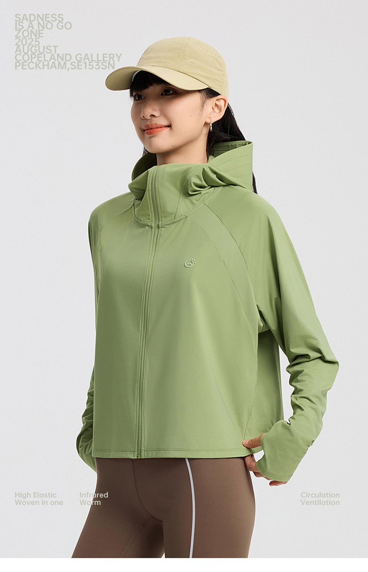 봄과 여름 2025 새로운 스타일 야외 여성 선 스크린 의류 후드 아이스 실크 안티 UV 승마 의류 UPF200