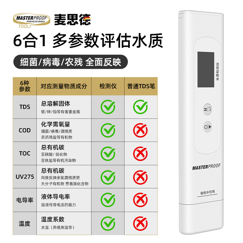 Med 다중 매개 변수 수질 탐지기 TDS 가정용 정수기 식수 수돗물 고정밀 탐지 펜스토어 가기