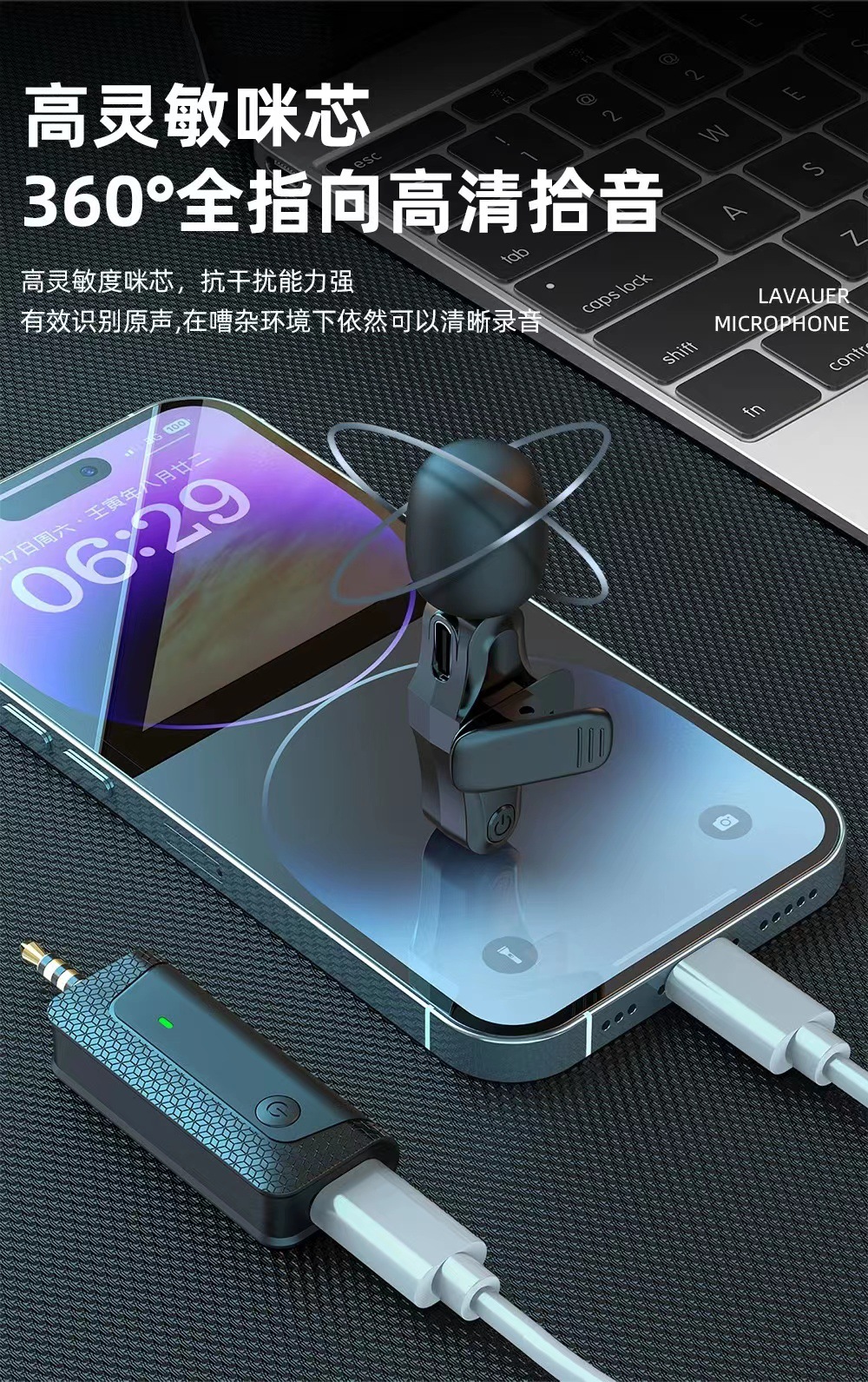 국경 간 개인 모델 무선 칼라 클립 마이크 휴대 전화 카메라 라이브 소음 감소 vlog 비디오 녹화 미니 마이크