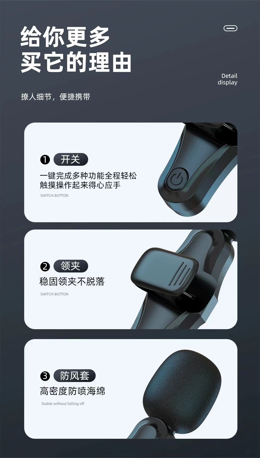 국경 간 개인 모델 무선 칼라 클립 마이크 휴대 전화 카메라 라이브 소음 감소 vlog 비디오 녹화 미니 마이크스토어 가기