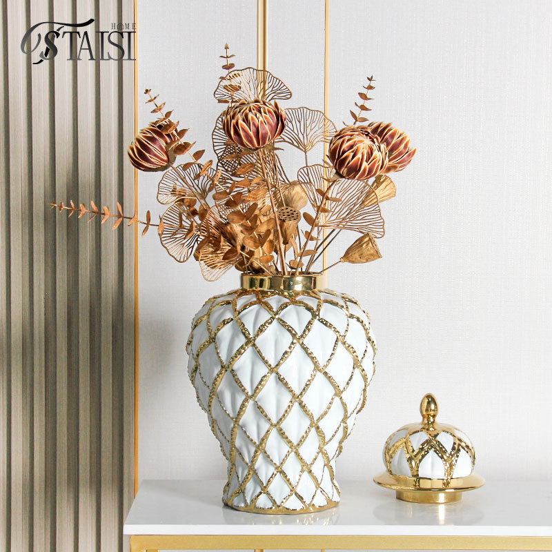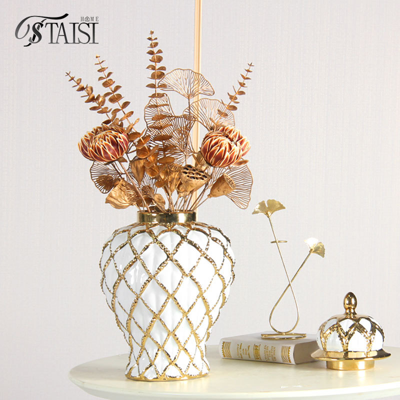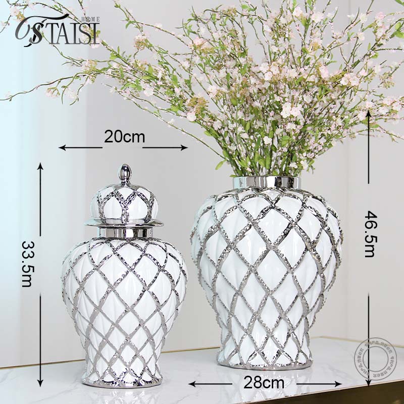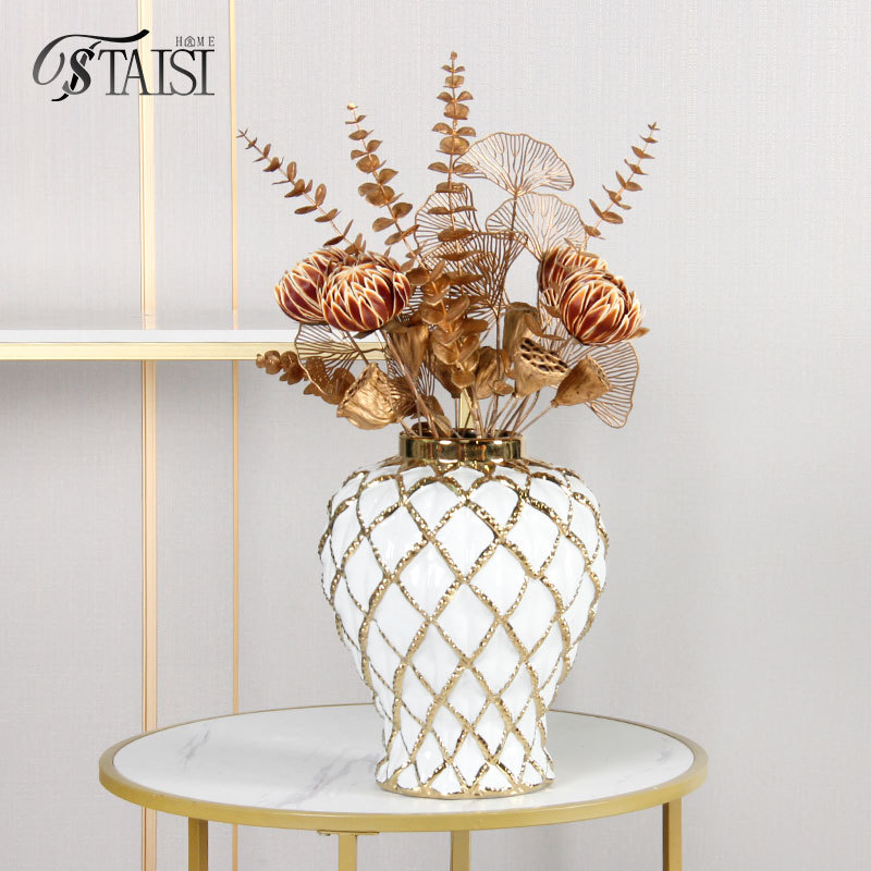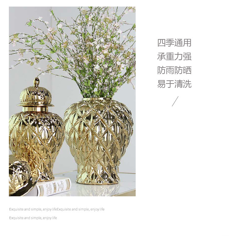 국경 전기 도금 세라믹 고급 시뮬레이션 꽃병 장식 꽃 배열 공예 꽃 부드러운 가짜 꽃 장식 사용자 정의스토어 가기