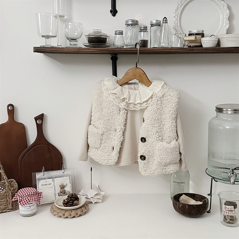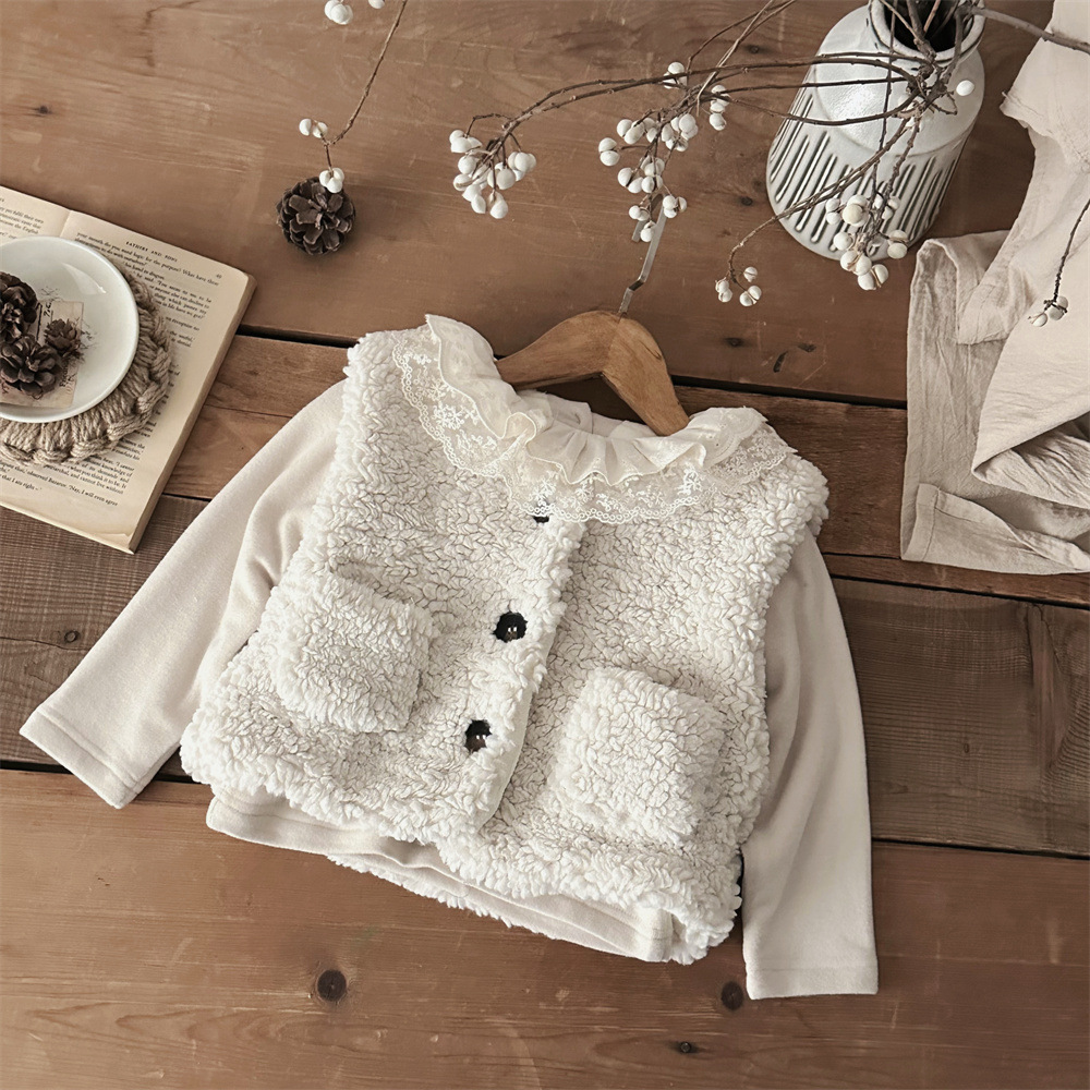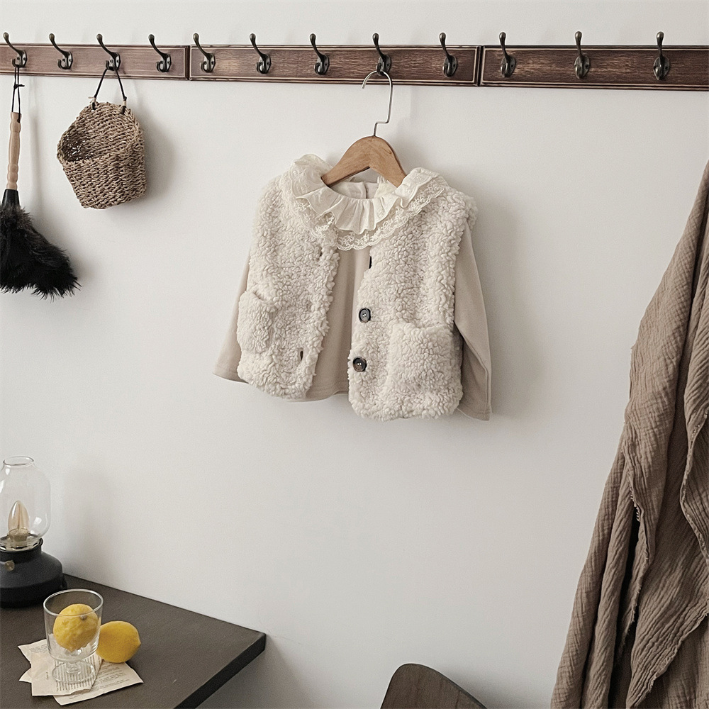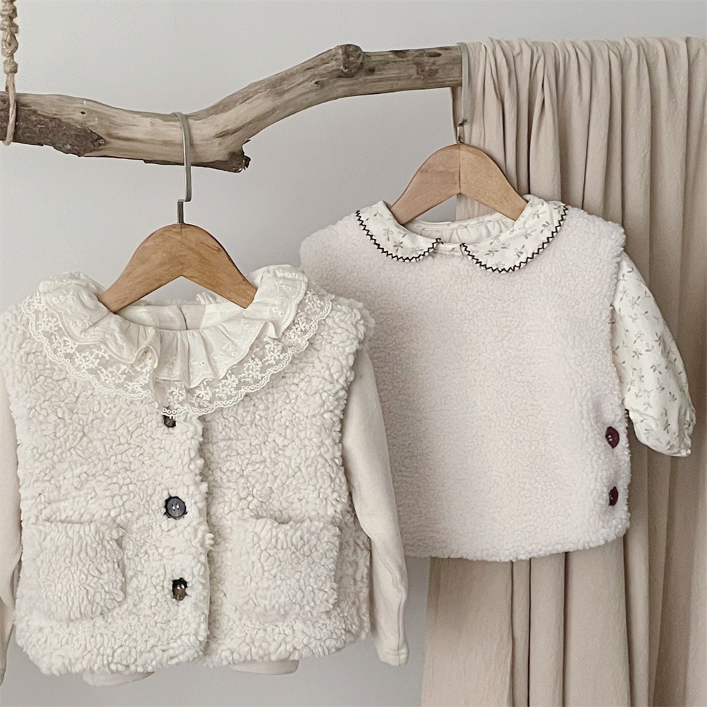 INS 아기 가을/겨울 기모 조끼 여성 아기 더블 포켓 따뜻한 양모 조끼스토어 가기