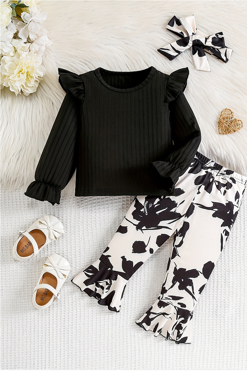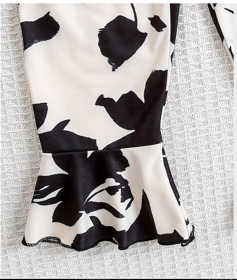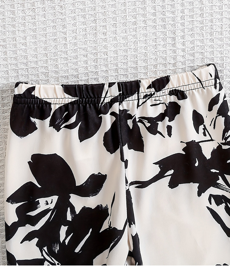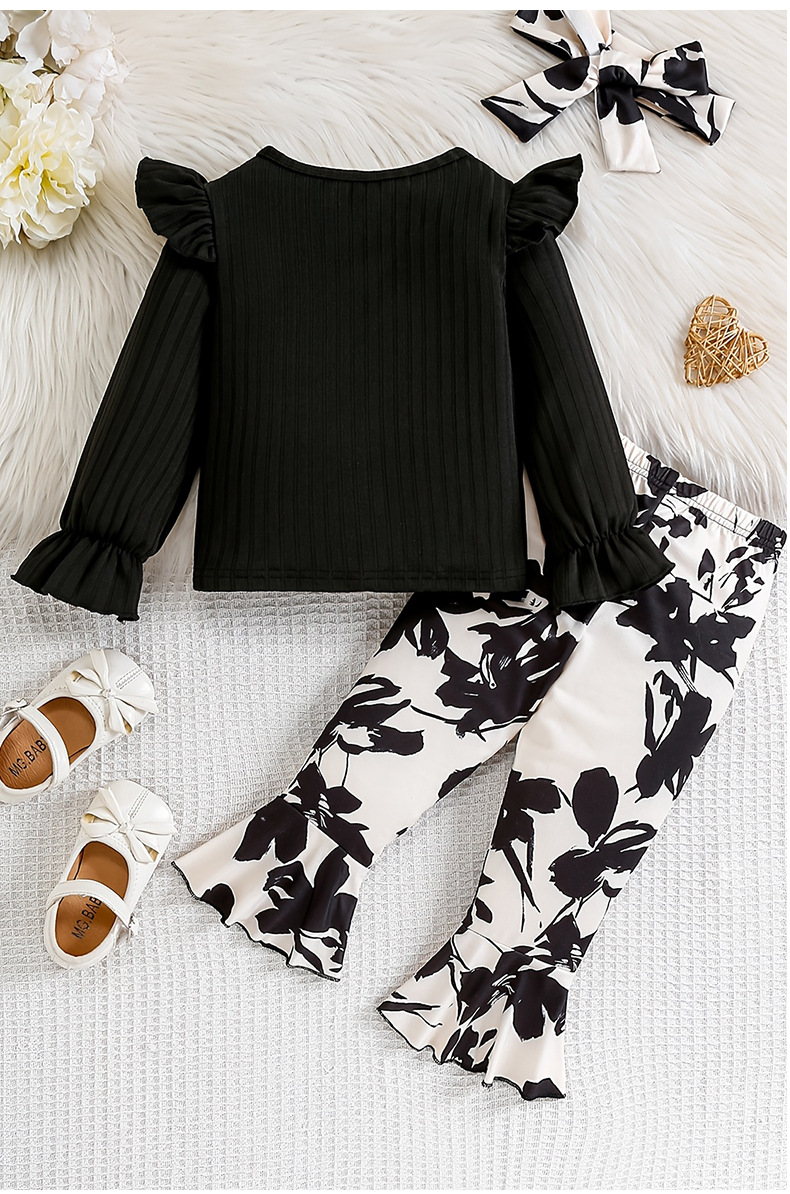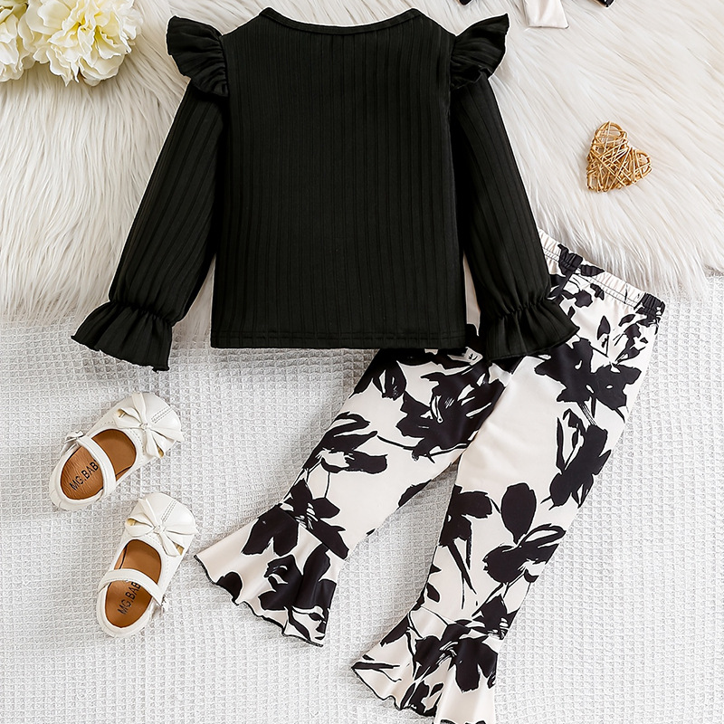 국경 간 봄과 가을 새로운 아기 소녀 캐주얼 탑 작은 비행 소매 긴 소매 티셔츠 잉크 인쇄 경적 바지 세트