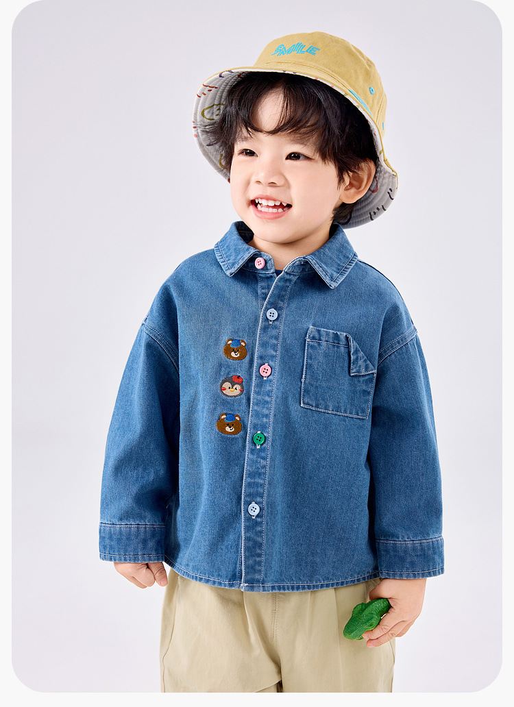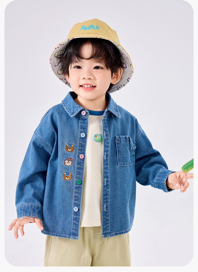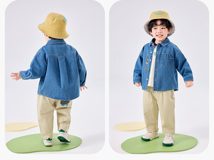 [캐주얼웨어] 낙서 어린이 데님 코트 봄 소년 셔츠 봄 여아 캐주얼 바지 아동복스토어 가기