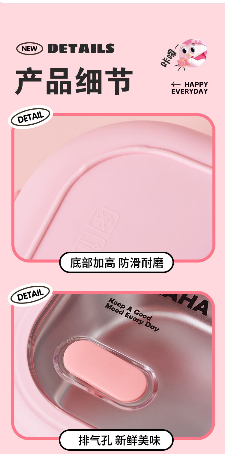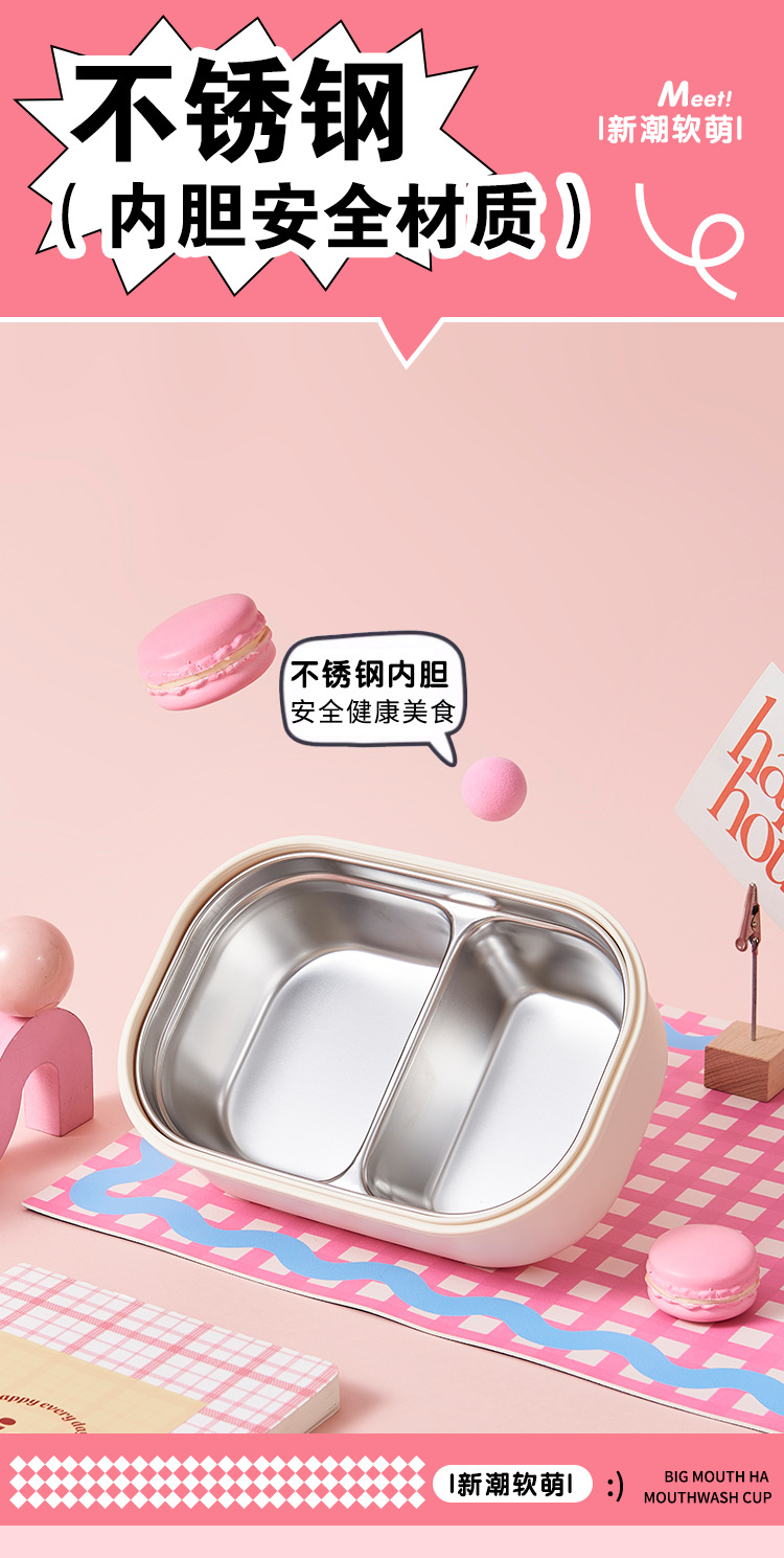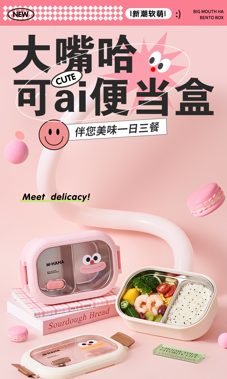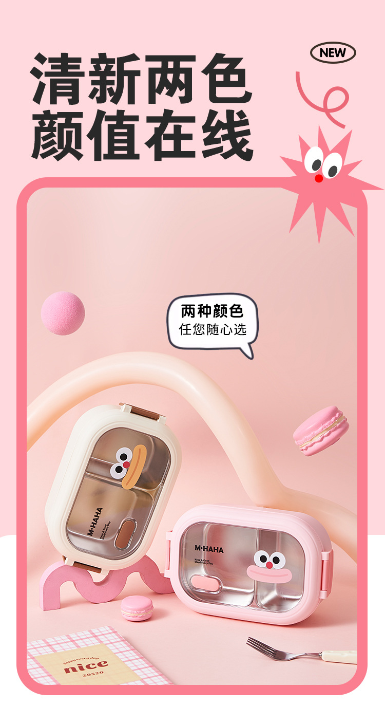 가정용 귀여운 큰 입 스테인레스 스틸 점심 도시락 학생 및 초등학생을위한 사무실 근로자를위한 격자 도시락 뚜껑이있는 휴대용스토어 가기