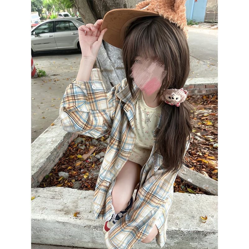 미국 스타일 격자 무늬 느슨한 셔츠 가을 새로운 게으른 캐주얼 느슨한 중간 길이 셔츠 긴팔 재킷 트렌디 탑