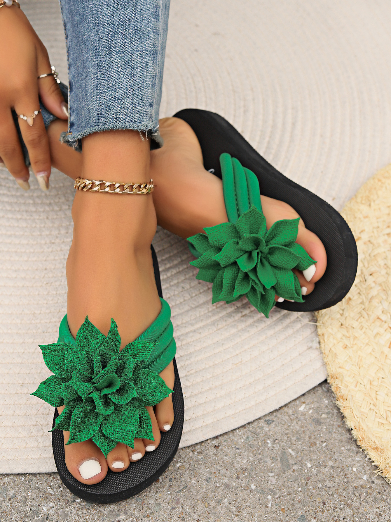 플립 토 플립 플롭 여성용 초대형 플로럴 플랫 샌들 남성과 여성 여름 최신 커플 샌들스토어 가기