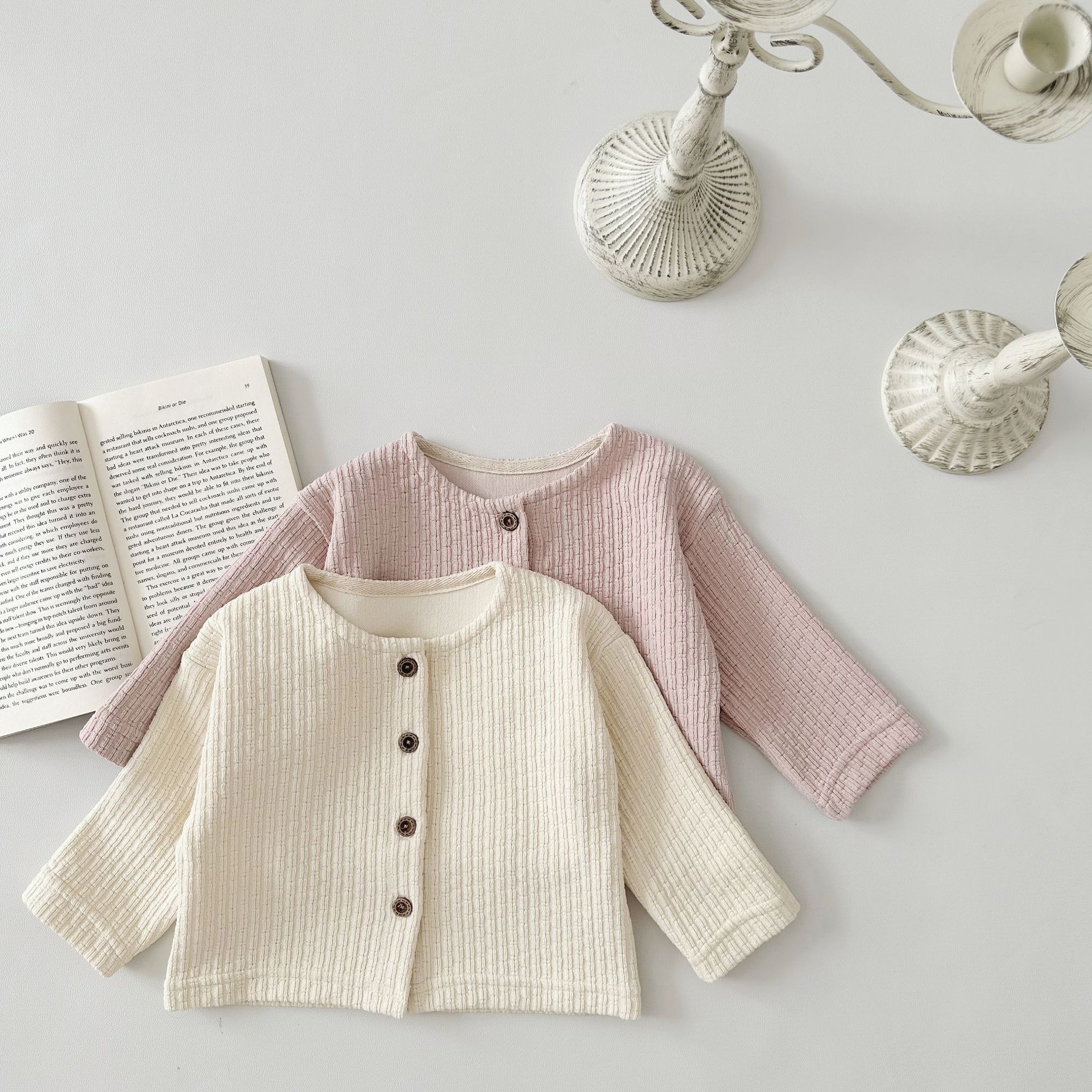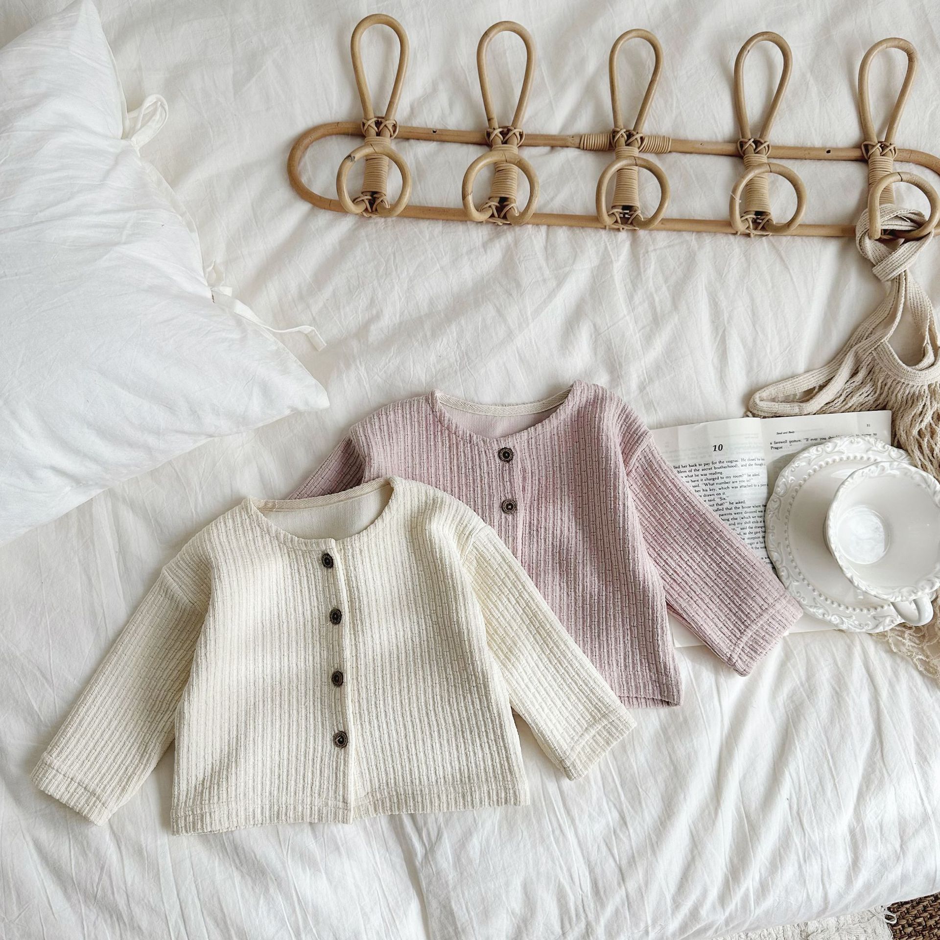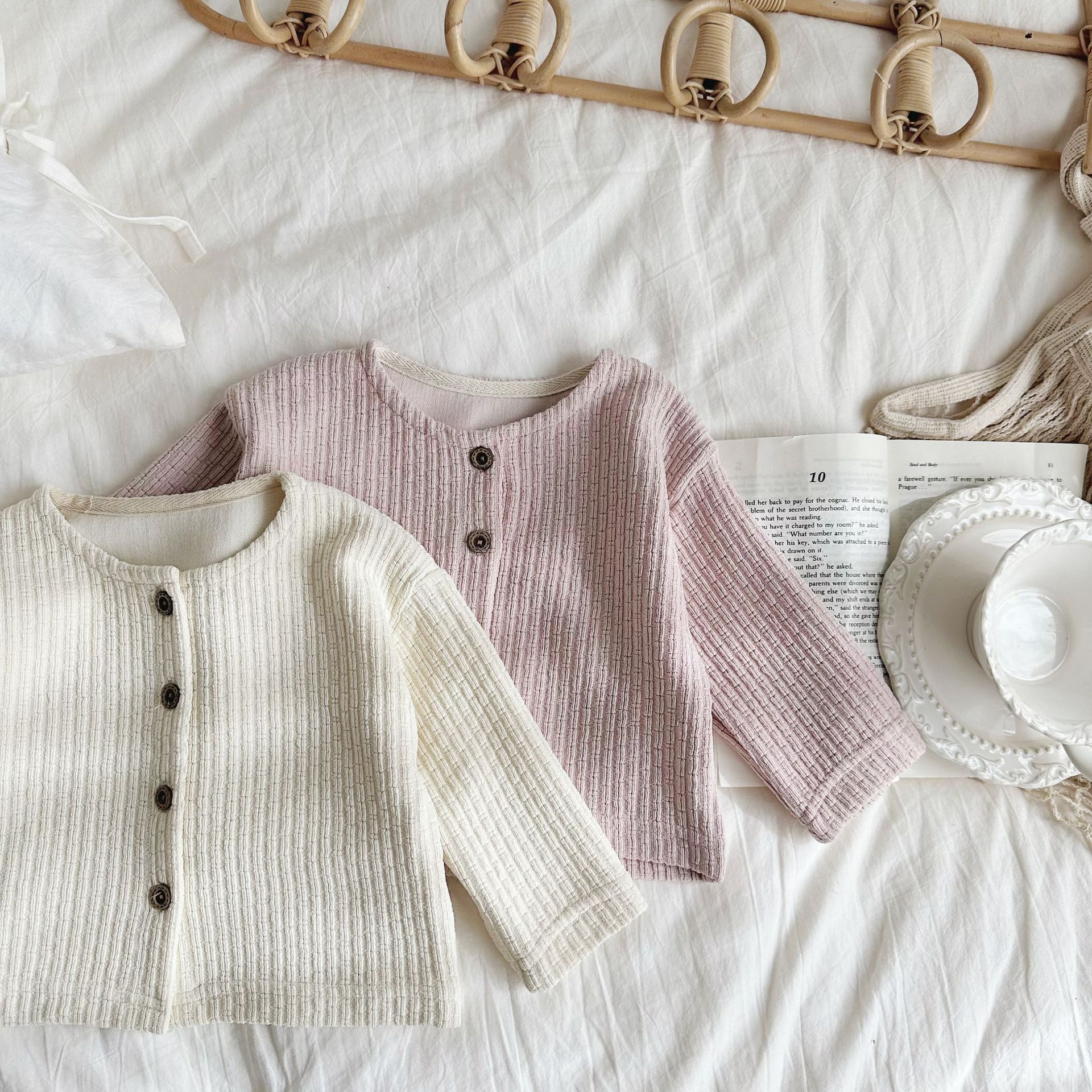 INS 아기 봄과 가을 크루 넥 긴 소매 카디건 간단한 싱글 브레스트 간단한 재킷