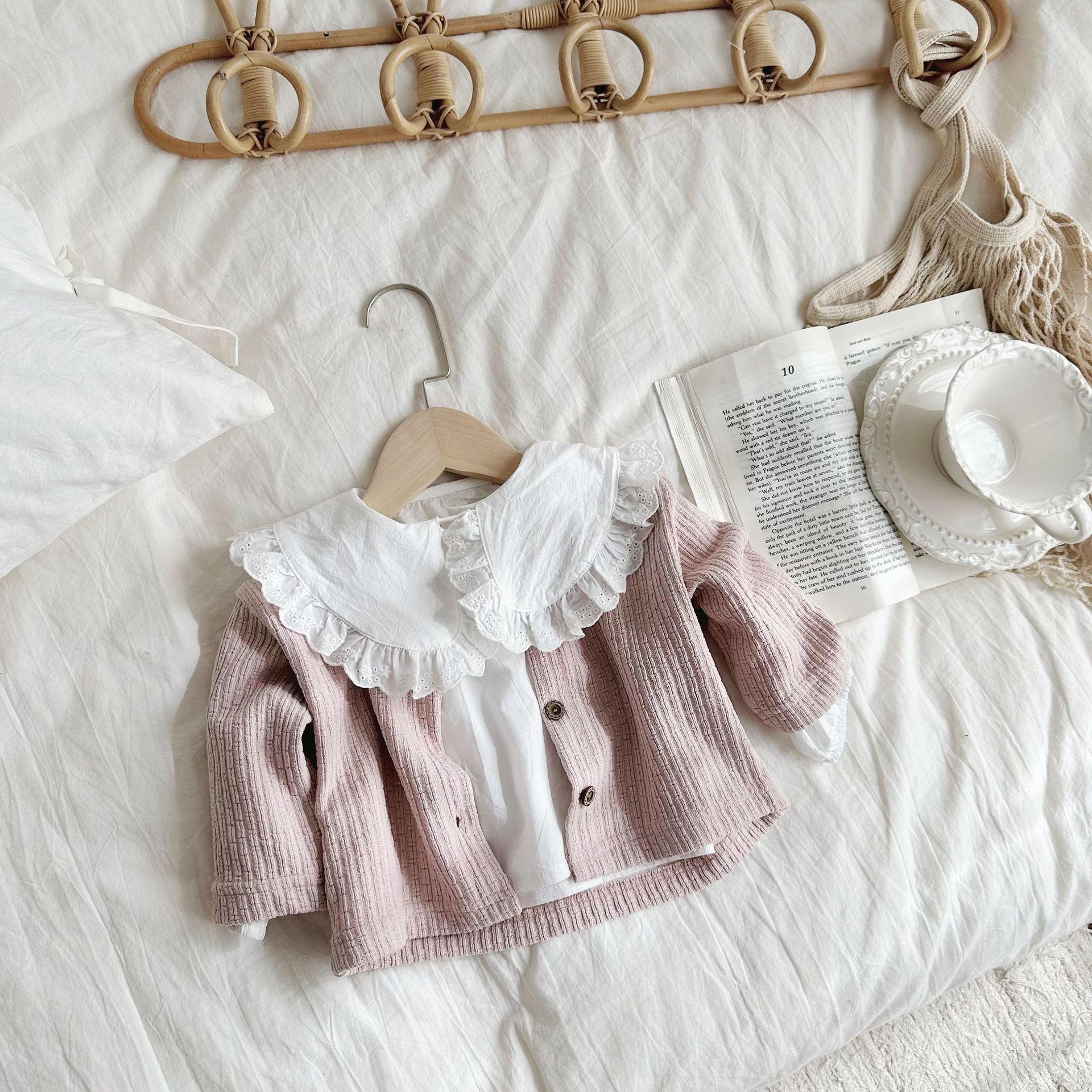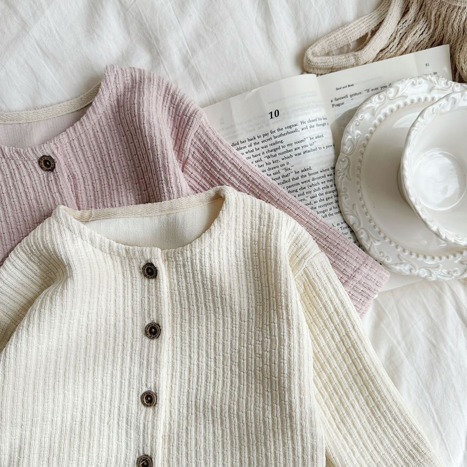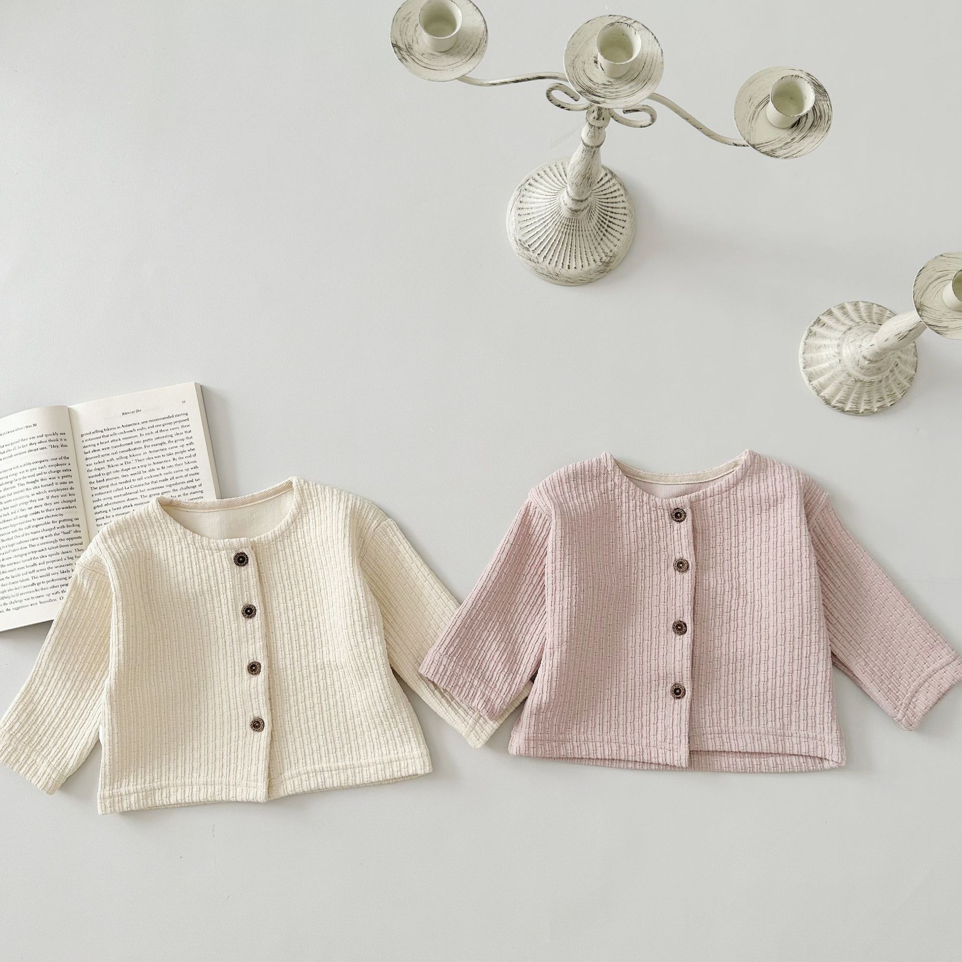 INS 아기 봄과 가을 크루 넥 긴 소매 카디건 간단한 싱글 브레스트 간단한 재킷