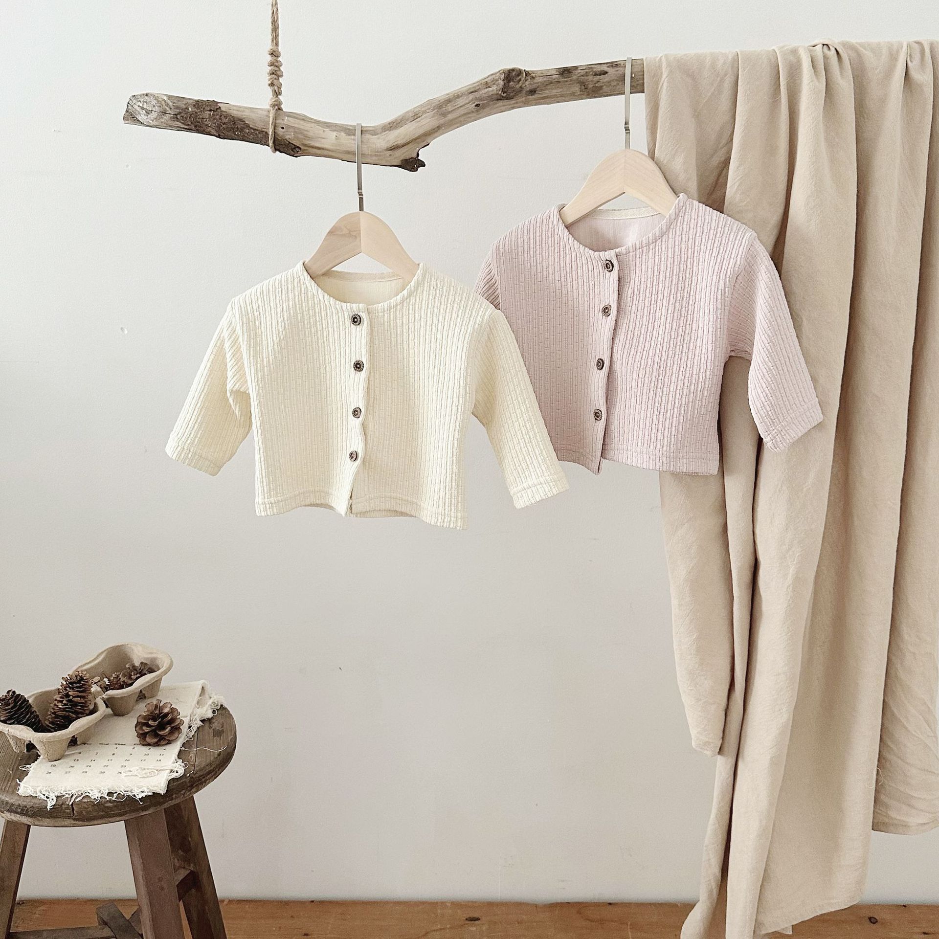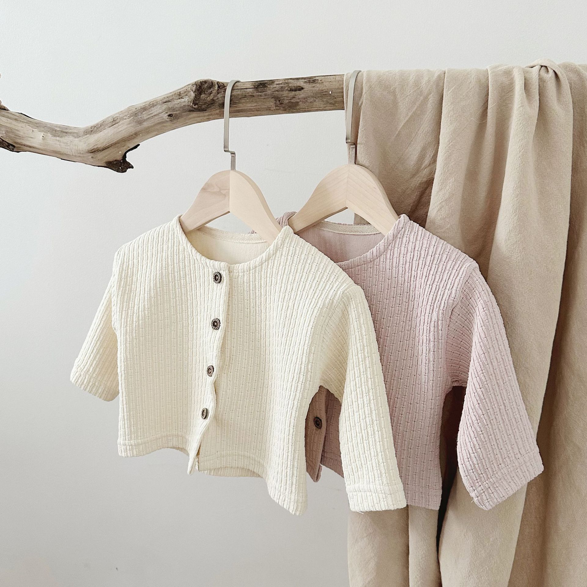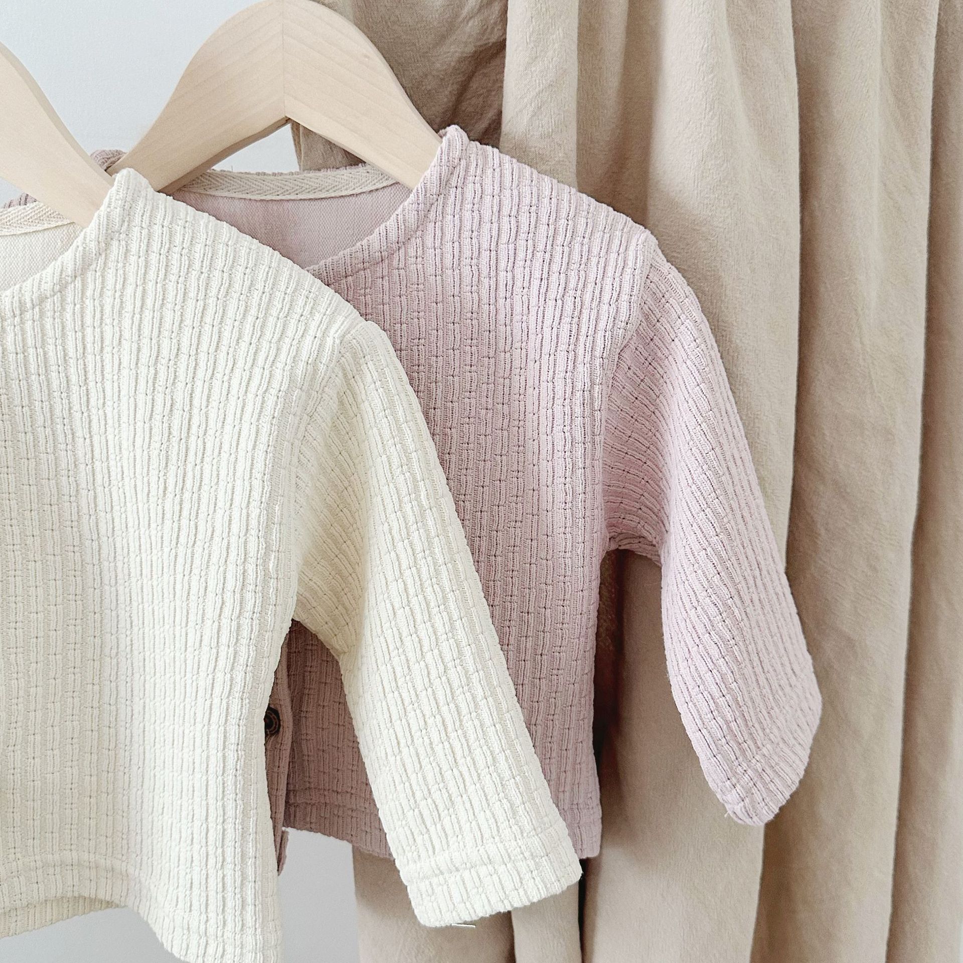 INS 아기 봄과 가을 크루 넥 긴 소매 카디건 간단한 싱글 브레스트 간단한 재킷스토어 가기