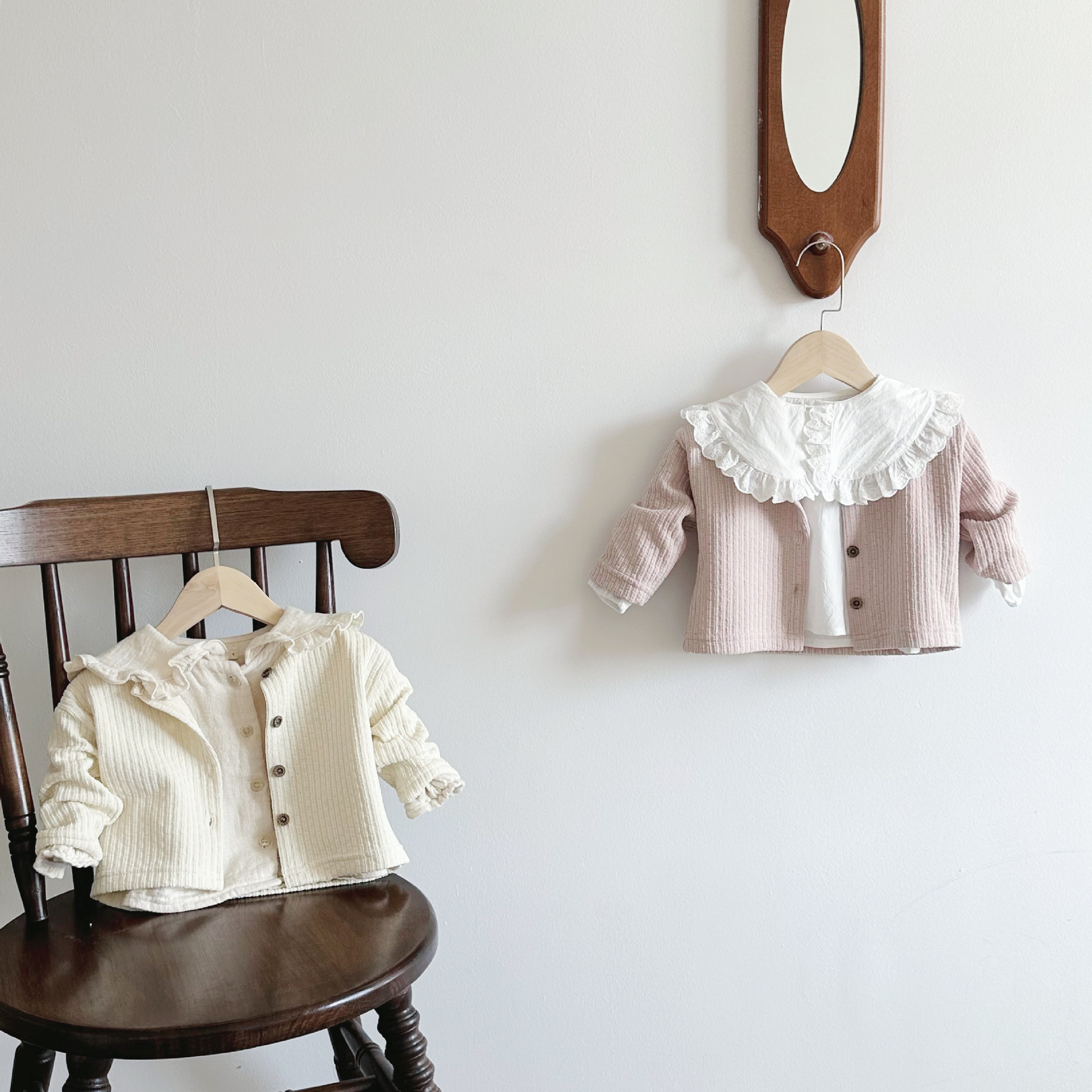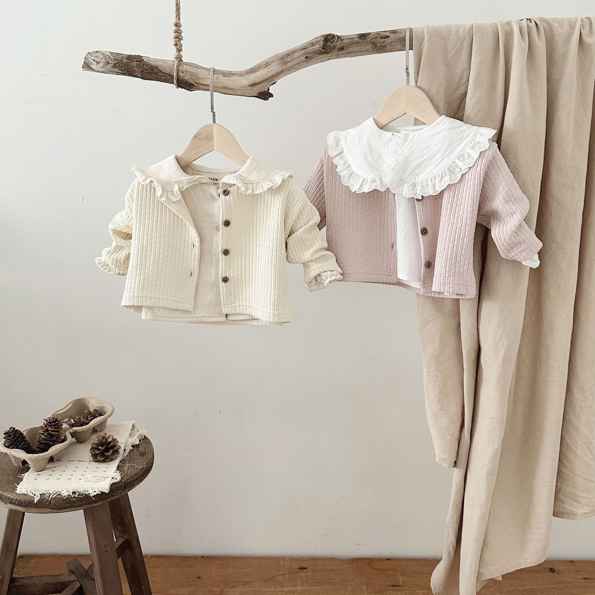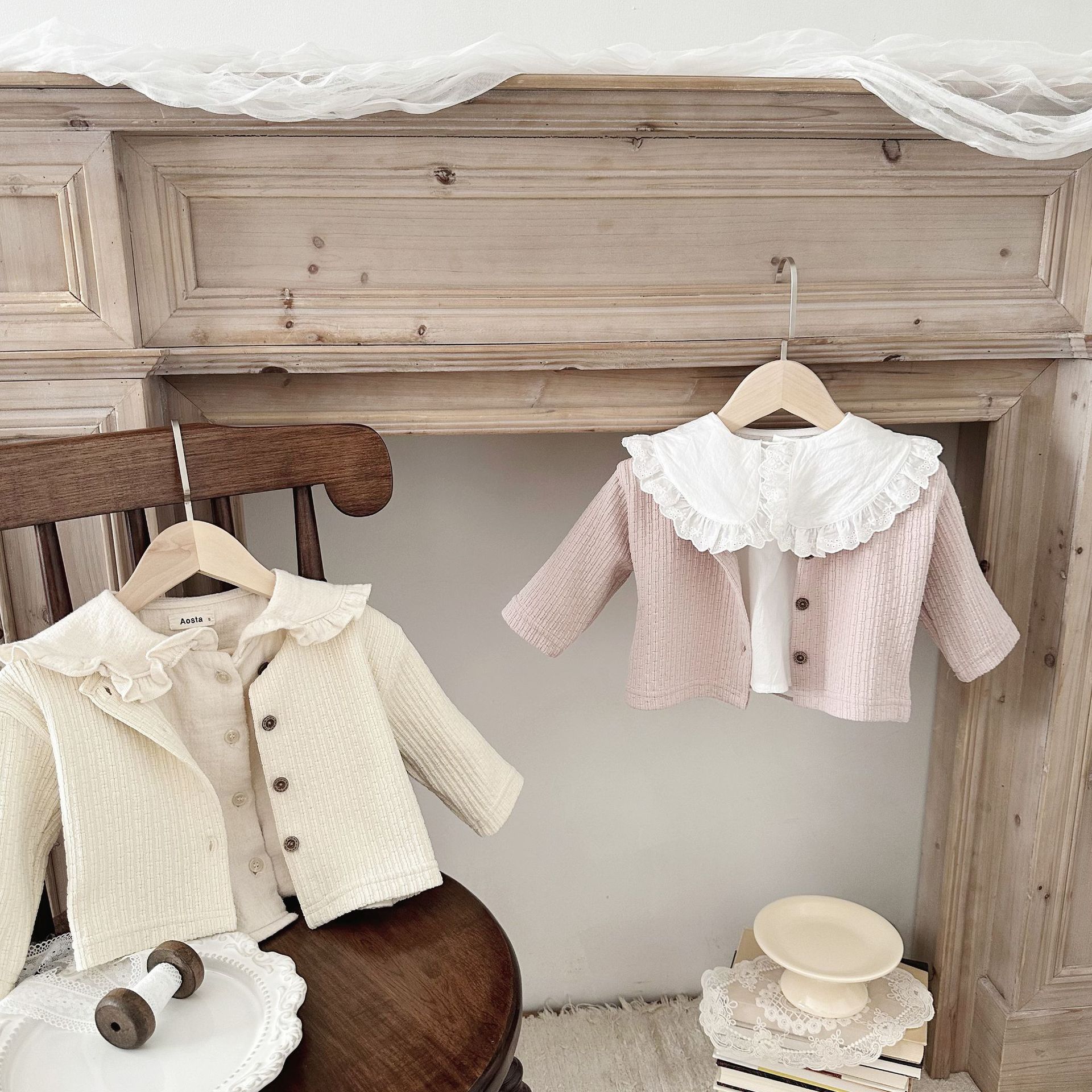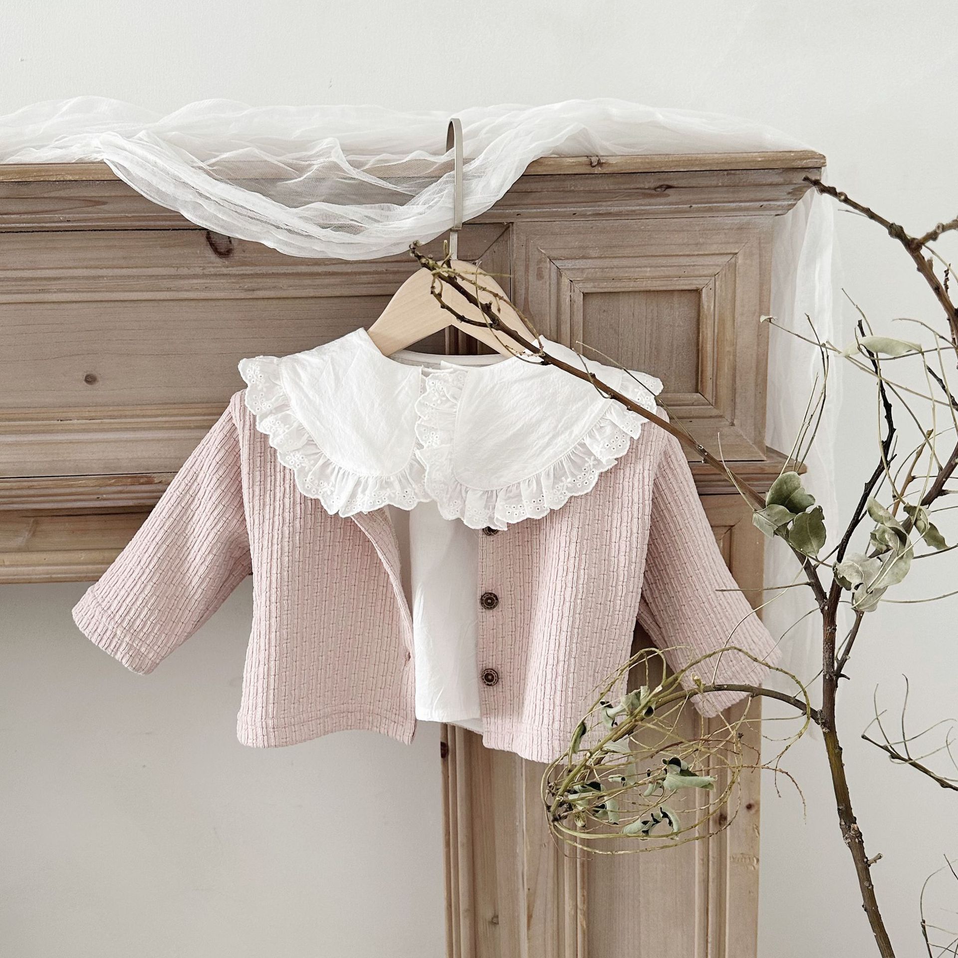 INS 아기 봄과 가을 크루 넥 긴 소매 카디건 간단한 싱글 브레스트 간단한 재킷스토어 가기