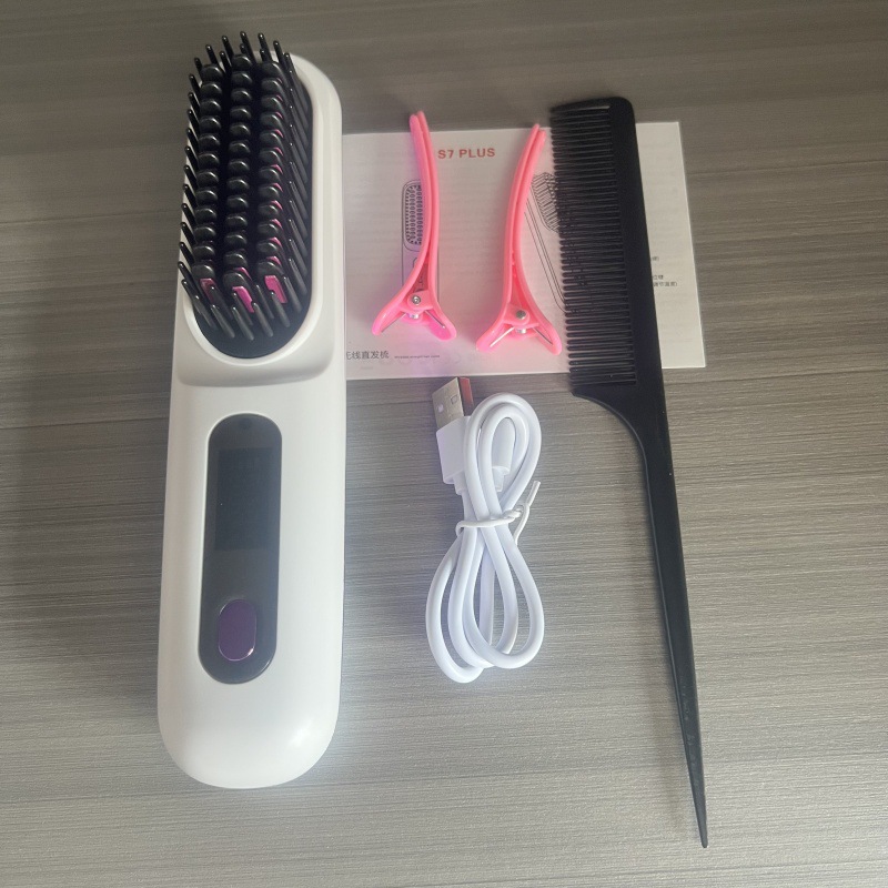 跨境新款充电直发梳便携时尚负离子直发棒梳子无线柔顺护发直发梳