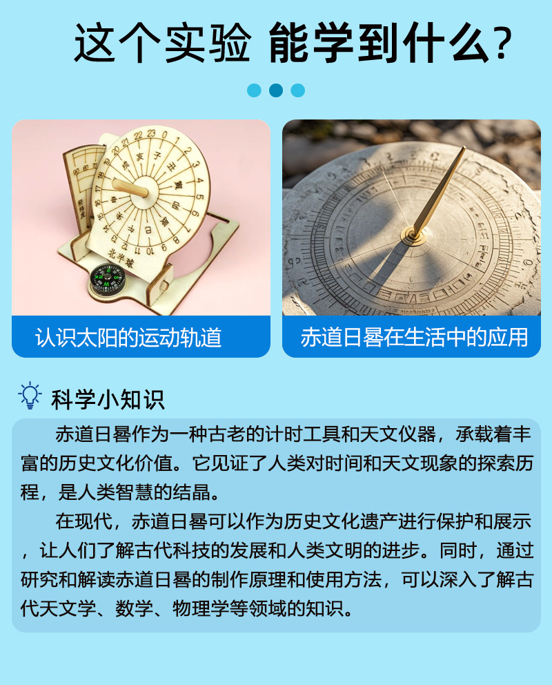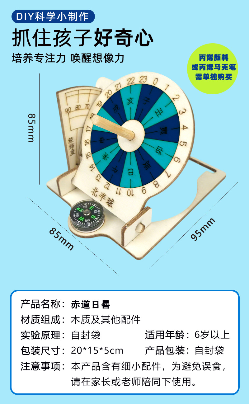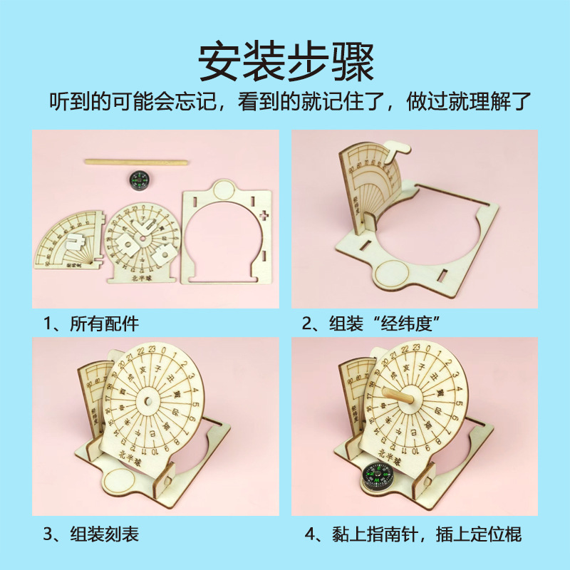 어린이 적도 해시계 초등학교 학생 과학 기술 소규모 생산 과학 실험 교육 지원 수동 작업 DIY 소재 패키지스토어 가기