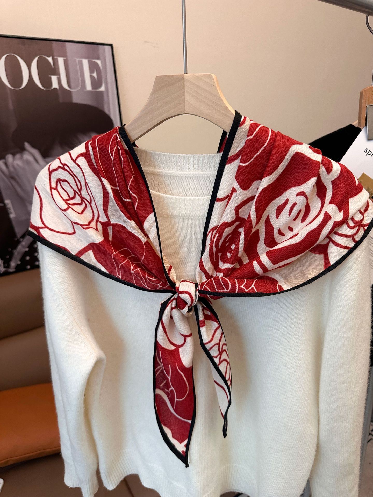 봄과 여름 삼각형 스카프 비 페이딩 프랑스 장미 정원 스카프 인터넷 인기있는 외국 스타일 어깨 가드 가을 봄과 가을 스카프 한국 스타일스토어 가기