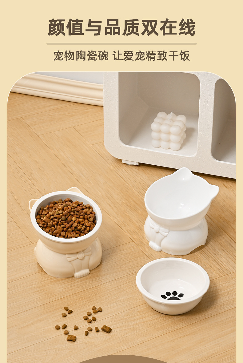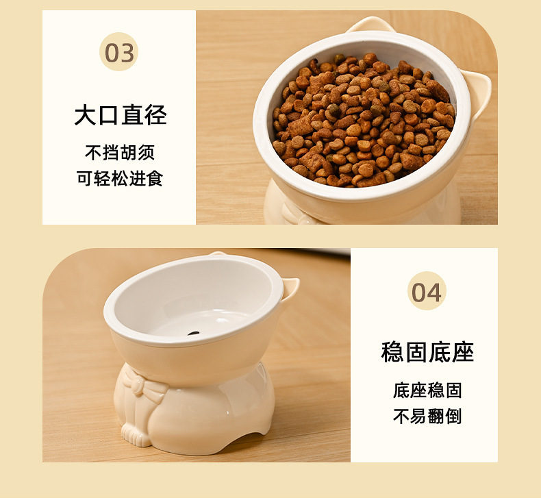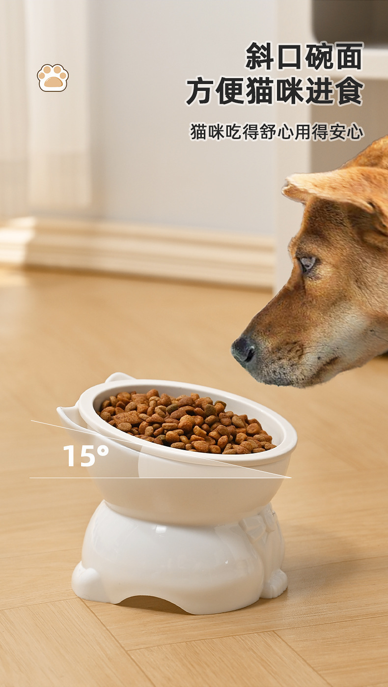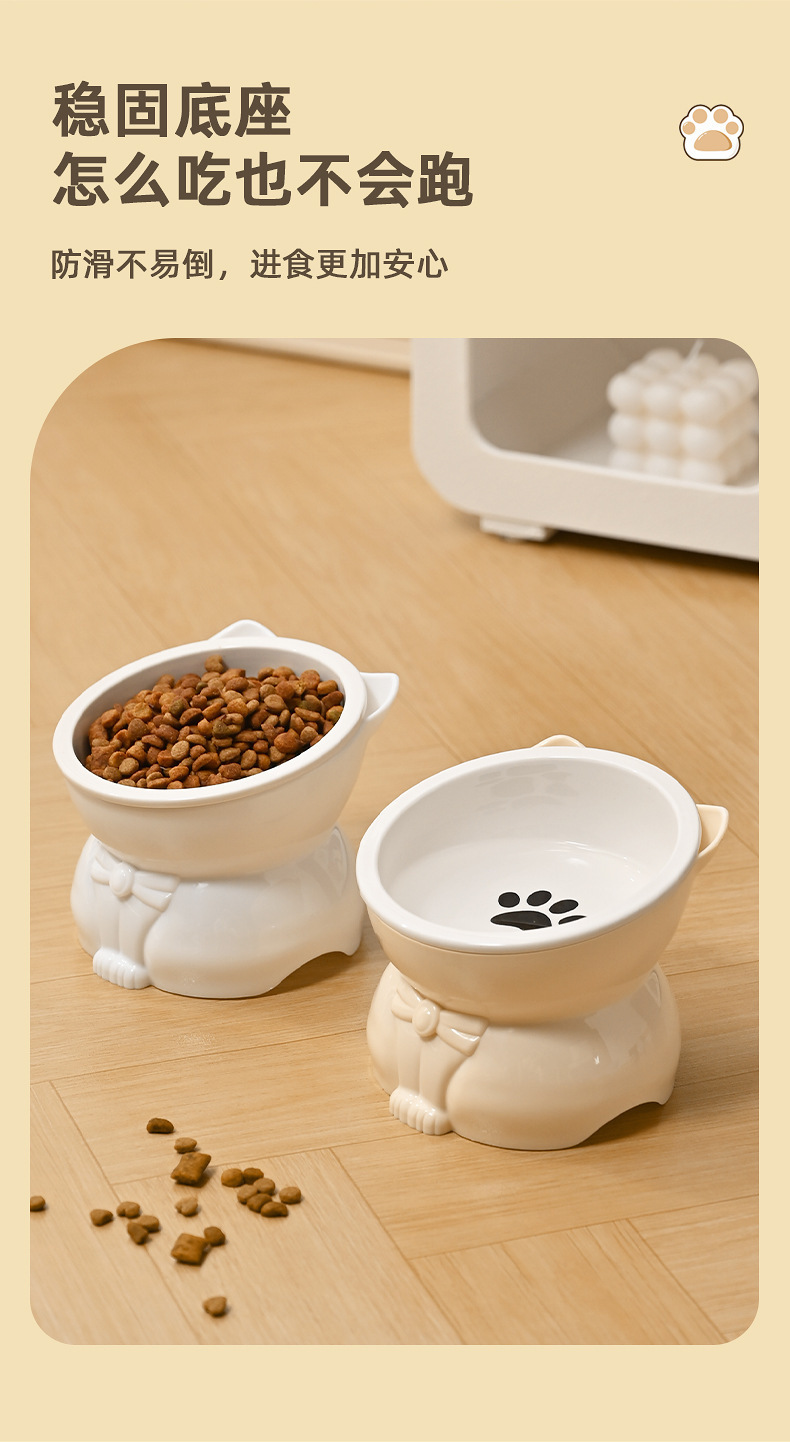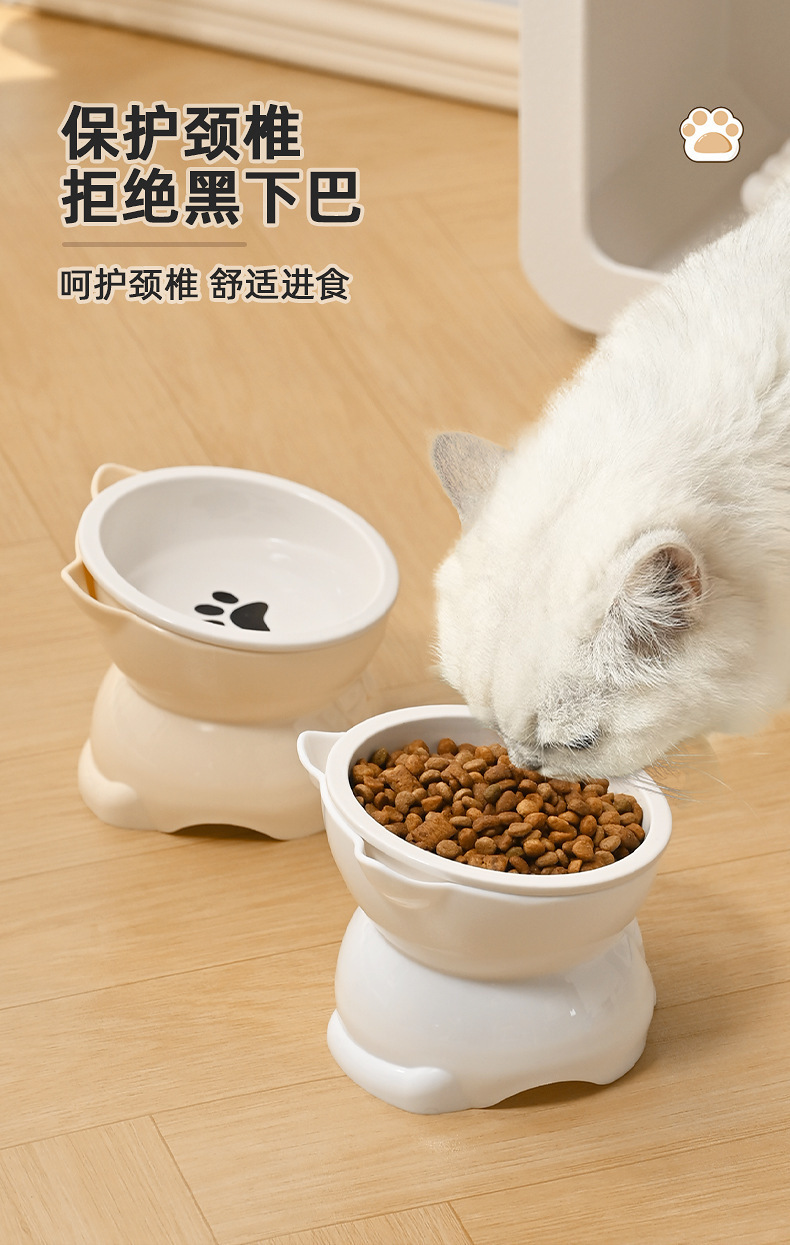 고양이 그릇 귀여운 세라믹 고양이 마시는 물 그릇 고양이 음식 분지 보호 자궁 경부 척추 고양이 음식 그릇 비스듬한 입 높은 발 애완 동물 그릇