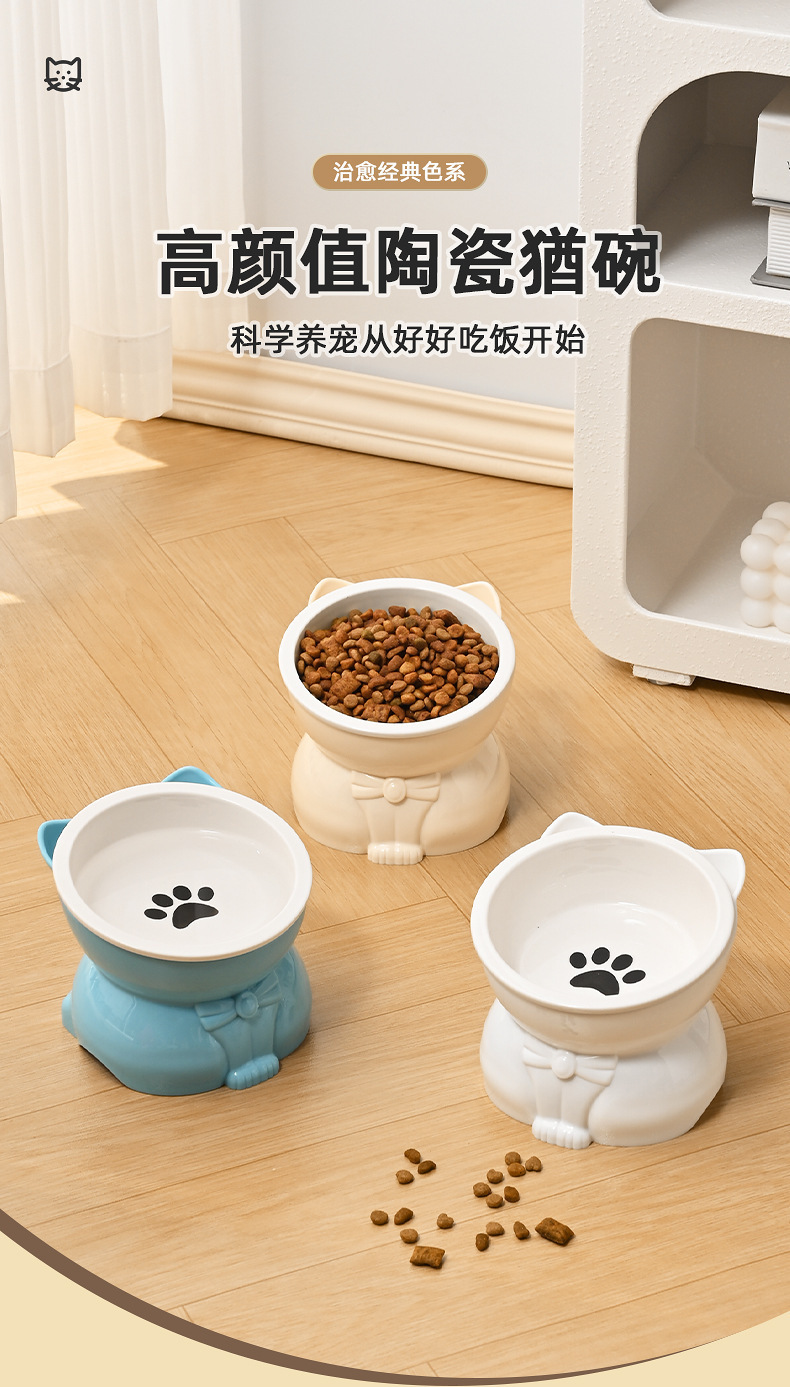 고양이 그릇 귀여운 세라믹 고양이 마시는 물 그릇 고양이 음식 분지 보호 자궁 경부 척추 고양이 음식 그릇 비스듬한 입 높은 발 애완 동물 그릇스토어 가기