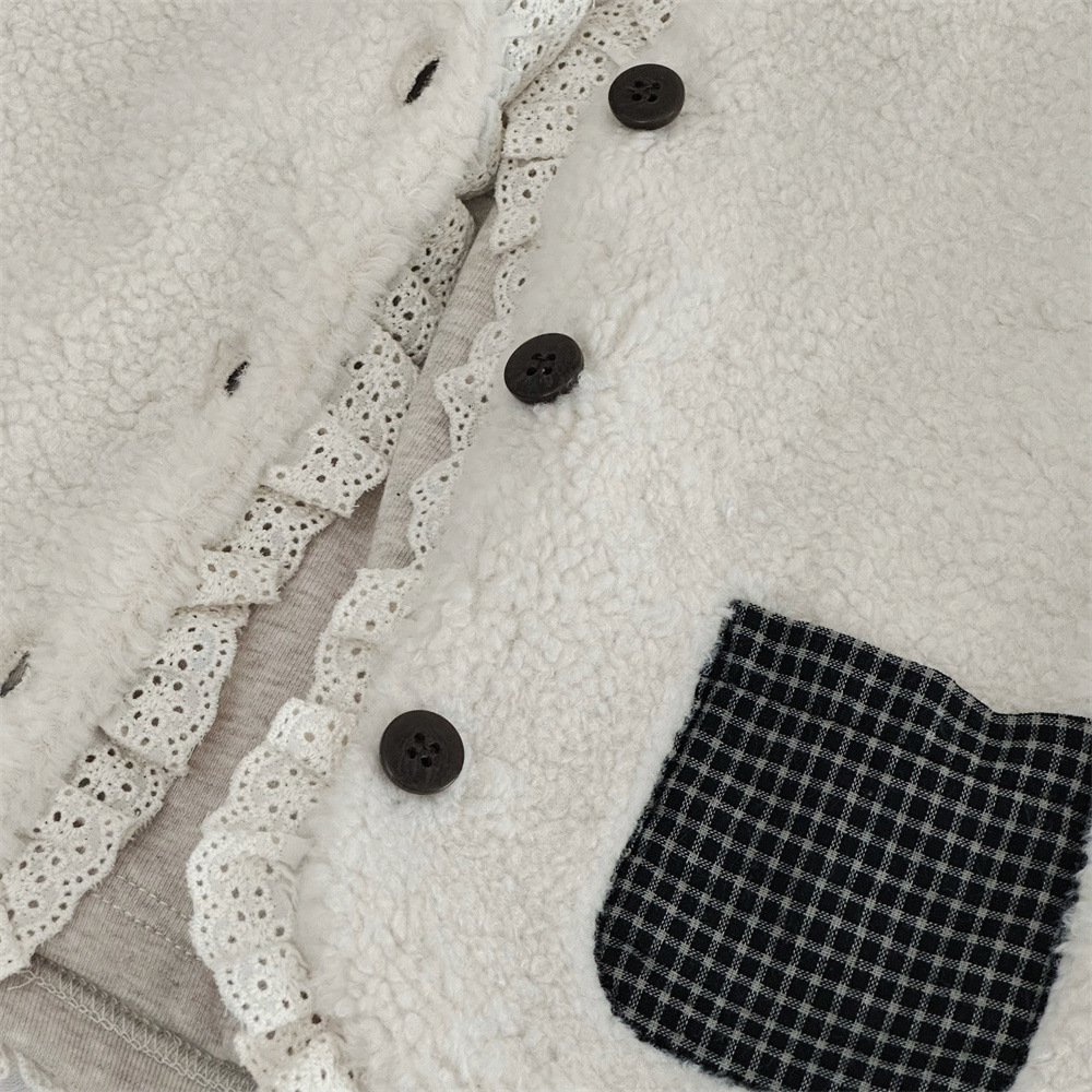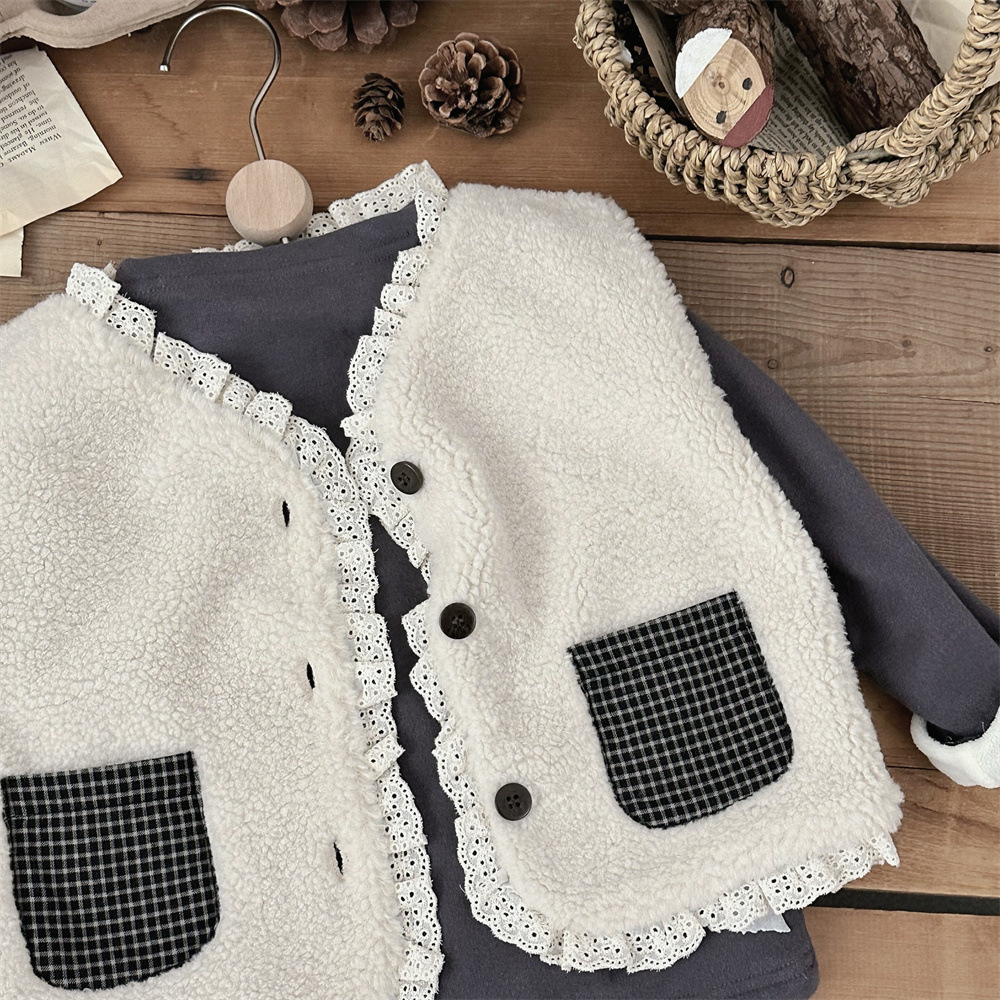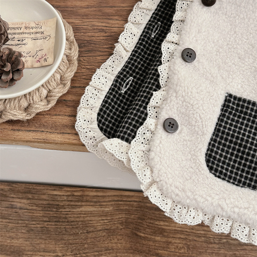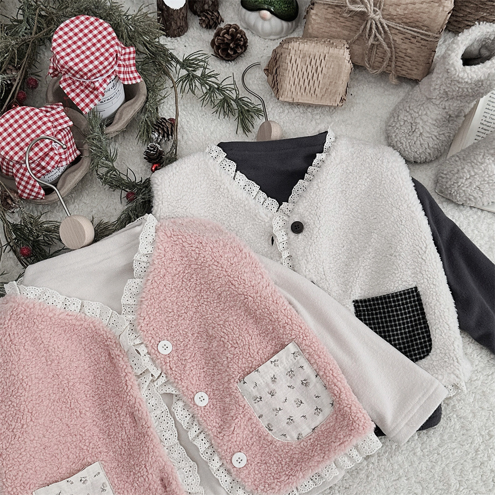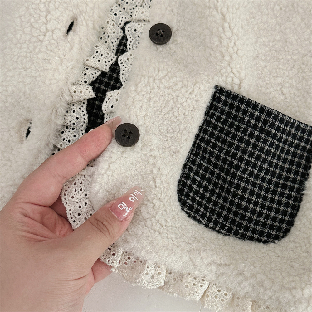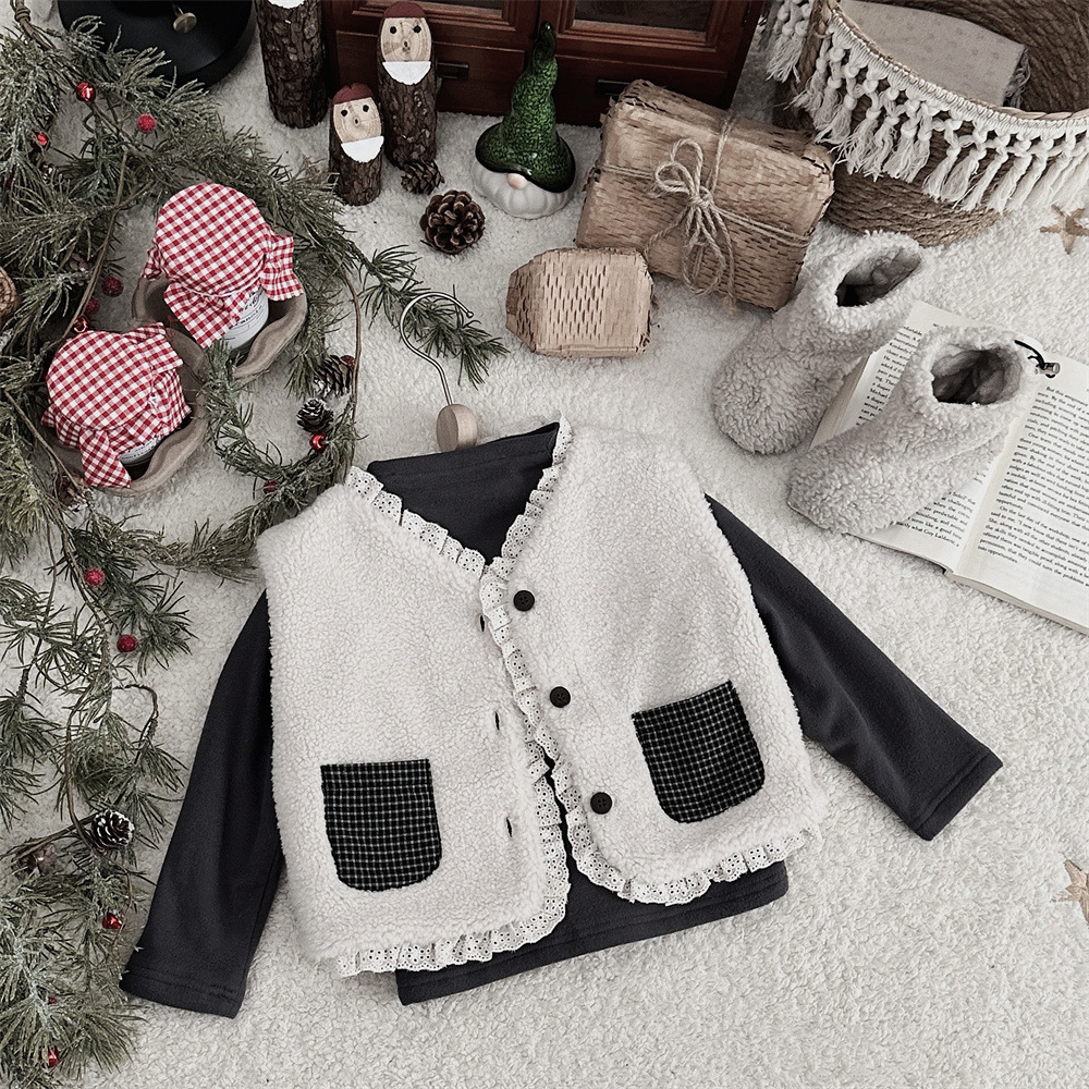 가을과 겨울을위한 INS 아기 기모 조끼 아기 소녀의 레이스 포켓 따뜻한 양모 조끼