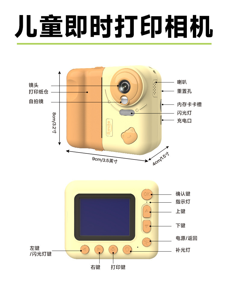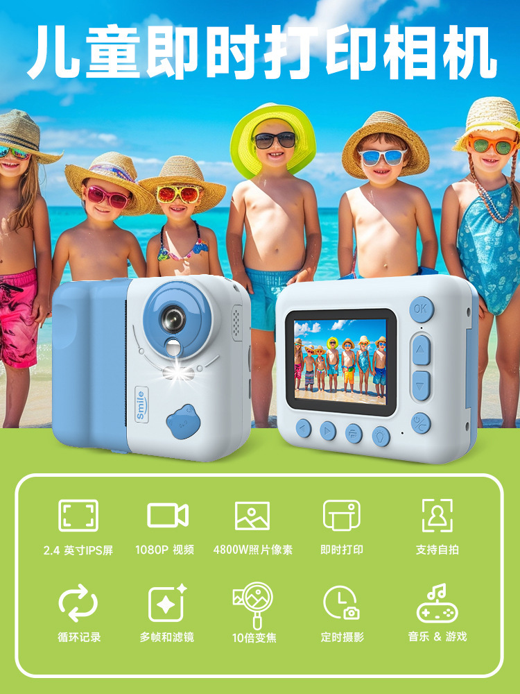 국경 간 신제품 어린이 카메라 4800W HD 사진 비디오 즉석 인쇄 카메라 장난감 선물스토어 가기