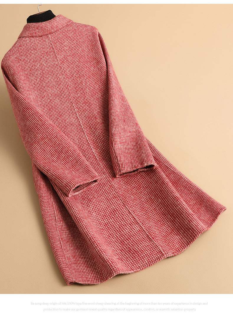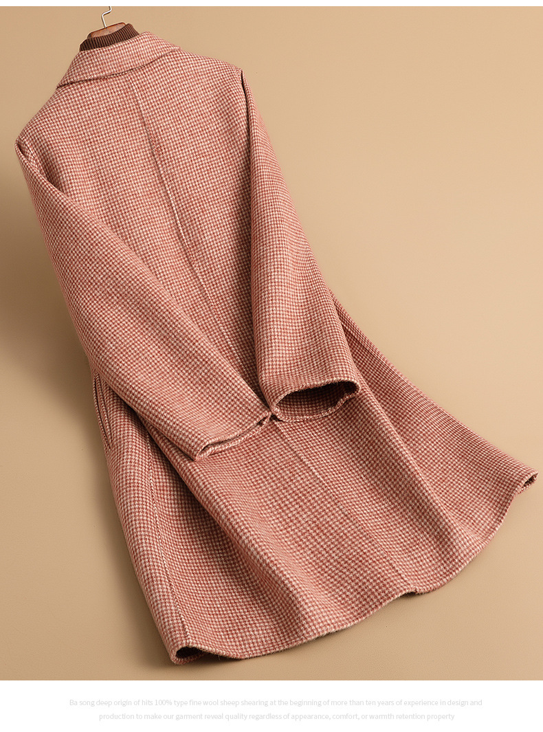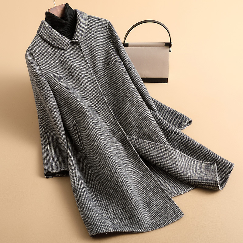 엄마용 겨울 코트, 큰 사이즈 여성복, 양면 울 코트, 모직 코트, 흑백 곰 무늬 작은 격자무늬 코트 여성용스토어 가기