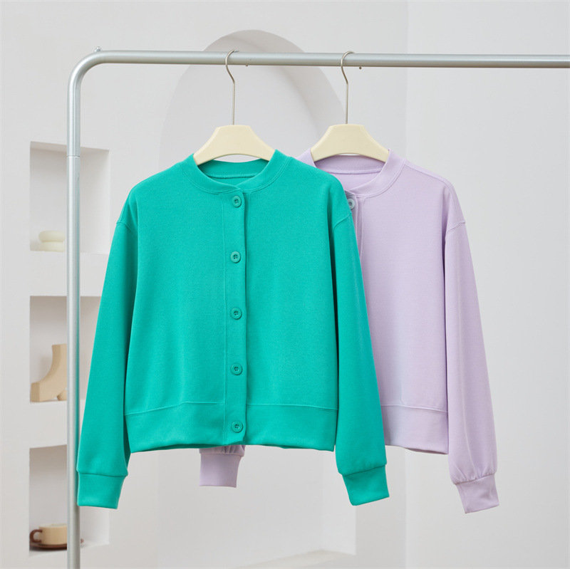 단색 다용도 야구복 스웨트셔츠 여성용 25 봄 가을 신상 루즈핏 캐주얼 라운드넥 재킷 상의 카디건스토어 가기