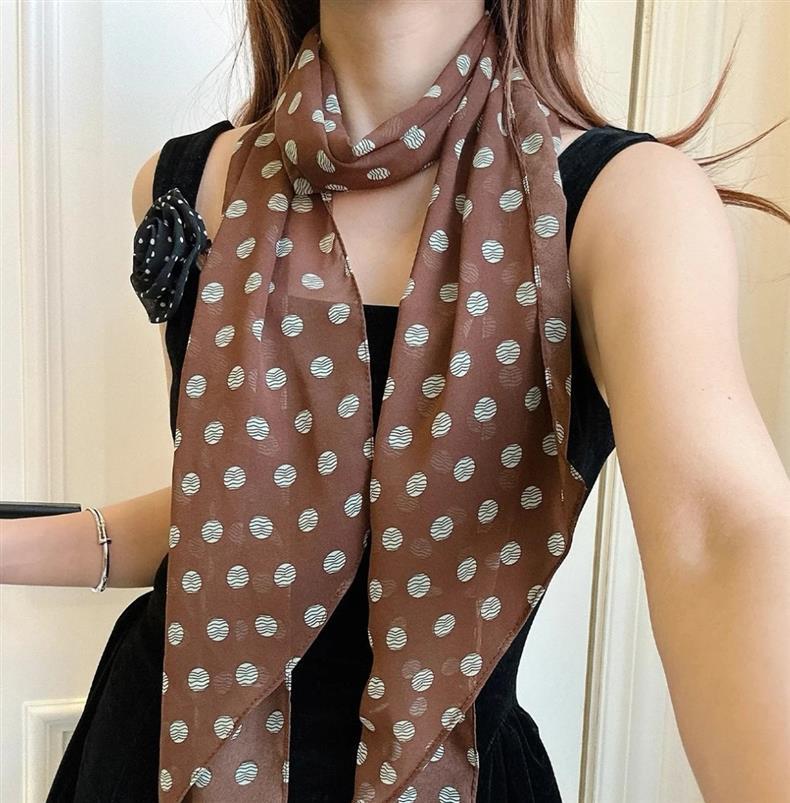 다크 브라운 도트 실크 스카프 인쇄 고급 올 매치 액세서리 목 여자 2025 새로운 머리띠 긴 리본스토어 가기