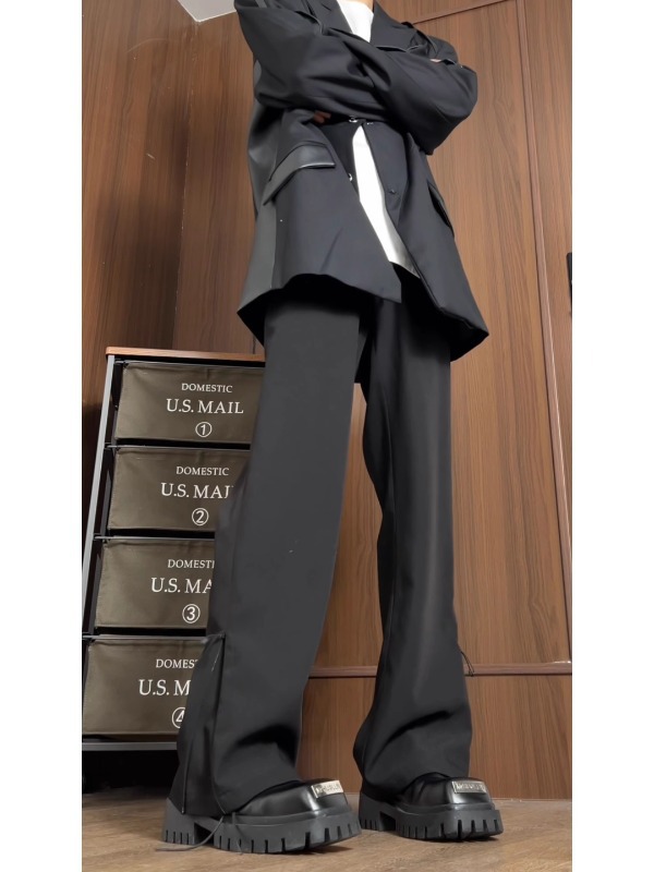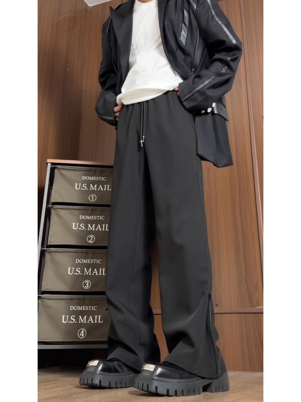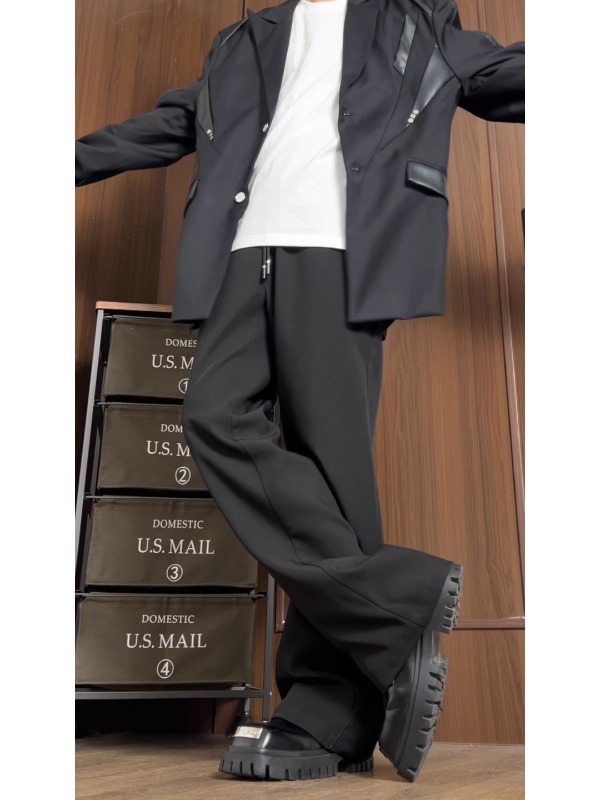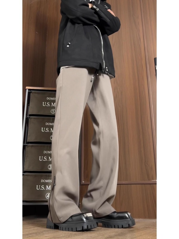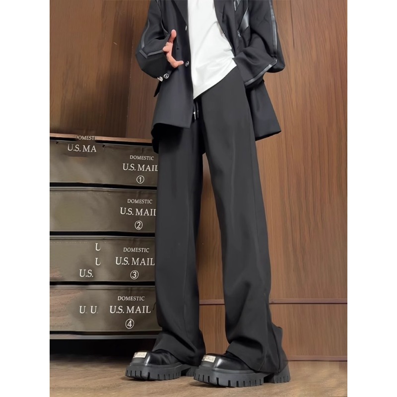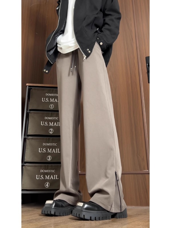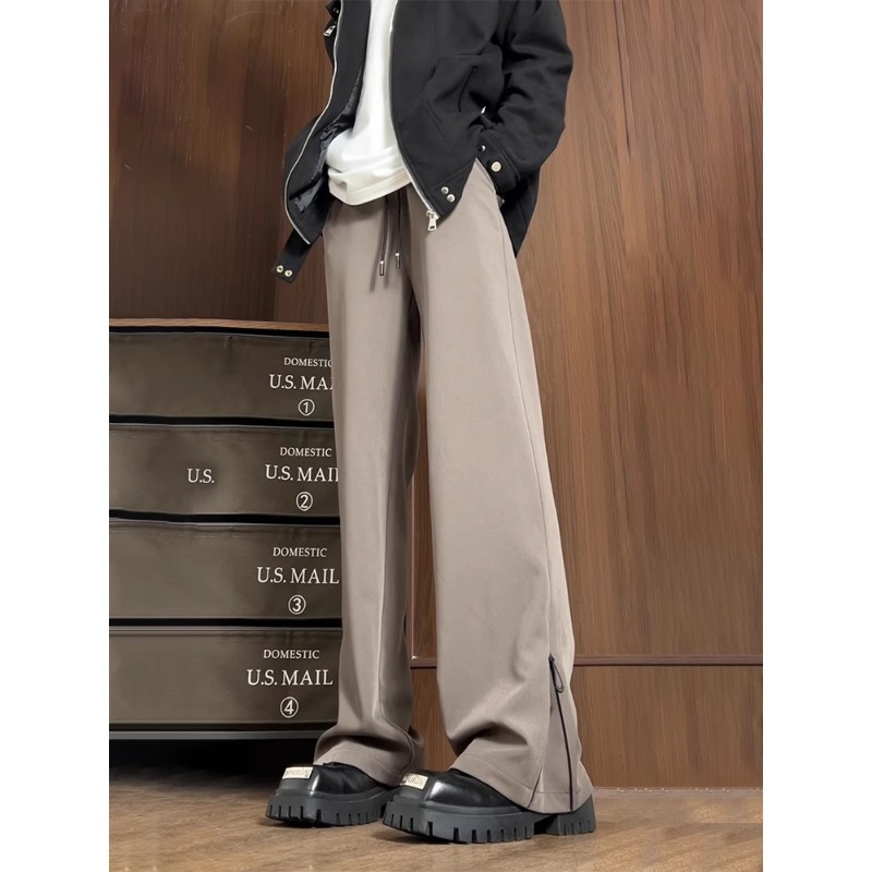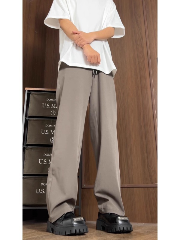남성과 여성을위한 미국식 하이 스트리트 다크 브라운 바지 봄과 가을 키 큰 슬림 스트레이트 튜브 드레이퍼 캐주얼 바지 아이스 실크 빠른 건조 바지