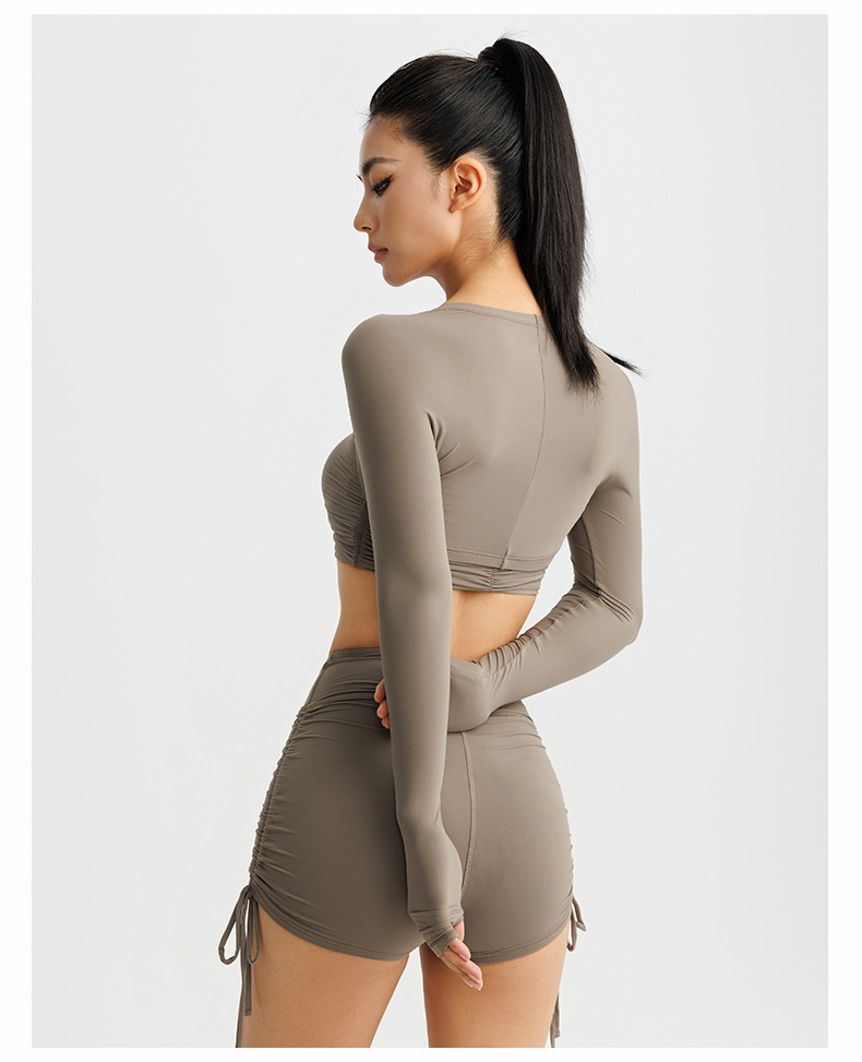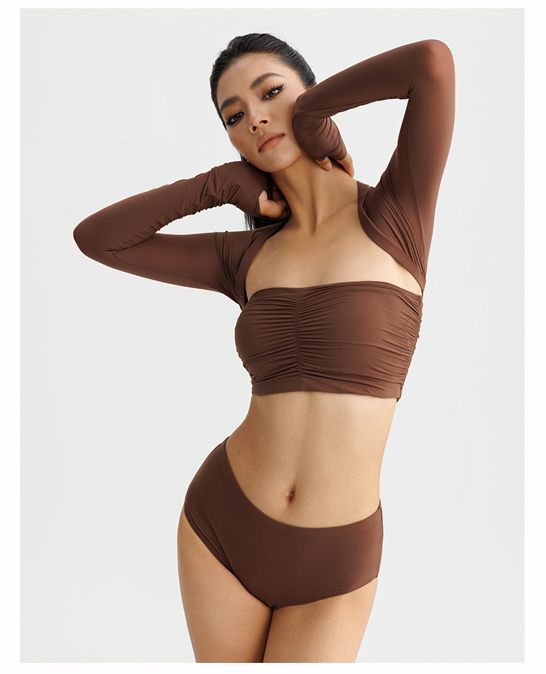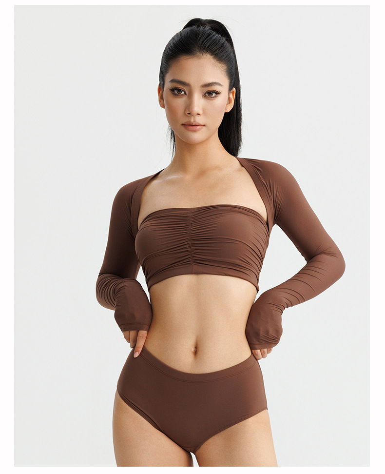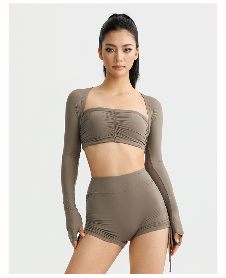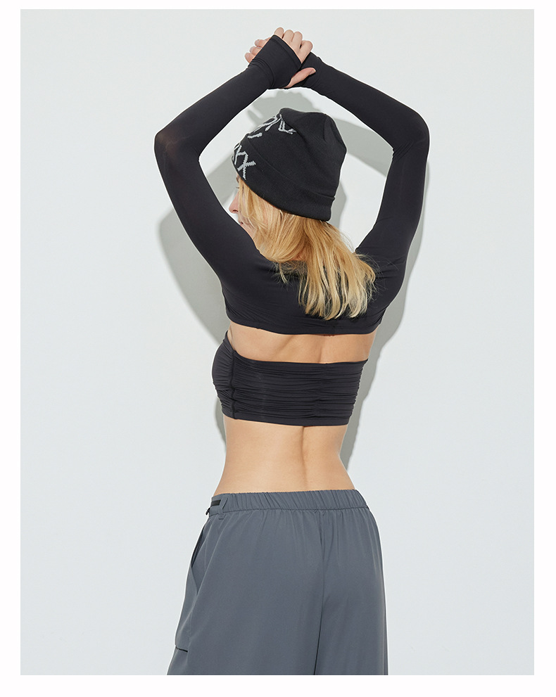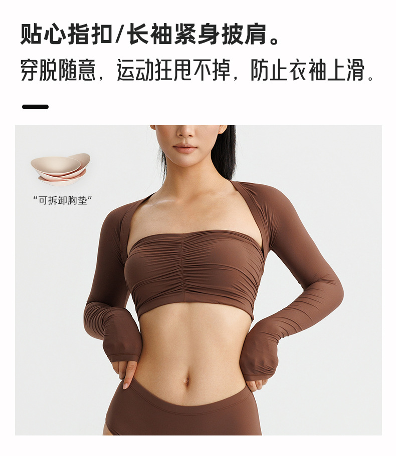 봄 여름 신상 여성용 요가복, 탈부착 가능한 타이트핏 고탄력 튜브탑, 필라테스 속옷, 긴팔 스포츠 커버업