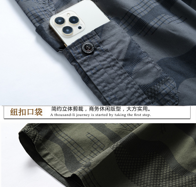 여름 위장 자른 바지 남성용 느슨한 플러스 사이즈 바지 얇은 캐주얼 반바지 멀티 포켓 스트레이트 바지스토어 가기