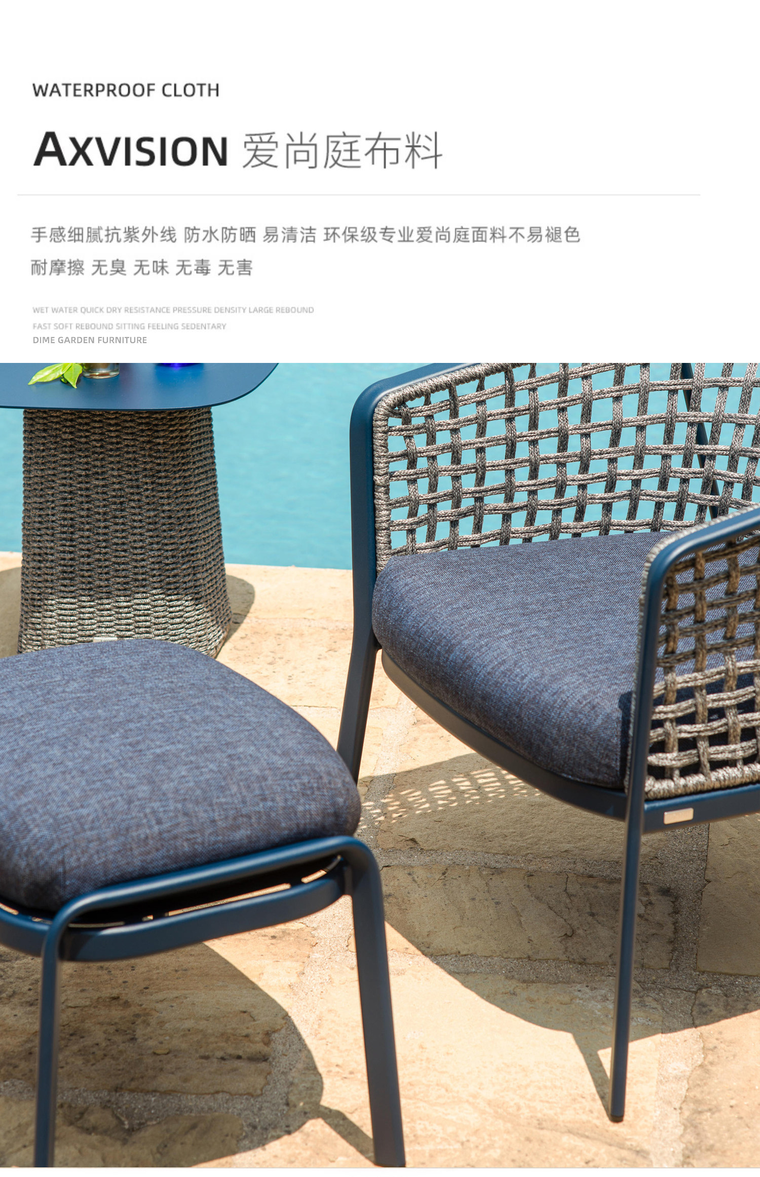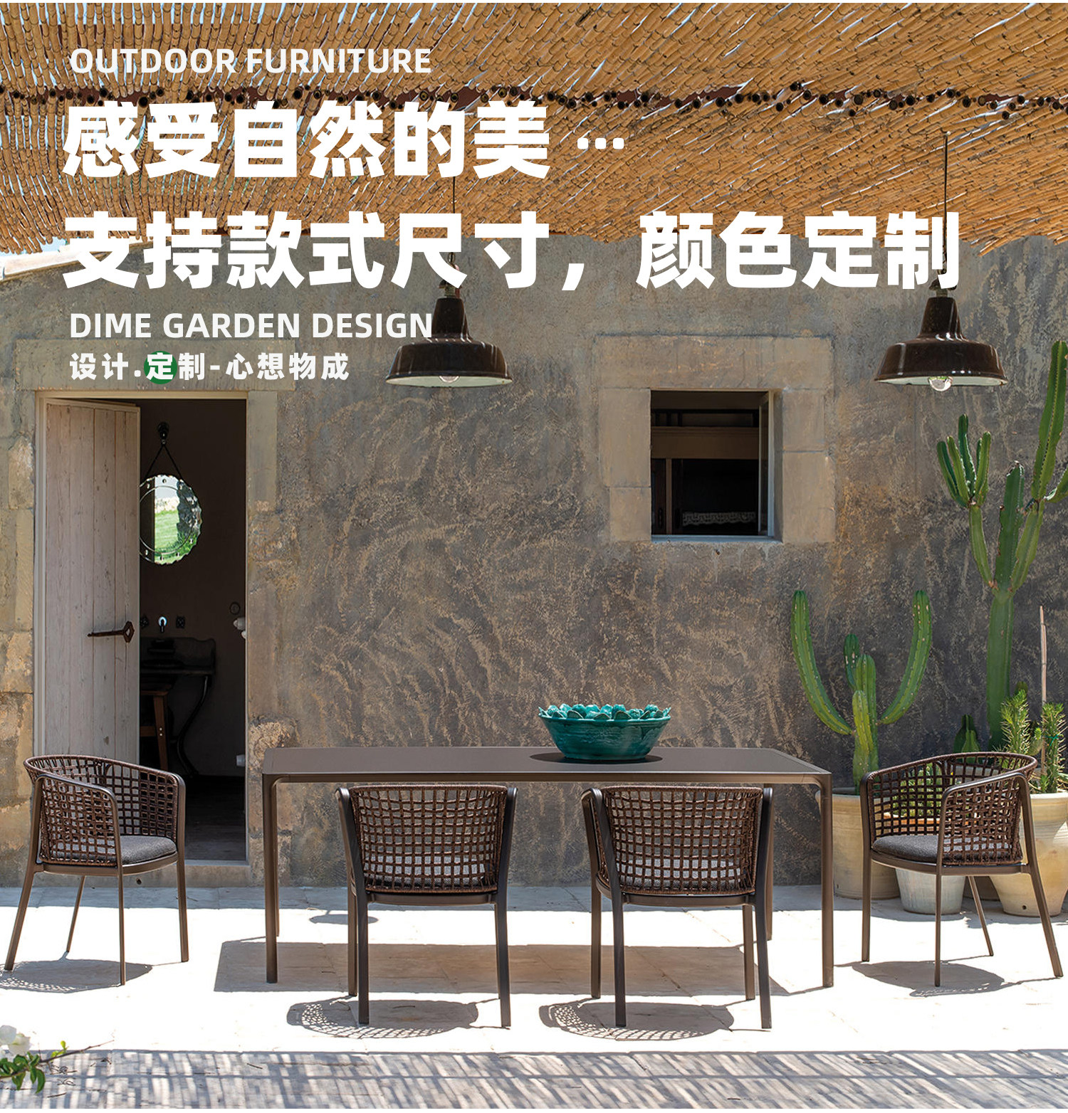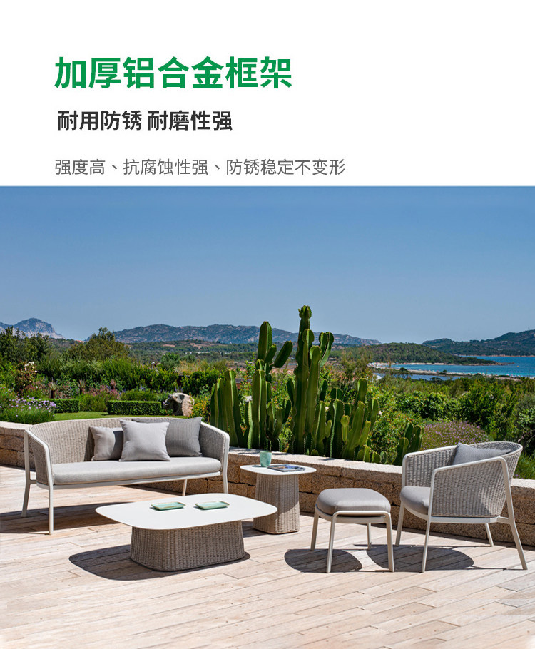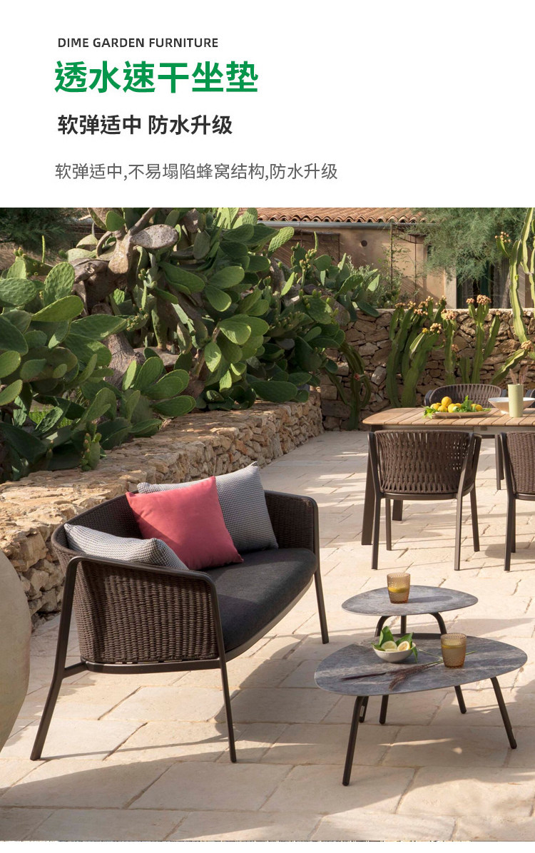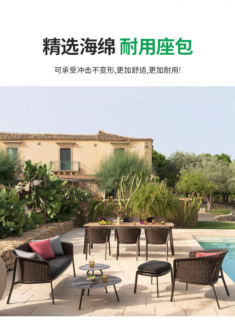 야외 로프 소파 조합 캐주얼 테이블과 의자 등나무 커피 테이블 북유럽 방수 선 스크린 정원 코트야드 빌라 레스토랑