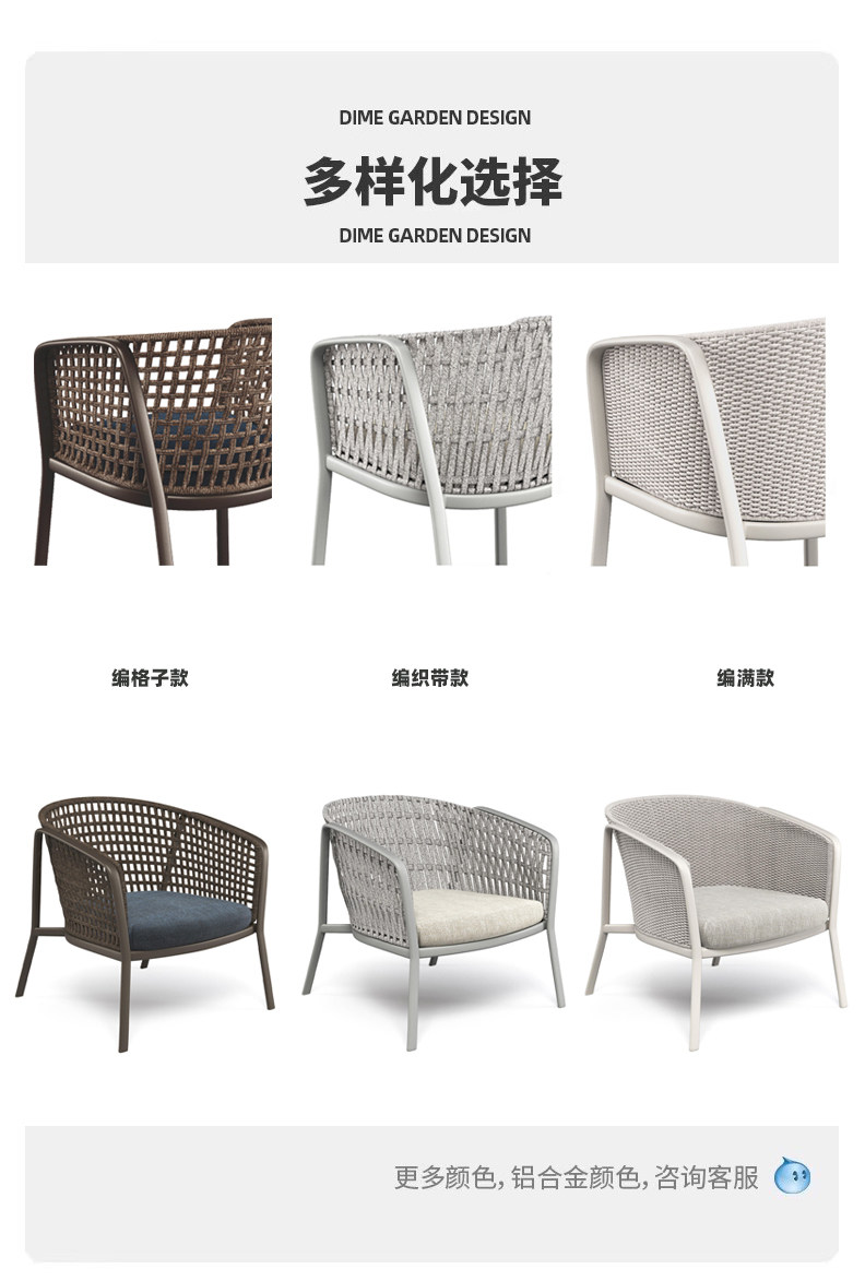 야외 로프 소파 조합 캐주얼 테이블과 의자 등나무 커피 테이블 북유럽 방수 선 스크린 정원 코트야드 빌라 레스토랑스토어 가기