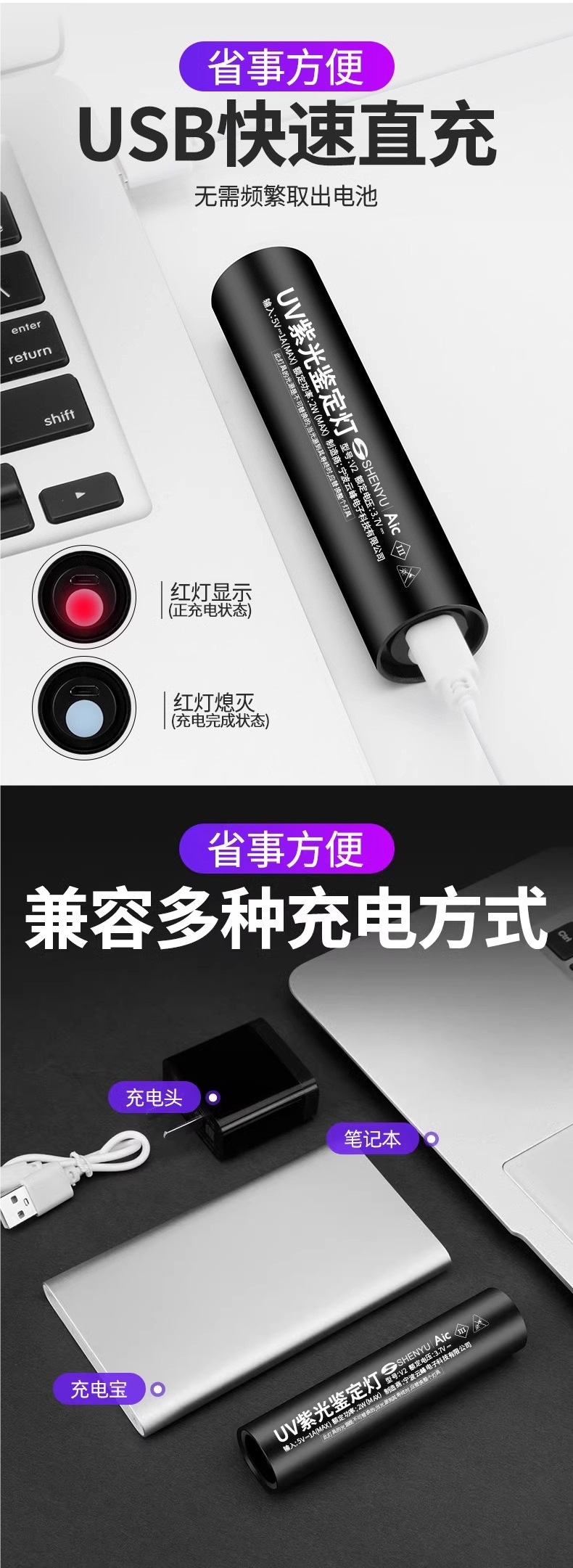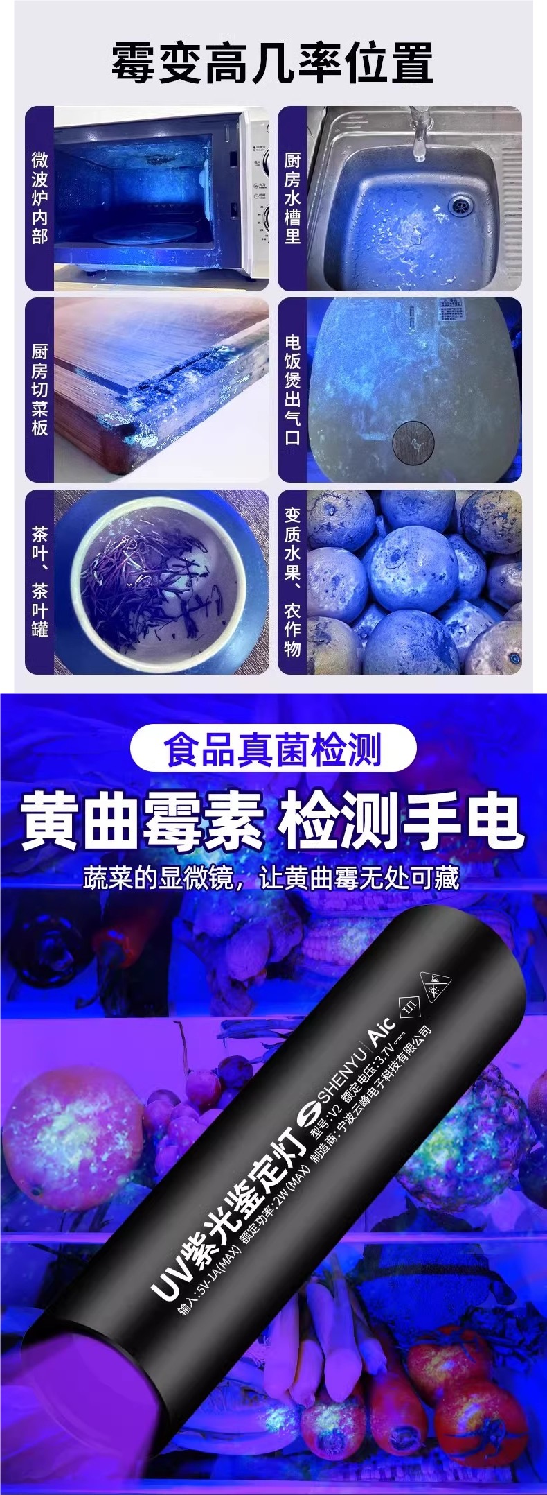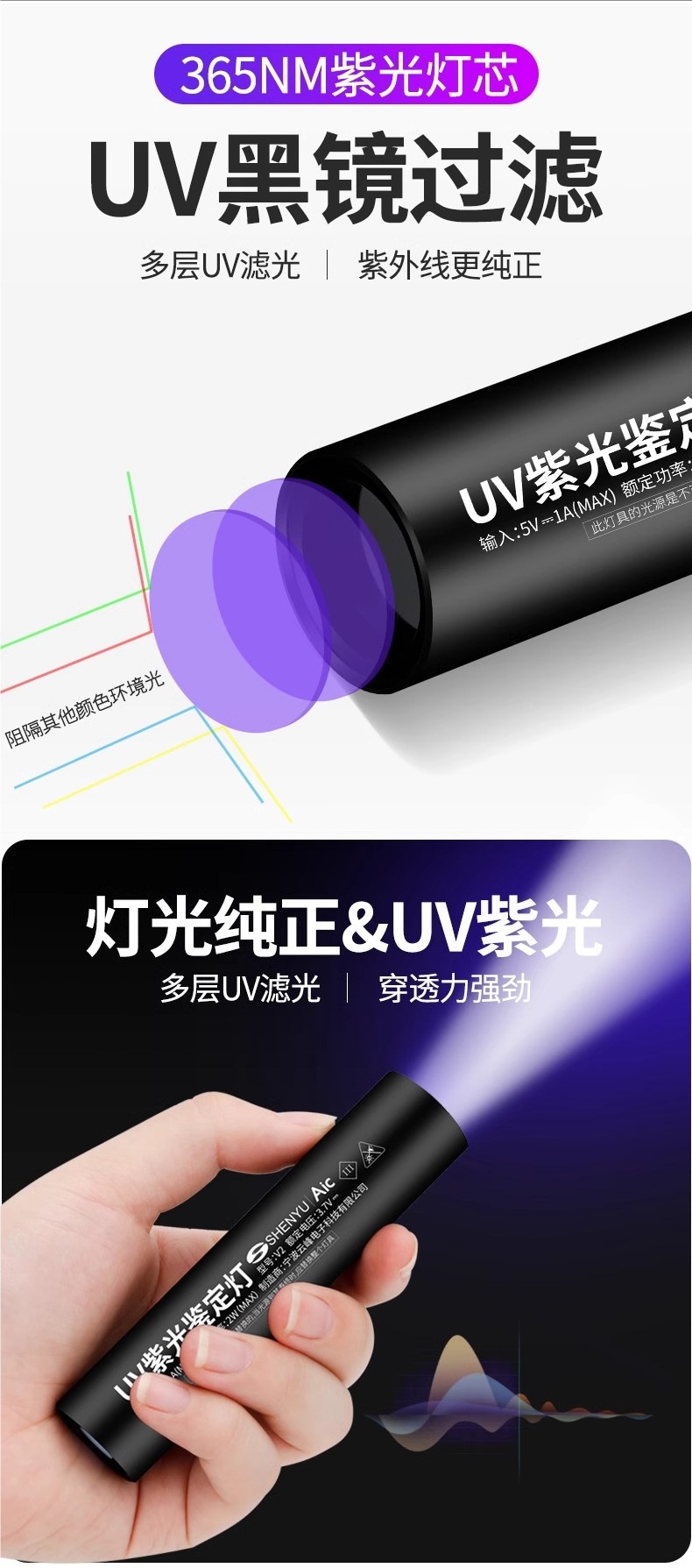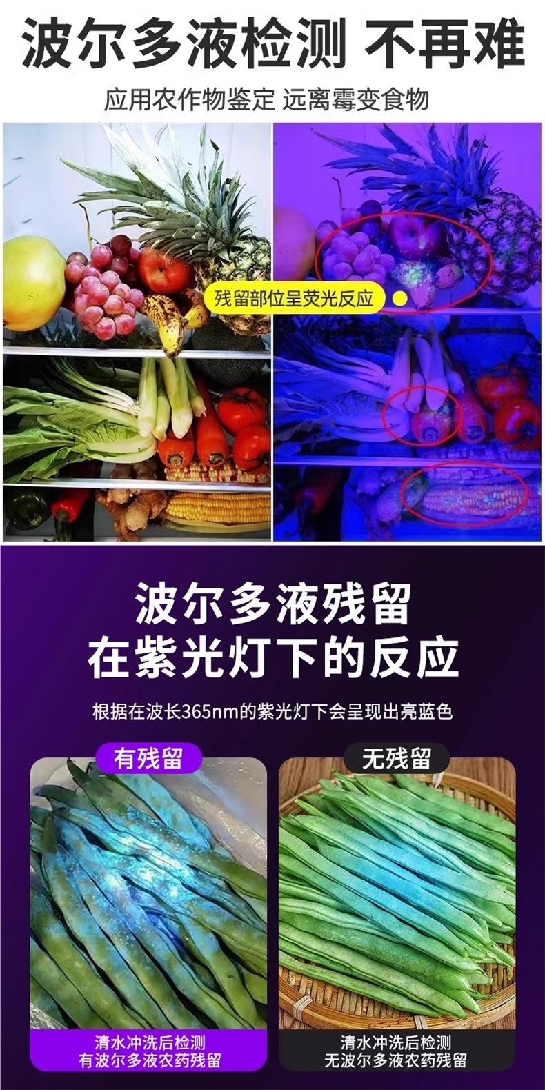보라색 빛 램프 식별 야채 검사 블루 돛 블루 라이트 보르도 액체 형광 365nm 자외선 살충제 검출 램프스토어 가기