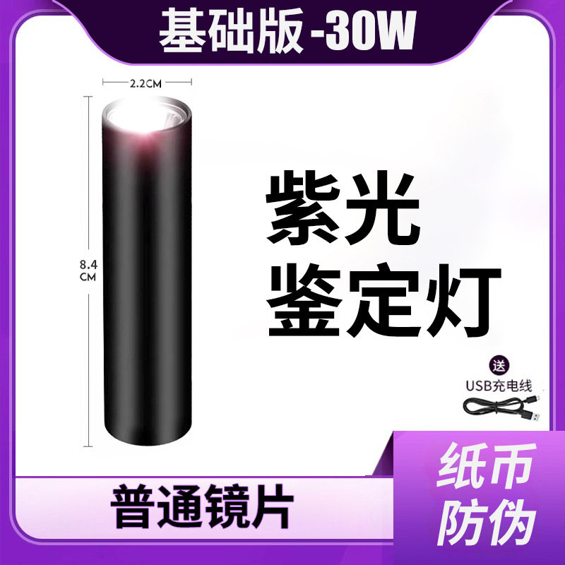 • 30W 기본 모델 - 일반 렌즈, 보라색 조명 식별 램프, 14500 리튬 배터리