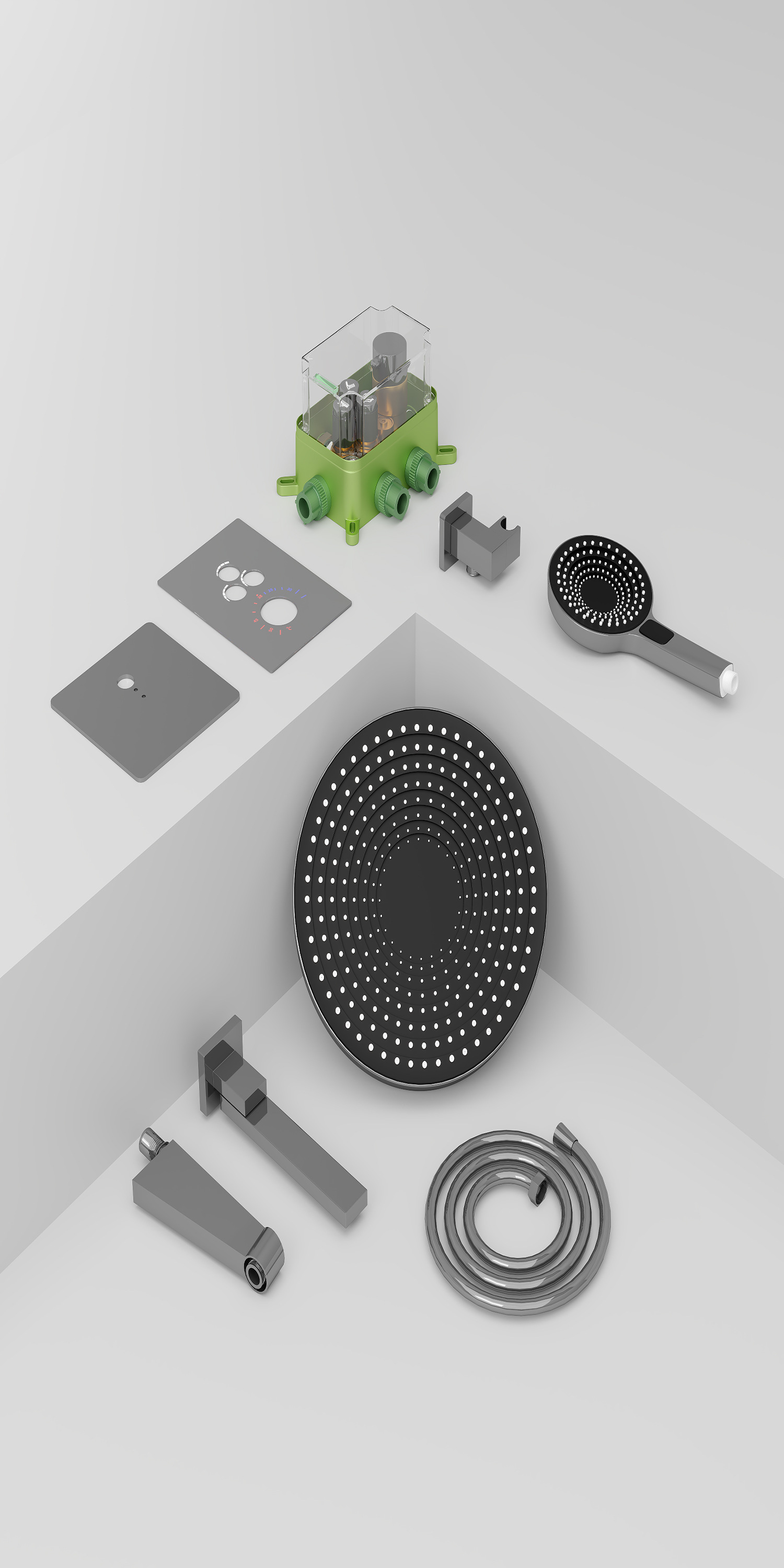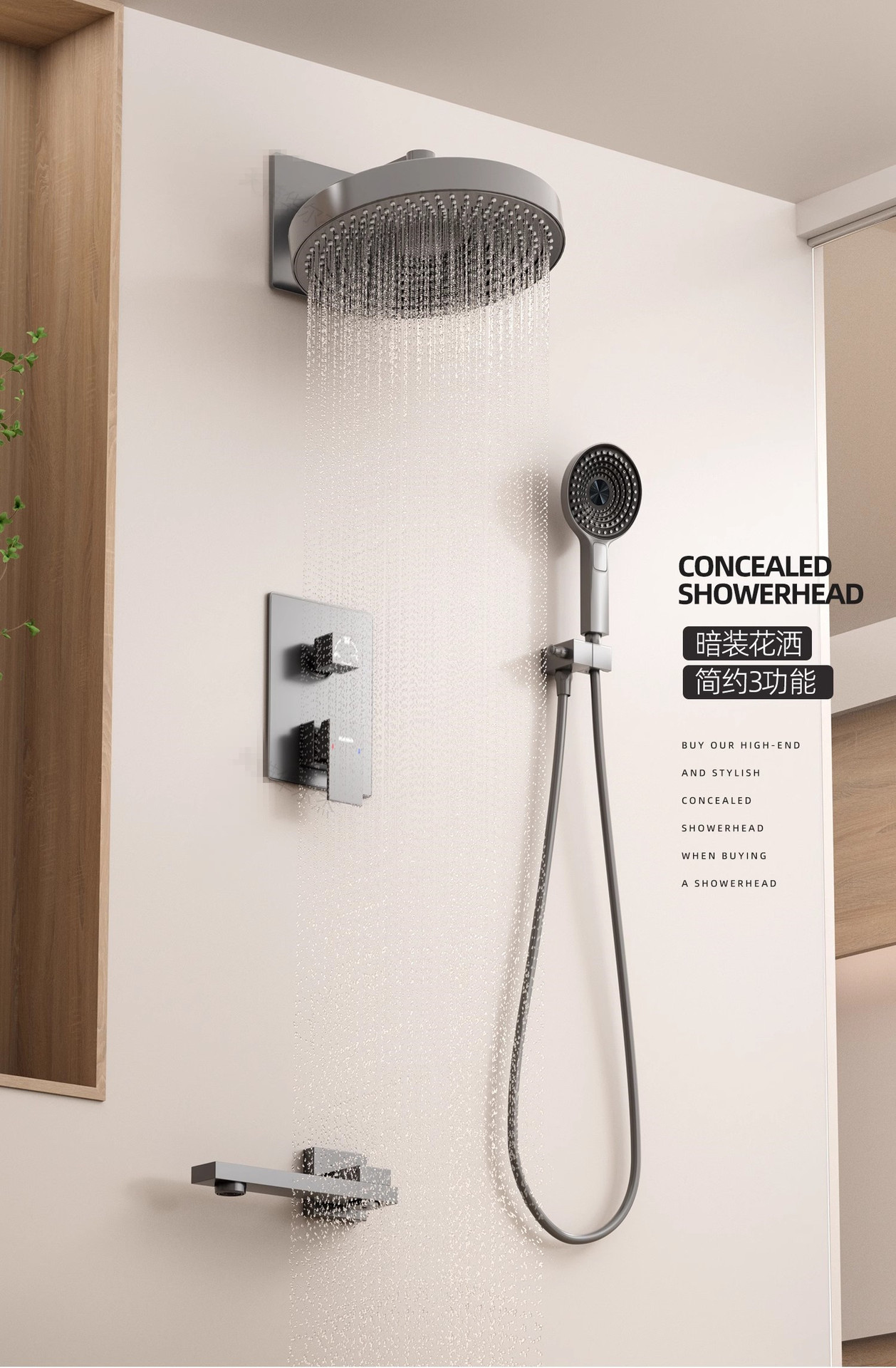 벽 매립형 스탠드샤워 세트, 숨김형 샤워기 세트, 가정용 호텔 엔지니어링용 온도조절 기능 포함
