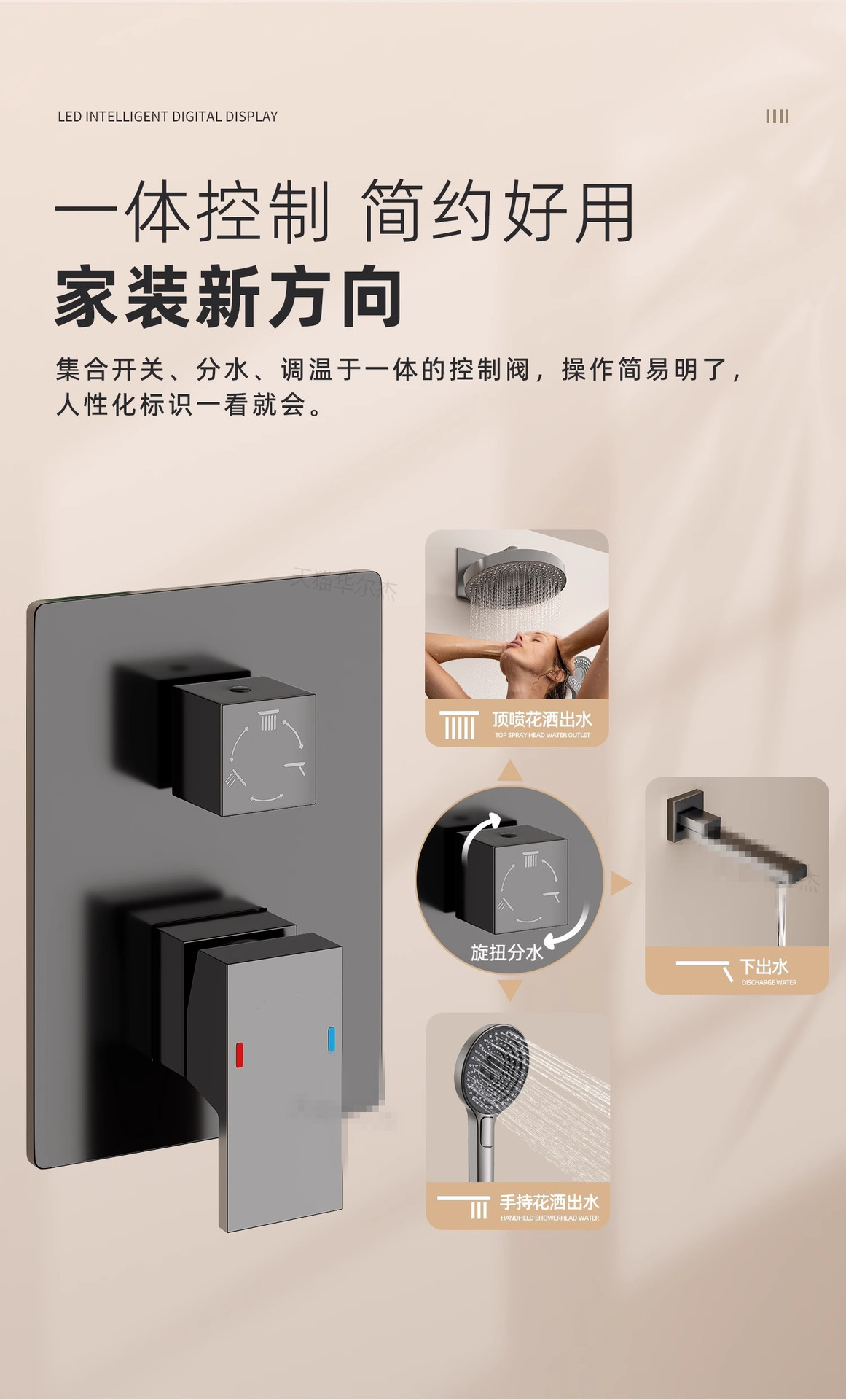벽 매립형 스탠드샤워 세트, 숨김형 샤워기 세트, 가정용 호텔 엔지니어링용 온도조절 기능 포함스토어 가기